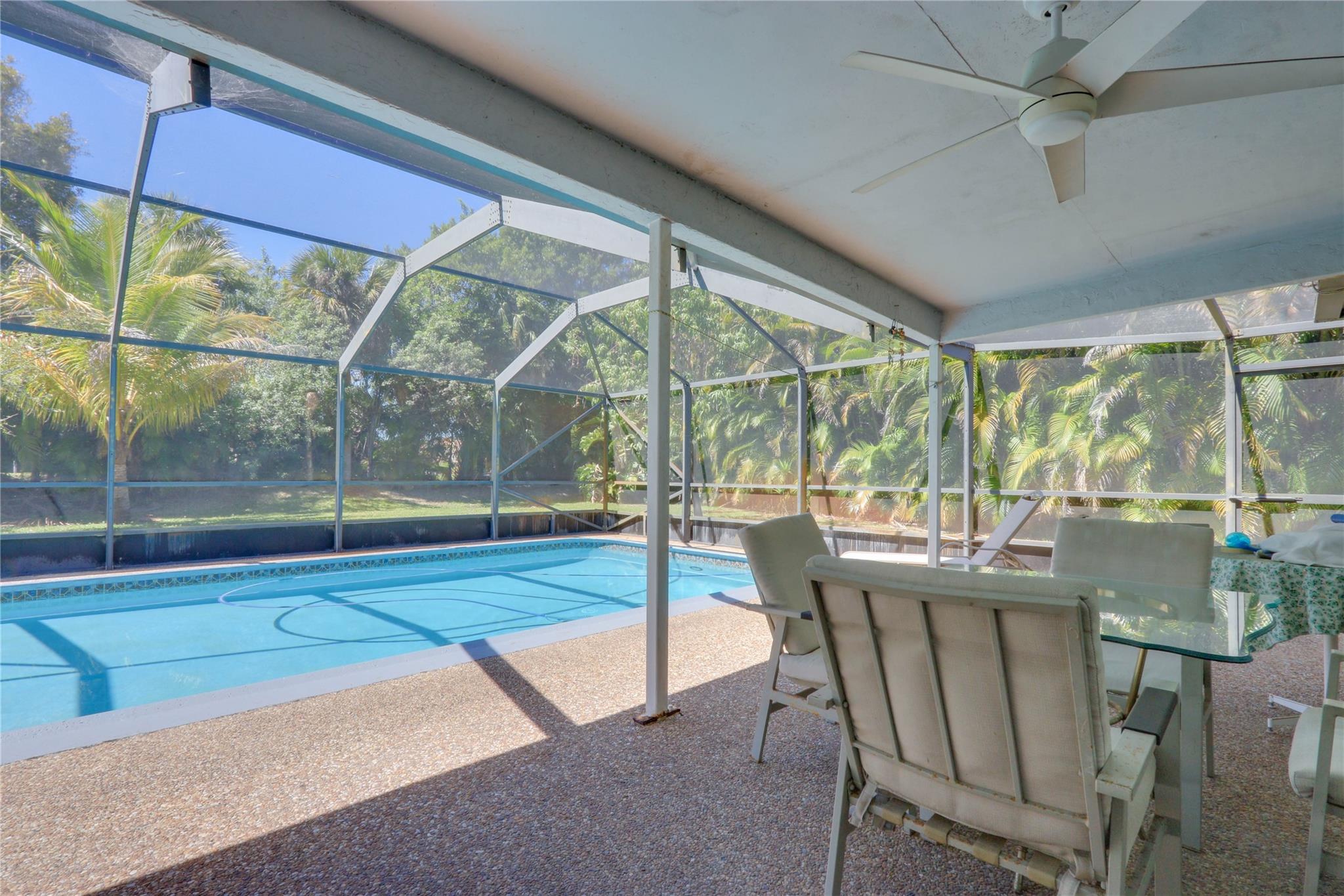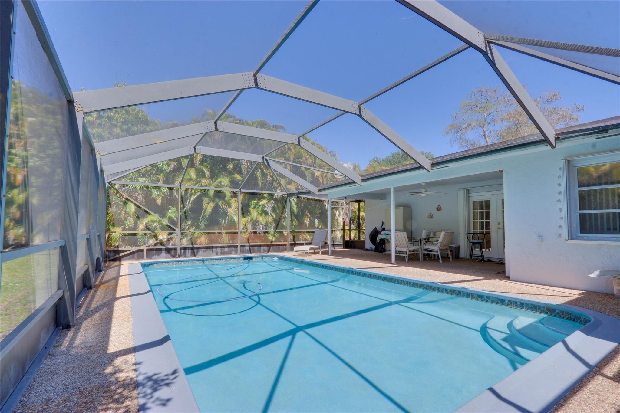 Come check out this spacious 3/2 pool home with attached 2 car garage. No HOA with their crazy fees to deal with. Nice screened in pool deck patio. Great size yard with over a 14,000 square foot lot. Updated kitchen and just under 2000 square feet under air. Schools and plenty of nearby stores and restaurants for you to enjoy. Nearby is the Turnpike and 95 for easy travel. Tile floors throughout. All on one level for easy living. Accordion Hurricane Shutters for added storm protection. Some updating needed. Call today to tour this home before it is gone!