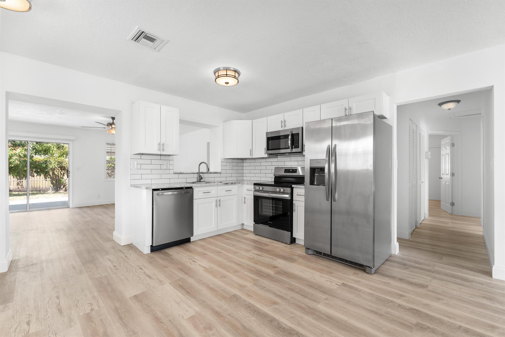 Prime location! Just minutes from downtown Fort Lauderdale and FLL Airport, this charming 3-bedroom, 2-bathroom home offers comfort and convenience. Featuring wood laminate flooring throughout, a roof replaced in 2014, and an AC from 2017, this home is move-in ready. The spacious, fully fenced backyard is a private oasis with fruit trees and a large storage room--perfect for extra storage or potential conversion into an efficiency. Don't miss this opportunity to own a well-maintained home in a highly desirable area!