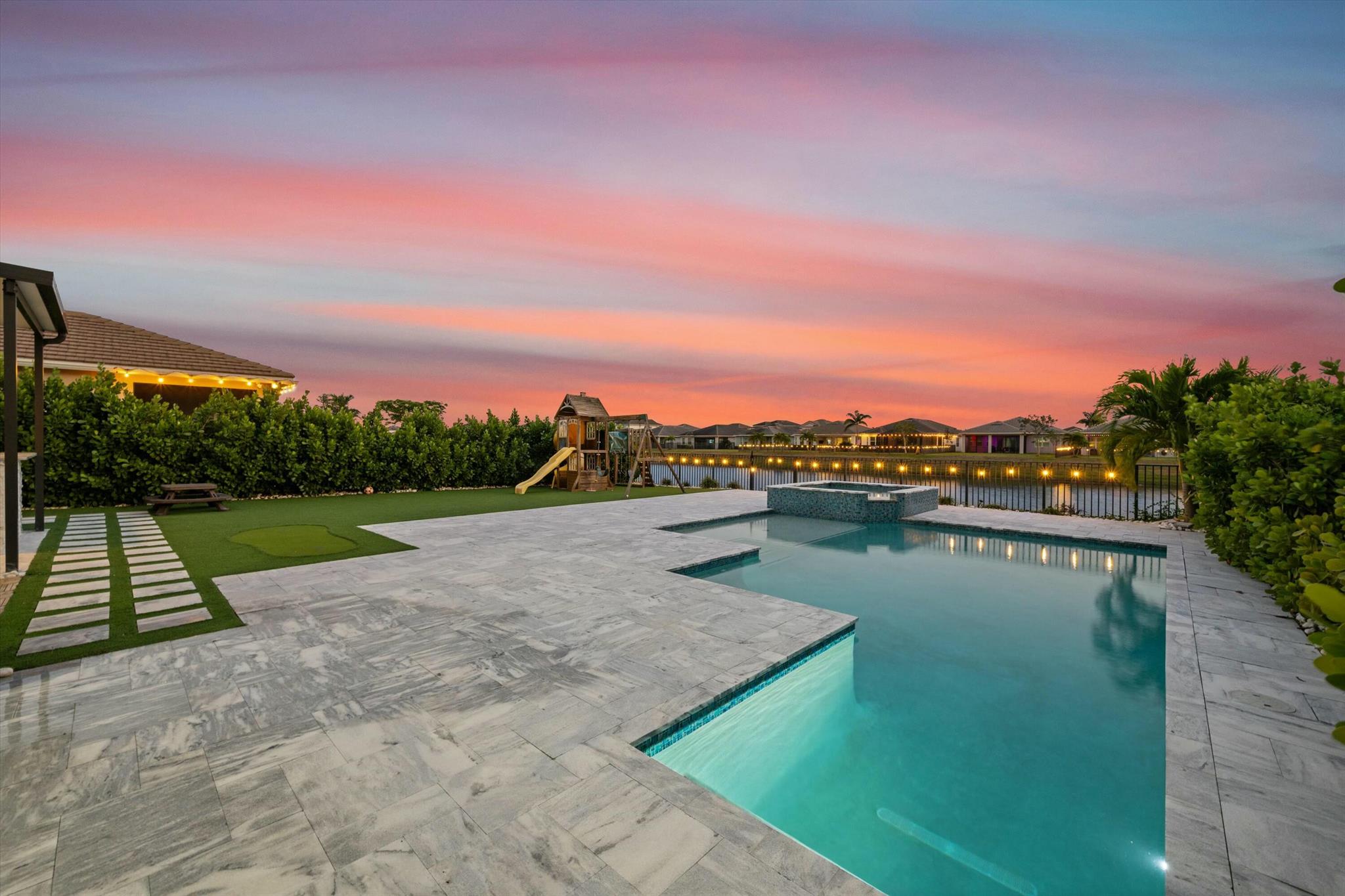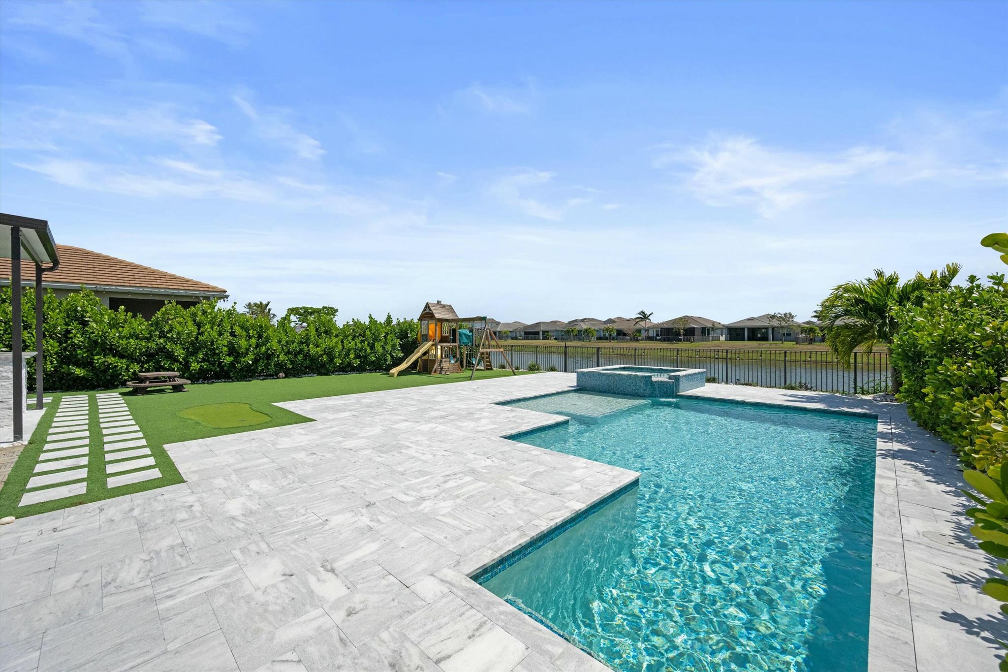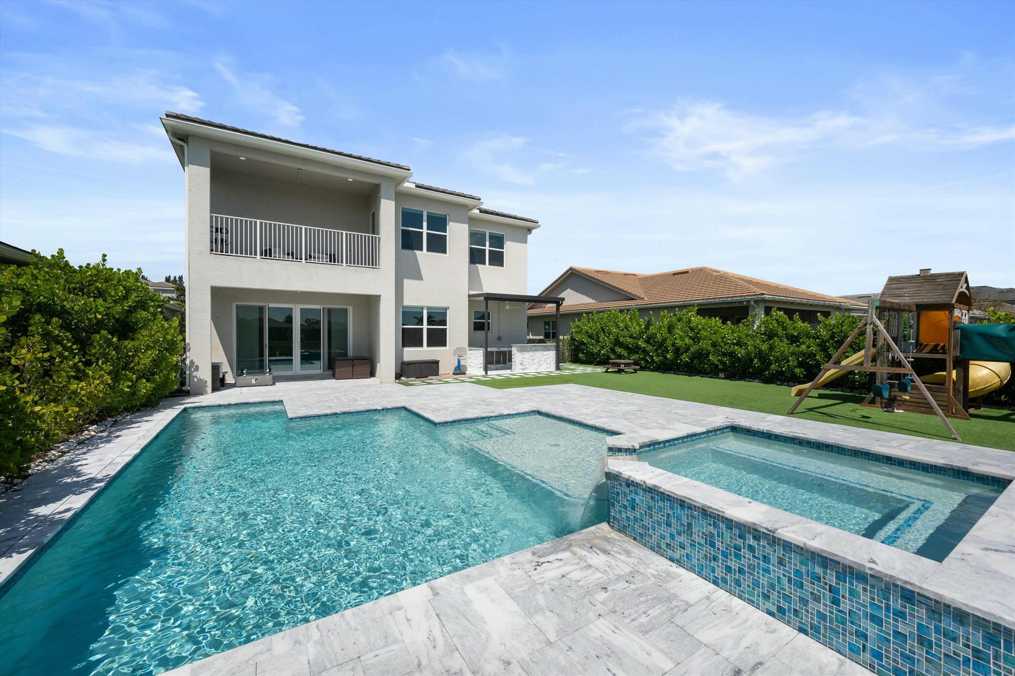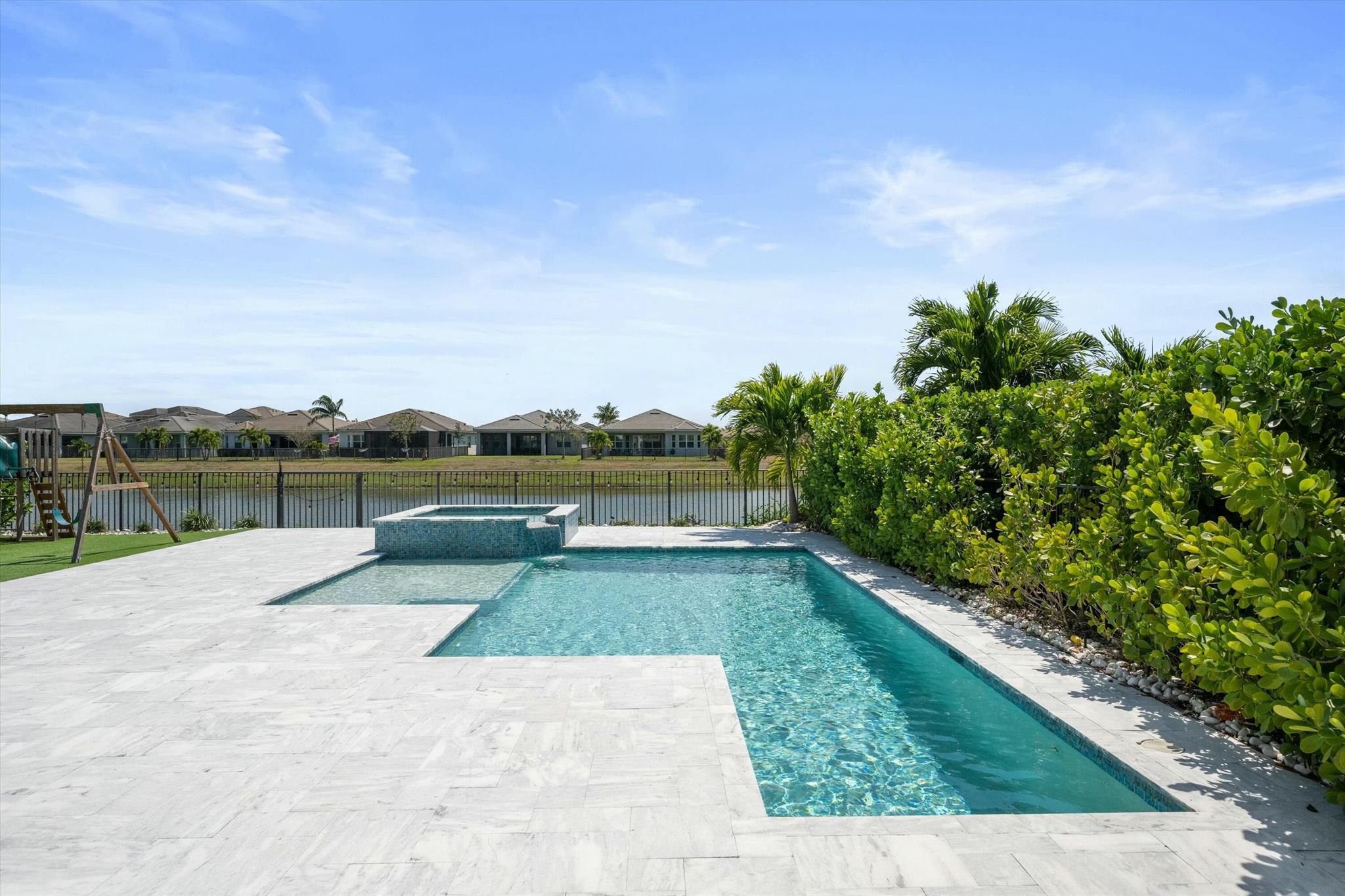 Experience luxury living in this stunning Laurel Model home, located in the prestigious Meadows community of Westlake, FL. This 5-bedroom, 3-bathroom, 2-story residence boasts impact windows throughout, ensuring safety and energy efficiency,complemented by 33 solar panels for exceptional sustainability and reduced energy costs. With 3,071 sq. ft. of living space, a 3-car garage, and a salted and heated pool and spa, this home offers an unparalleled blend of elegance and functionality. The backyard was meticulously designed to ensure maximum yard space, outdoor kitchen and still plenty of yard space for entertaining and playing.