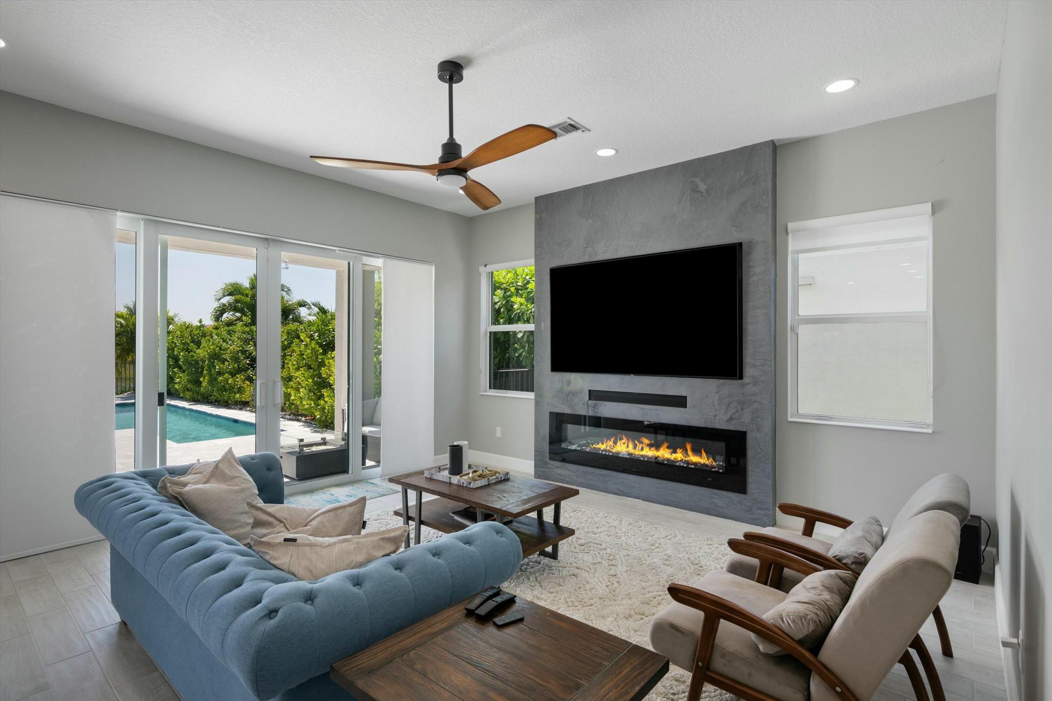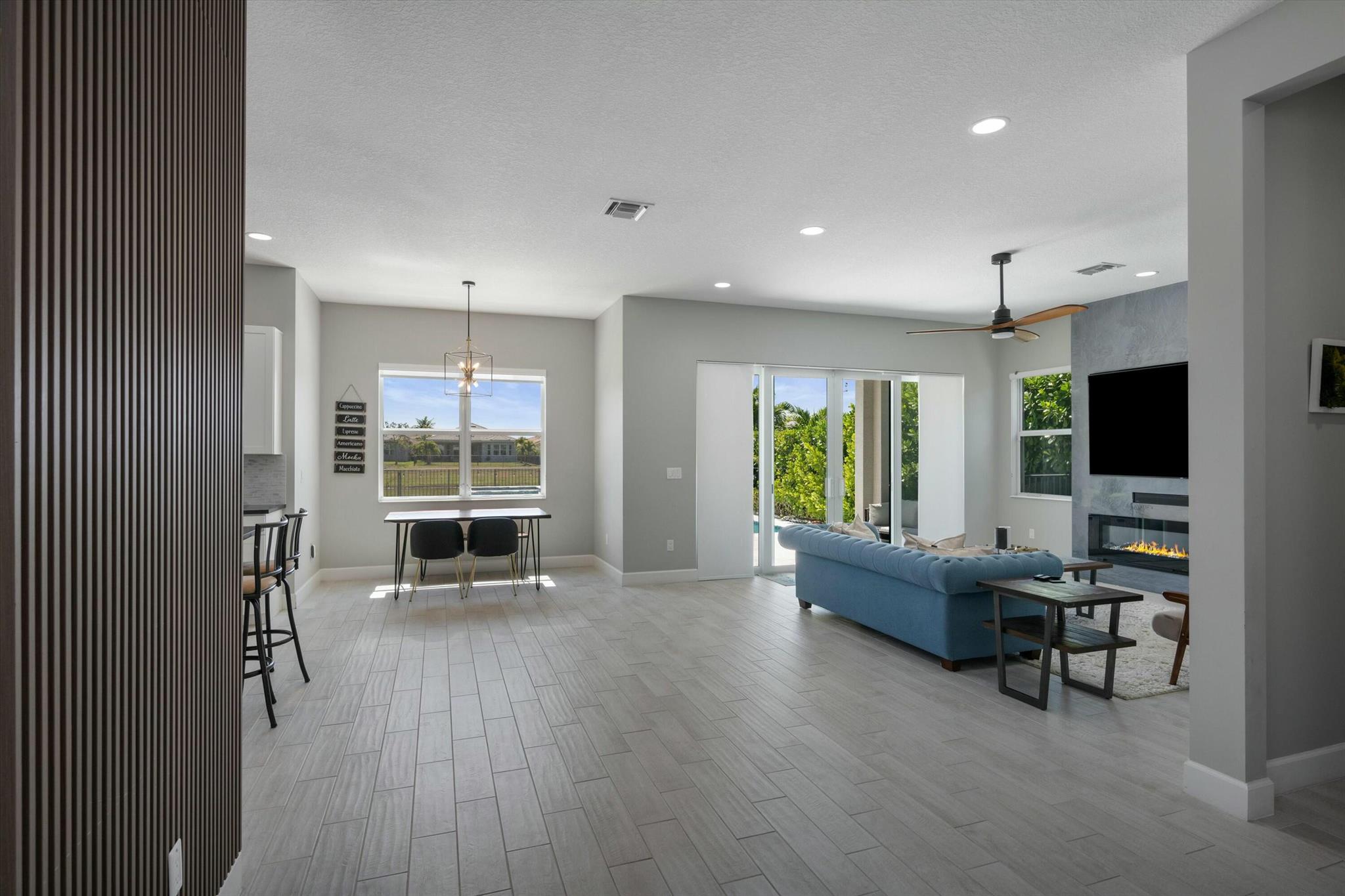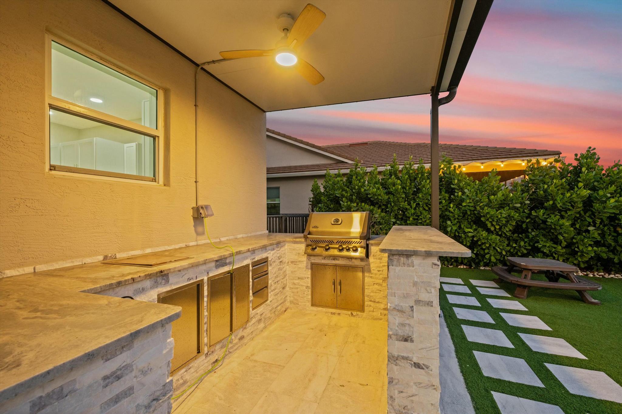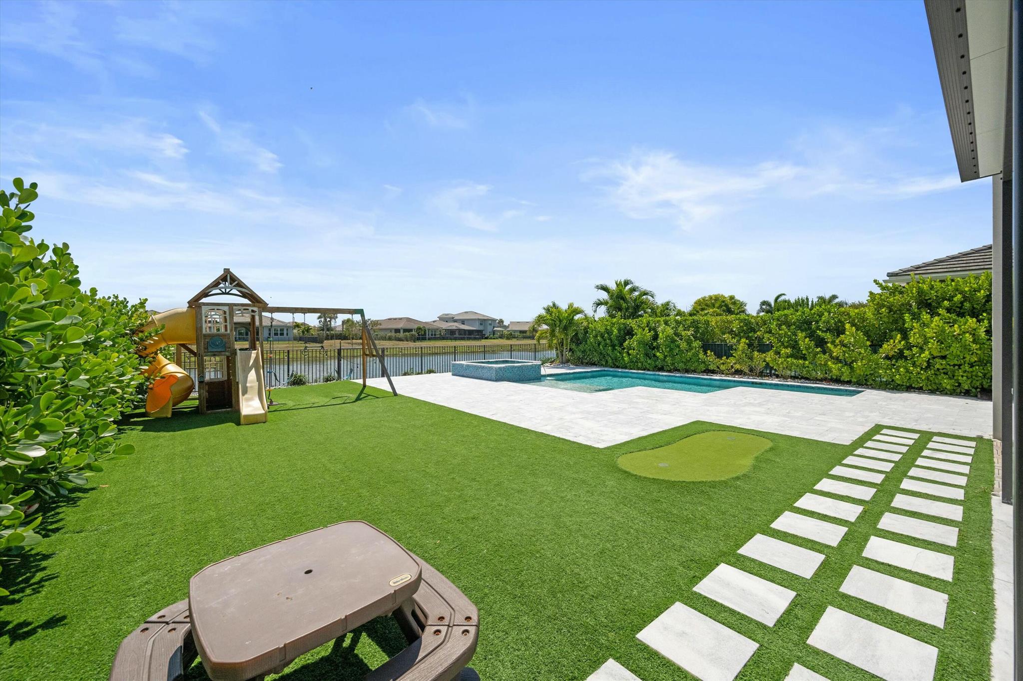Experience luxury living in this stunning Laurel Model home, located in the prestigious Meadows community of Westlake, FL. This 5-bedroom, 3-bathroom, 2-story residence boasts impact windows throughout, ensuring safety and energy efficiency,complemented by 33 solar panels for exceptional sustainability and reduced energy costs. With 3,071 sq. ft. of living space, a 3-car garage, and a salted and heated pool and spa, this home offers an unparalleled blend of elegance and functionality. The backyard was meticulously designed to ensure maximum yard space, outdoor kitchen and still plenty of yard space for entertaining and playing.