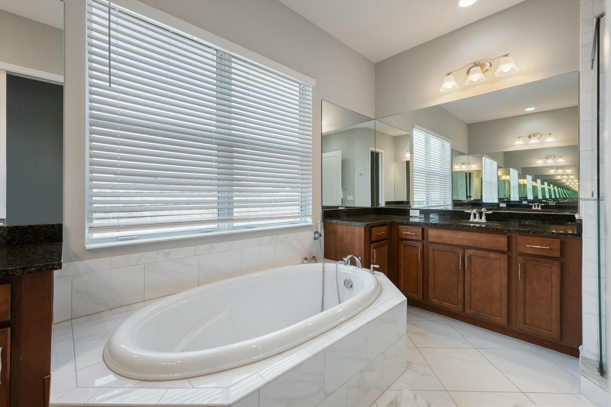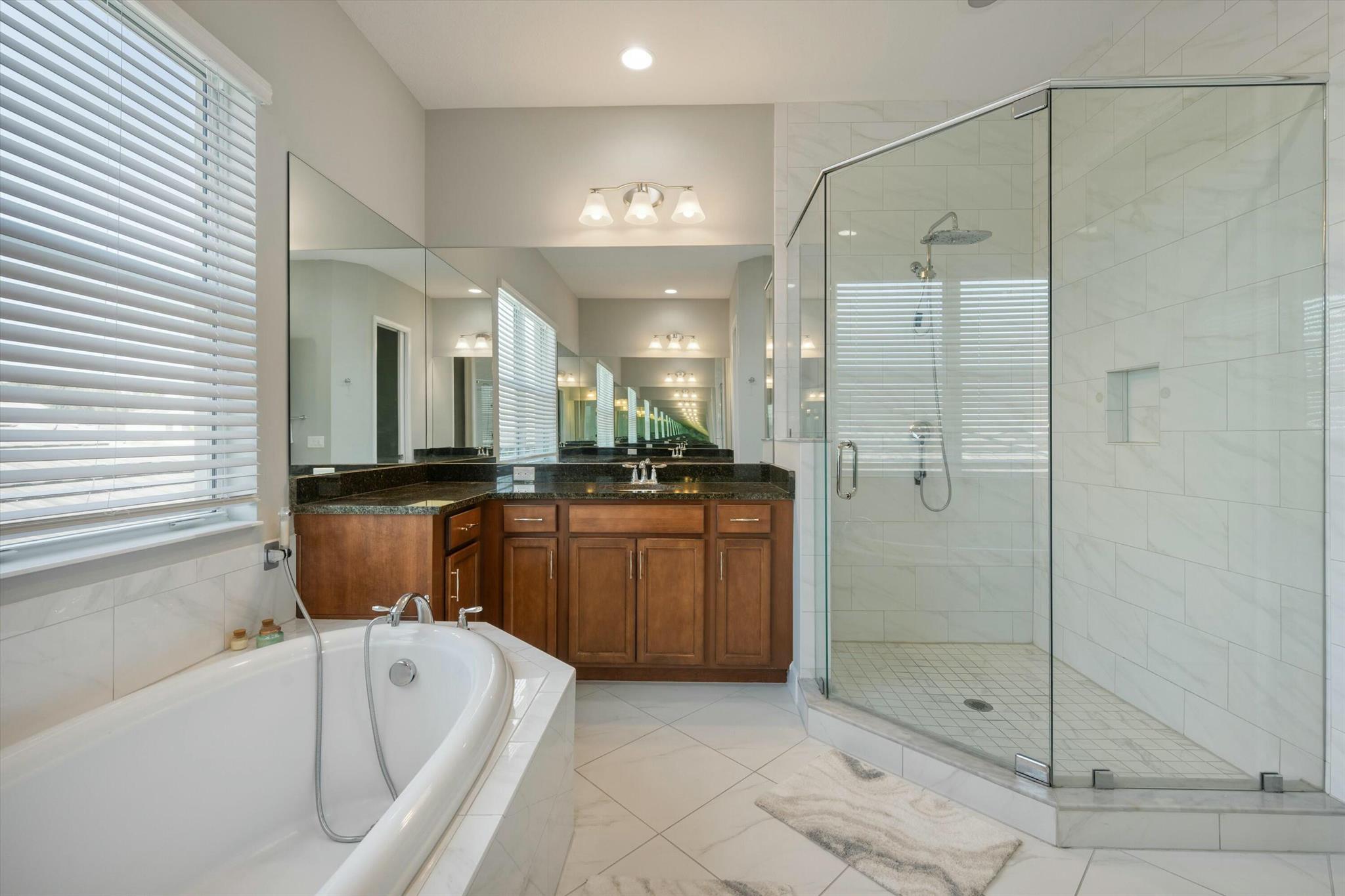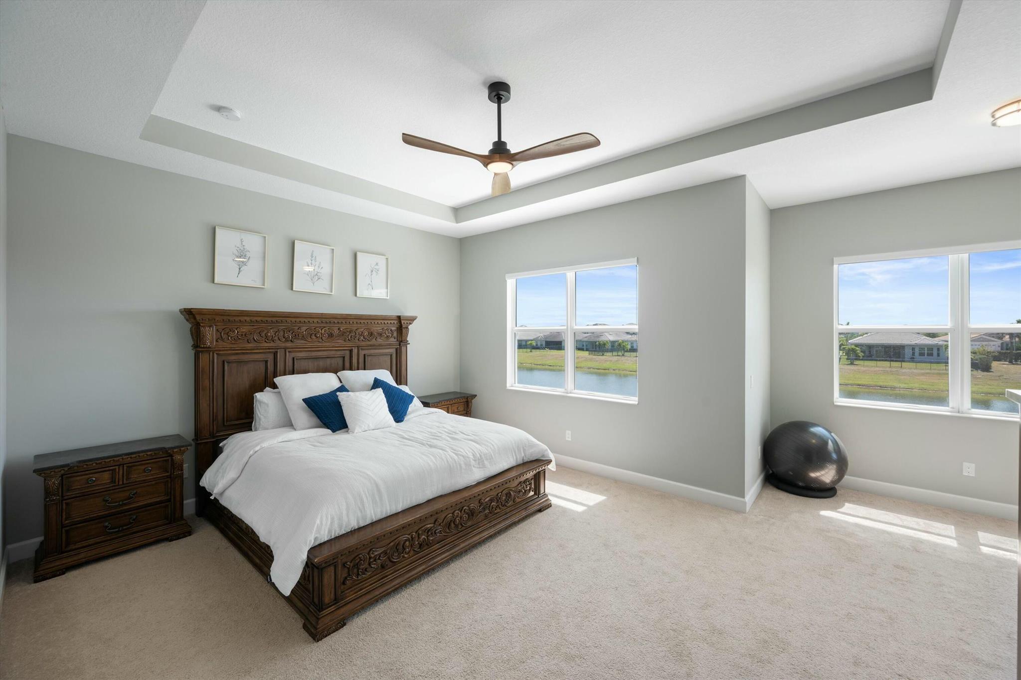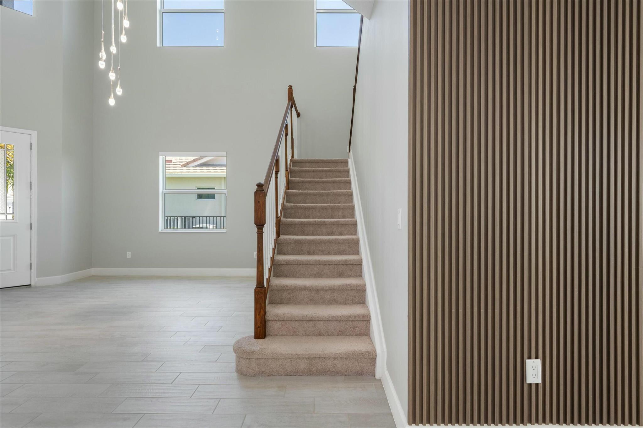 Experience luxury living in this stunning Laurel Model home, located in the prestigious Meadows community of Westlake, FL. This 5-bedroom, 3-bathroom, 2-story residence boasts impact windows throughout, ensuring safety and energy efficiency,complemented by 33 solar panels for exceptional sustainability and reduced energy costs. With 3,071 sq. ft. of living space, a 3-car garage, and a salted and heated pool and spa, this home offers an unparalleled blend of elegance and functionality. The backyard was meticulously designed to ensure maximum yard space, outdoor kitchen and still plenty of yard space for entertaining and playing.