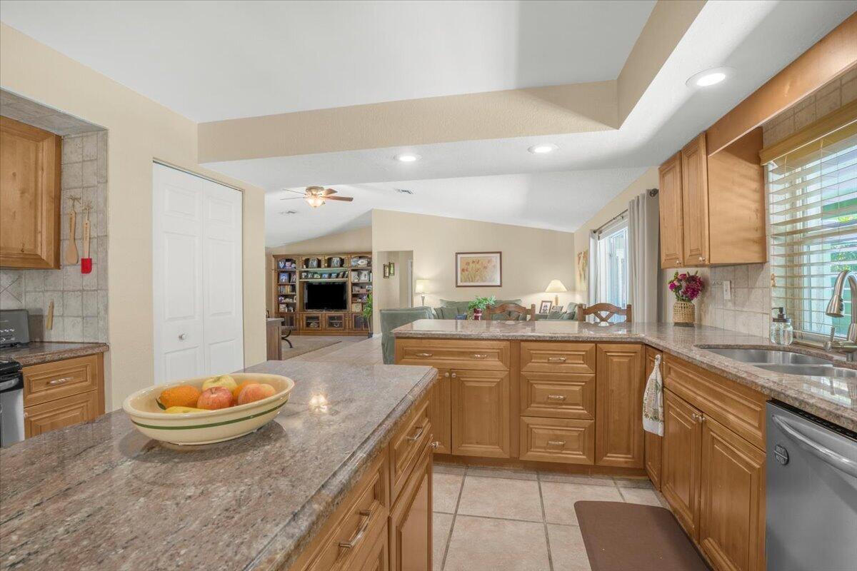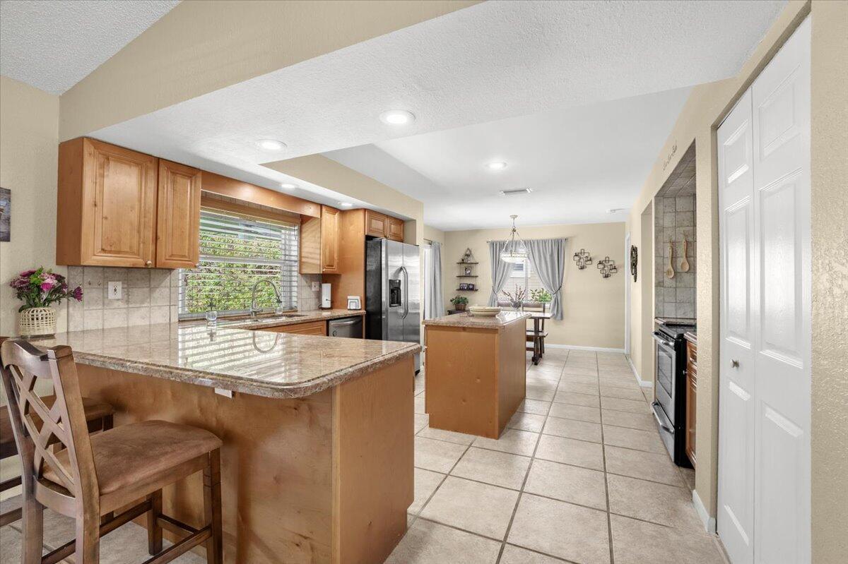 $5000.00 credit at closing! Welcome to this beautiful 4-bedroom, 2.5-bathroom home featuring a 2-car garage and plenty of space in the driveway, perfect for families and entertaining. This home boasts hurricane impact windows ensuring peace of mind. Vaulted ceilings & recessed lighting for a bright, airy feel, Stunning granite countertops & stainless steel appliances , Spacious kitchen island with power + NEW microwave. Custom master closet & double closets in secondary bedrooms. Mosaic entryway for added elegance gorgeous pool and outdoor oasis. Outdoor & Structural Features:, A/C: Installed in 2021, new pool pump and new A/C thermostat, This home offers comfort, convenience, and thoughtful upgrades throughout. Don't miss your chance to own this gem!