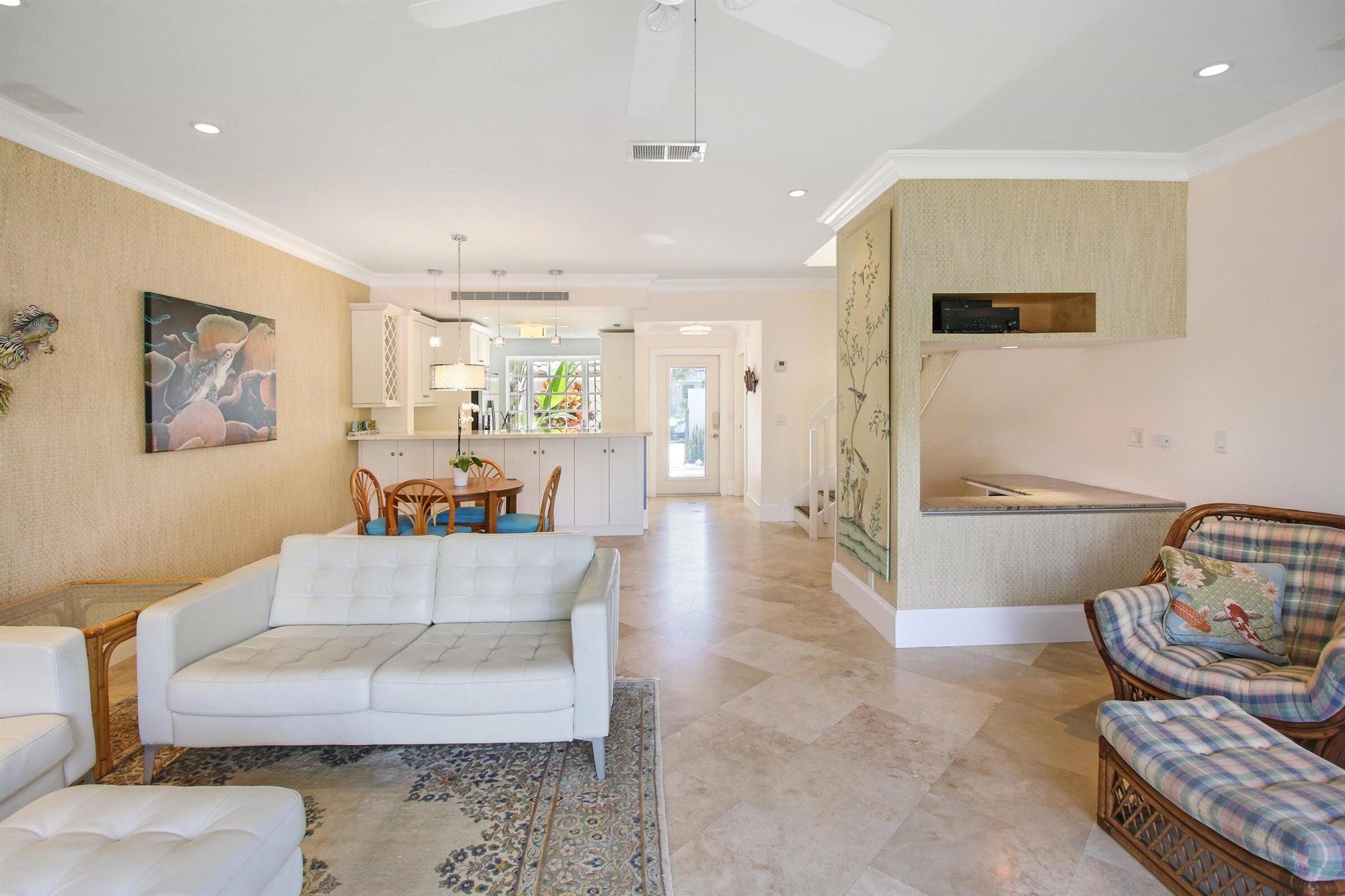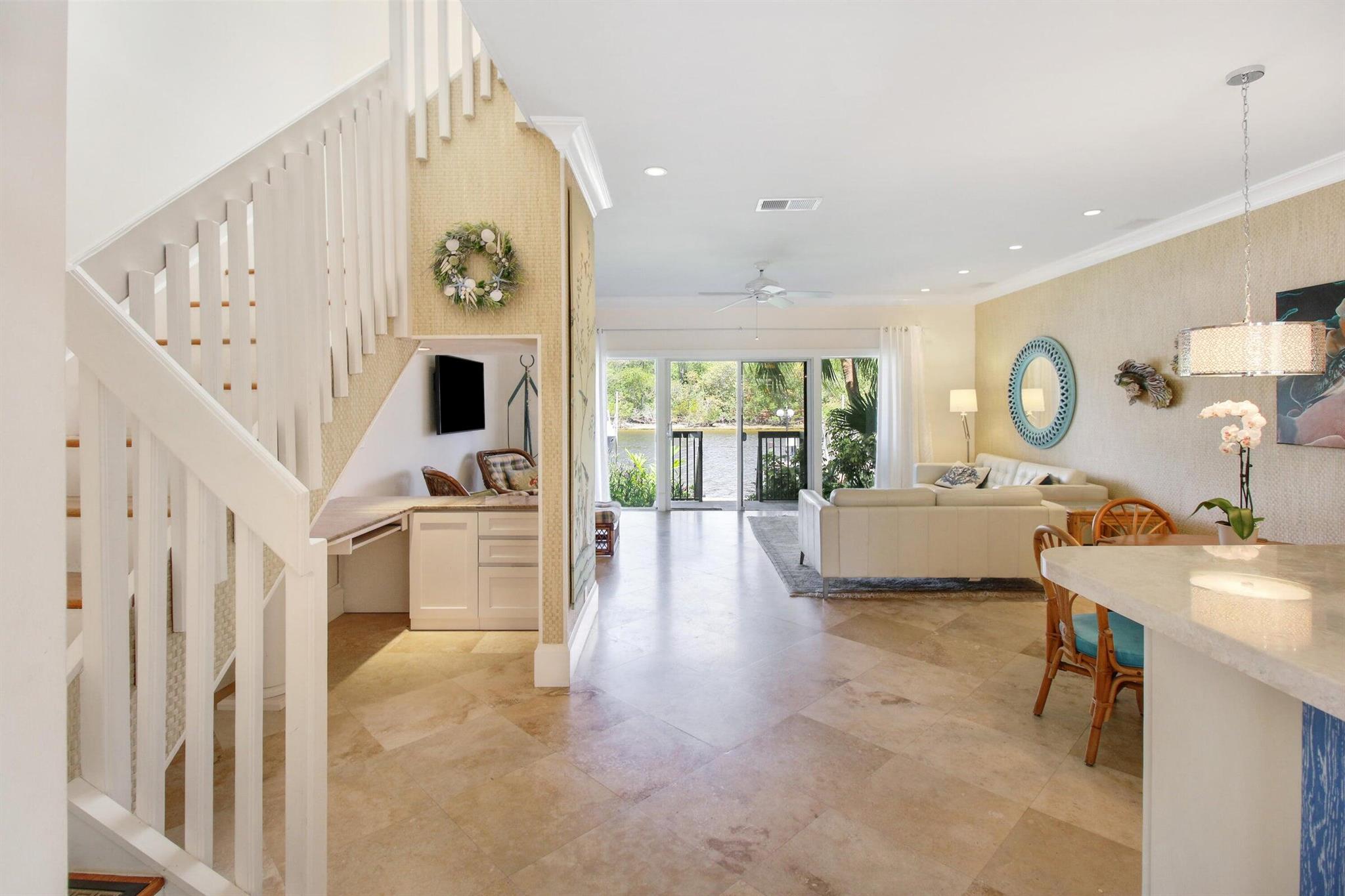 Rarely available, this beautifully remodeled townhouse. Is situated directly on the intracoastal waterway on the island, just blocks to the beach, shops, restaurants and bars. Perfect for a pied-a-terre, corporate retreat, beach cabana or retirement home. The townhouse boasts two en-suites, a downstairs power room, a garage, courtyard, a new AC, a tankless hot water heater, stone flooring throughout, a stainless steel kitchen, indoor/outdoor sound systems, an outdoor shower, a full-size washer/dryer and large primary bath with a jacuzzi tub, marble and dual sinks. Enjoy stunning views of never ending boat parades and the nature preserve from the comfort of your couch, kitchen and bedroom. This very low HOA property sits in a small four-unit complex and includes a deed for a deep water