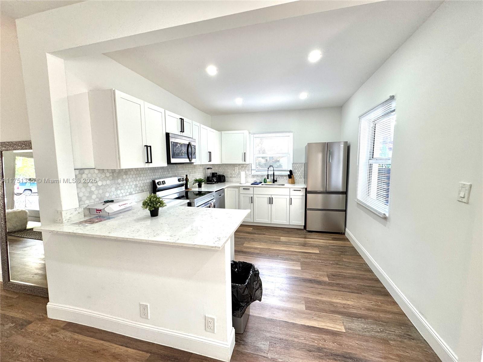 Exquisite 3/3 Pool home in the best part of the picturesque Village of El Portal. This turnkey gem features a spacious floorplan spanning over 1,700 Sqft, with high ceilings enhanced by sophisticated LED lighting. The residence comprises three bedrooms, each with a newly renovated full bathroom. The kitchen is a state-of-the-art masterpiece, equipped with high-end appliances and a quartz countertop with an island. The flooring exudes beauty and elegance, and all the essential systems have been upgraded, including plumbing, electrical, and the AC system. Step outside to discover a beautifully landscaped yard with a patio, a sparkling blue pool and a majestuous mango tree. Short term rentals are allowed in El Portal to make this home an amazing income producer! Will not last!!!
