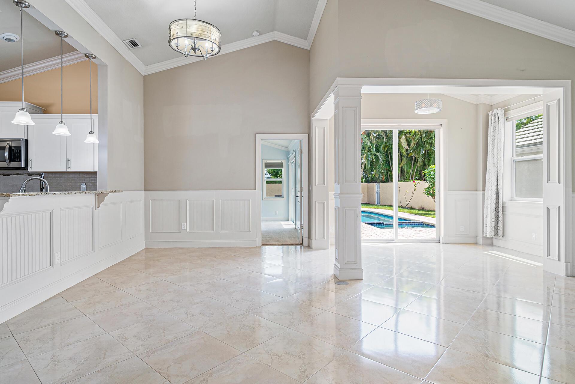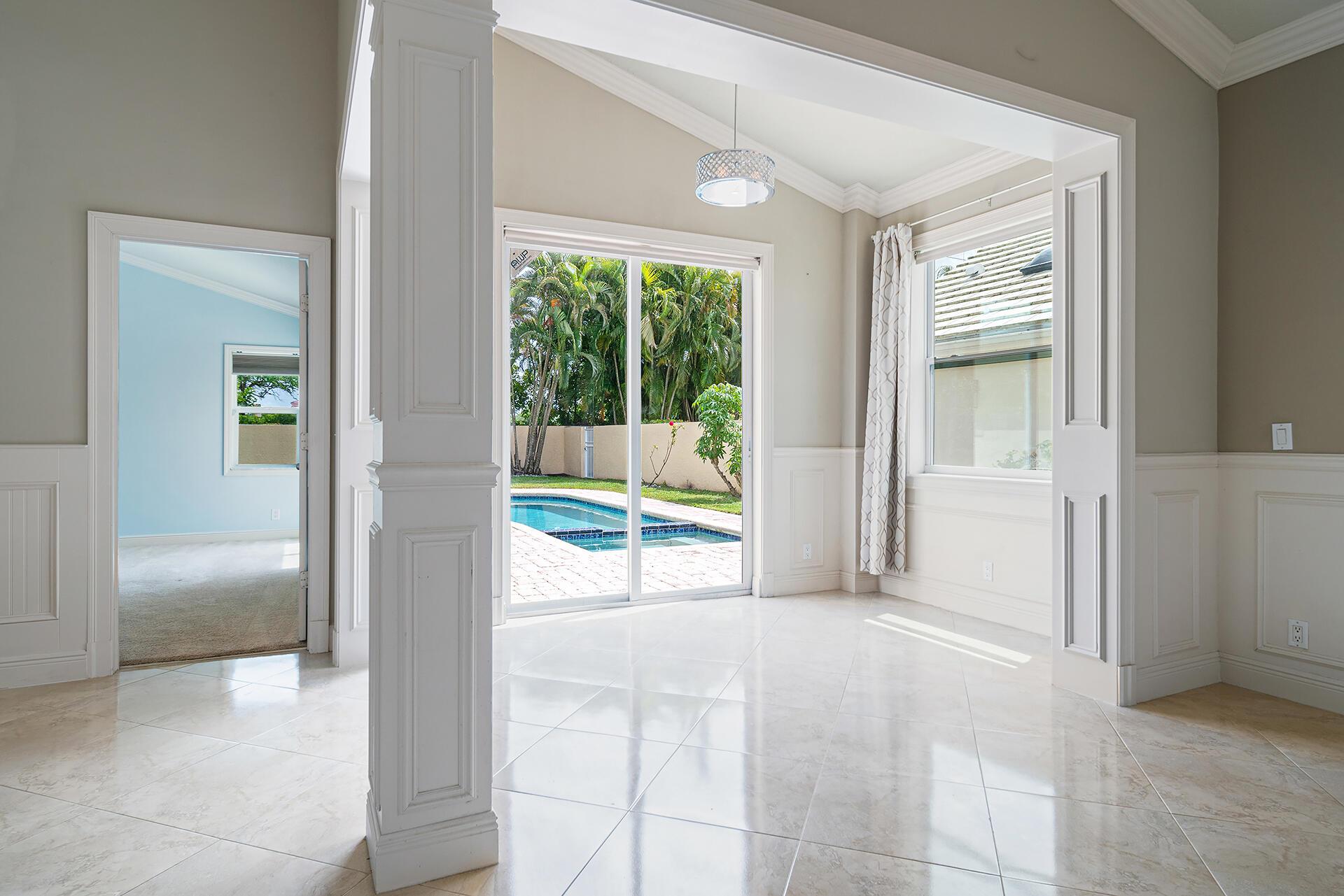 MOTIVATED SELLER! BRING ANY & ALL OFFERS!! Beautiful remodeled 3bd POOL home w/ travertine entry thru the walled private courtyard with a gate 21.9 x 12.8, you are greeted inside w/vaulted volume ceilings, gleaming porcelain floors, extensive molding/trim work, Roof 2015, impact sliders to pool from Master & Family Rm, very large pool w/ new salt system in '20 & new salt cell in '24, new equipment & newly resurfaced, new '24 tankless water heater, new '24 3 ton A/C condenser, new '16 & '18 impact wdws (most) & 2 sliders, '24 newly painted exterior & privacy walls w/ 7 yr warranty, new '17 propane tank installed for pool & spa heater, both baths updated & completely updated spacious kitchen w/stainless steel appliances, granite counter, ample 42'' white shaker cabinetry w/ crown mol
