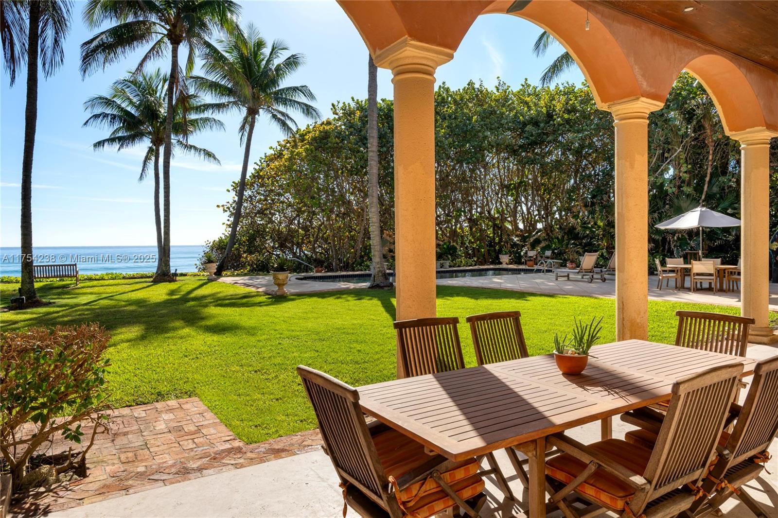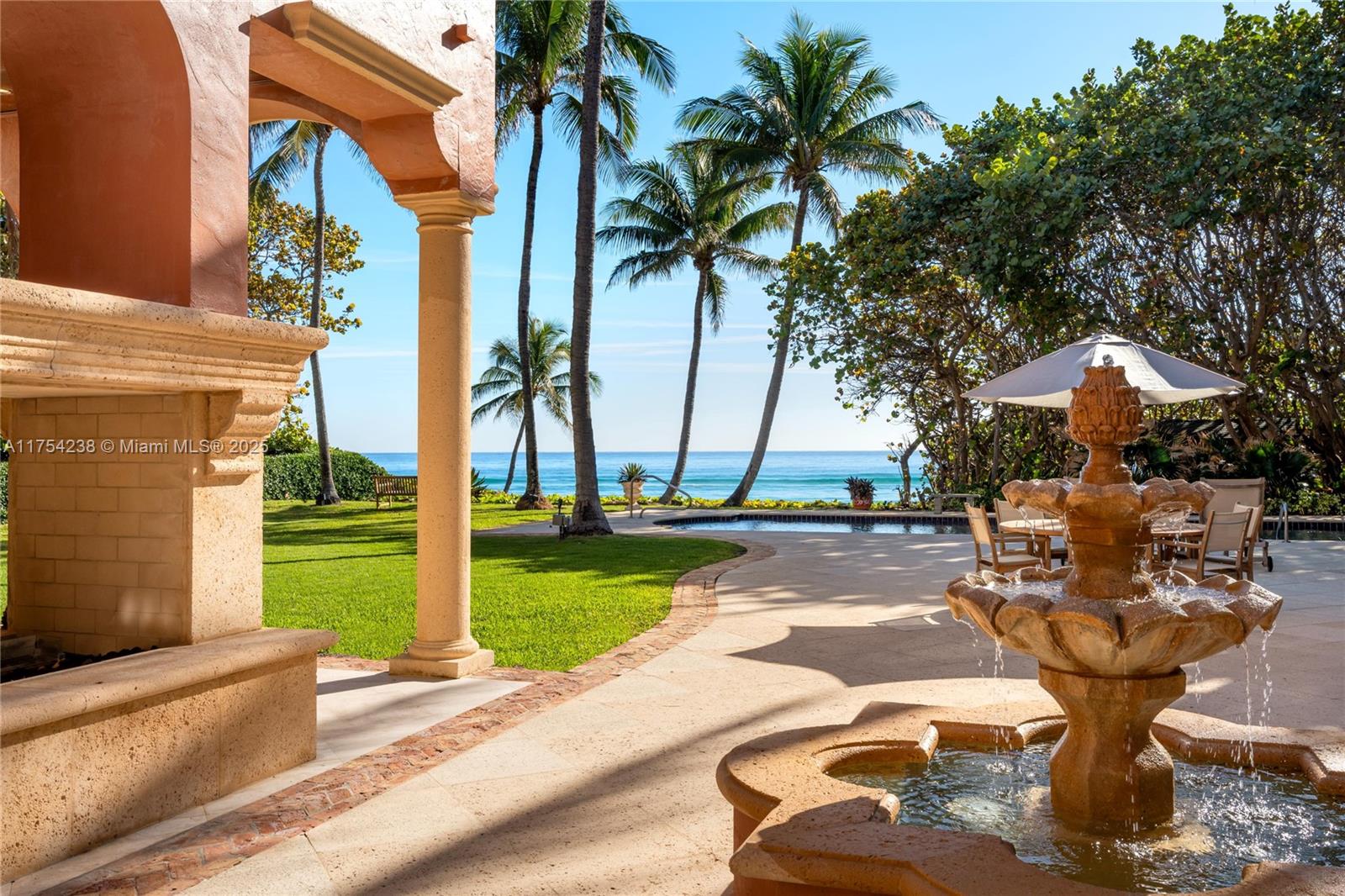 Welcome to 1091 Hillsboro Mile, a grand ocean-to-Intracoastal estate offering 125’ of pristine ocean frontage and 130’ of no-wake Intracoastal dockage. This is an opportunity to acquire a generational family compound that feels like your own private beach resort. Situated on 1.35 acres along Hillsboro Mile’s prestigious stretch of oceanfront estate homes, the 10,000+ SF mansion features 6 beds, 6.5 baths, elegant living spaces & entertainment areas with breathtaking views of Florida’s pristine Atlantic waters. The expansive outdoor area boasts a gorgeous patio, summer kitchen, fireplace, fountain, pool & pathway to your private beach.  For buyers seeking privacy,the property is located mid-island w/a gated entrance and within close to private airports, the Hillsboro Inlet & service marina.