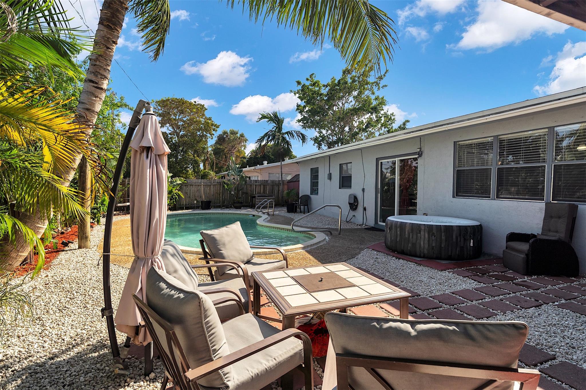 MOVE-IN READY 3-bedroom, 2-bath home with key upgrades! Freshly painted inside and out, this home features all brand new waterproof laminate flooring flows seamlessly throughout the large bedrooms and living areas. Updated kitchen boasts refaced cabinetry, stainless steel appliances, and new microwave. Spacious master bedroom with ensuite bath. Impact windows on the front and sides, a 2018 roof and a 2021 A/C system, ensure comfort and peace of mind. Electrical and breakers were also updated in 2024. Step outside to a private oasis with an in-ground pool and new pump, complemented by a custom cabana/entertainment area. A 4-zone solar-powered sprinkler system maintains the lush landscaping. Conveniently located, this property is near a public boat ramp.