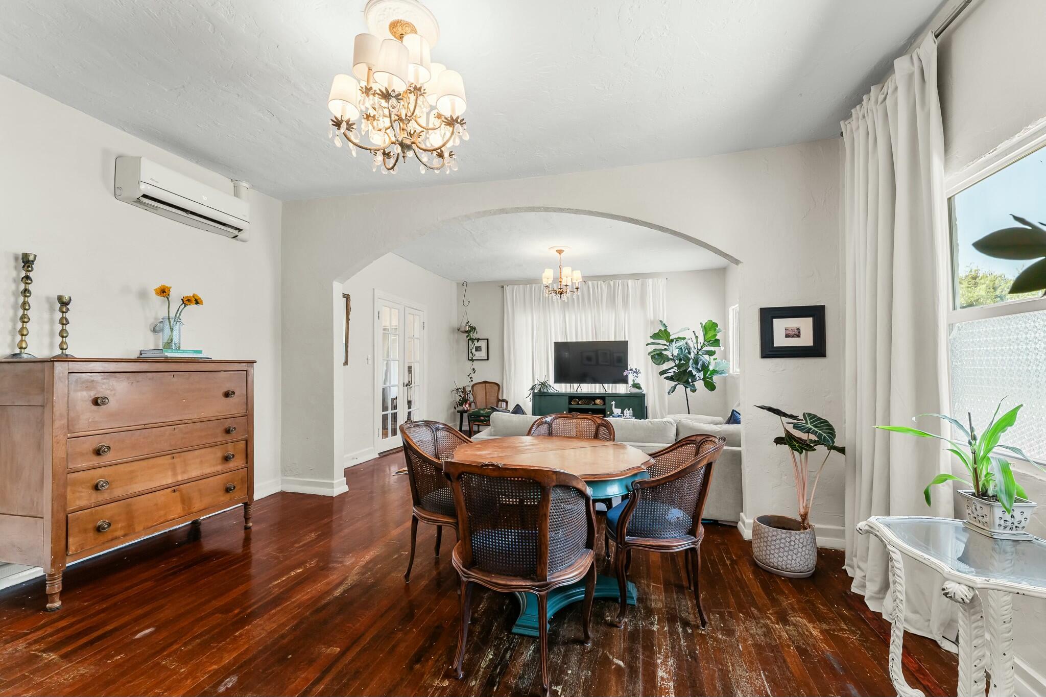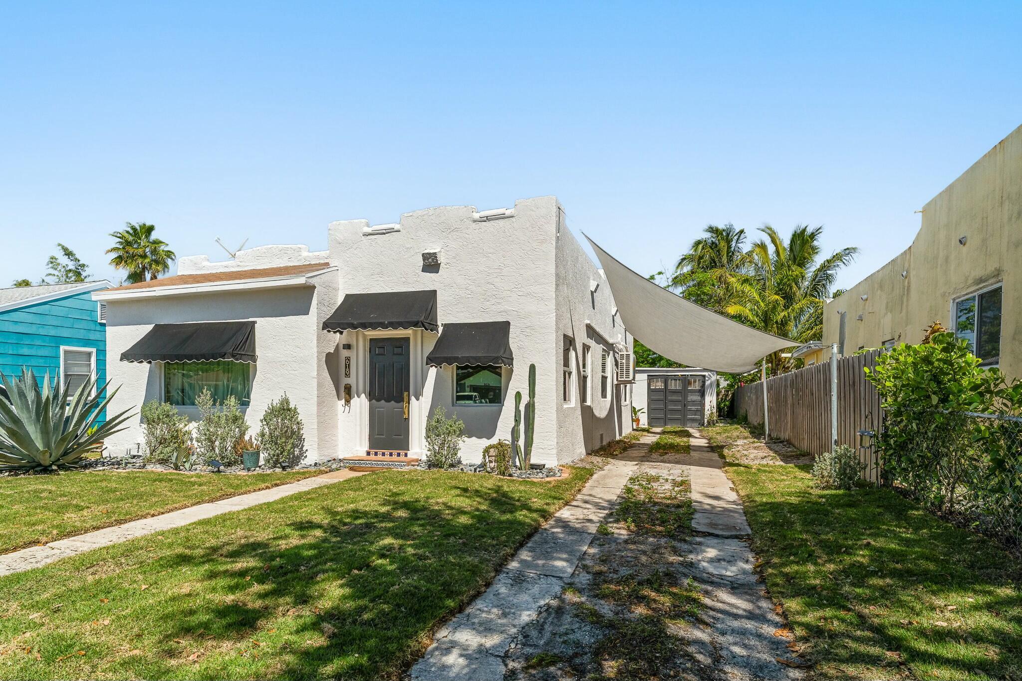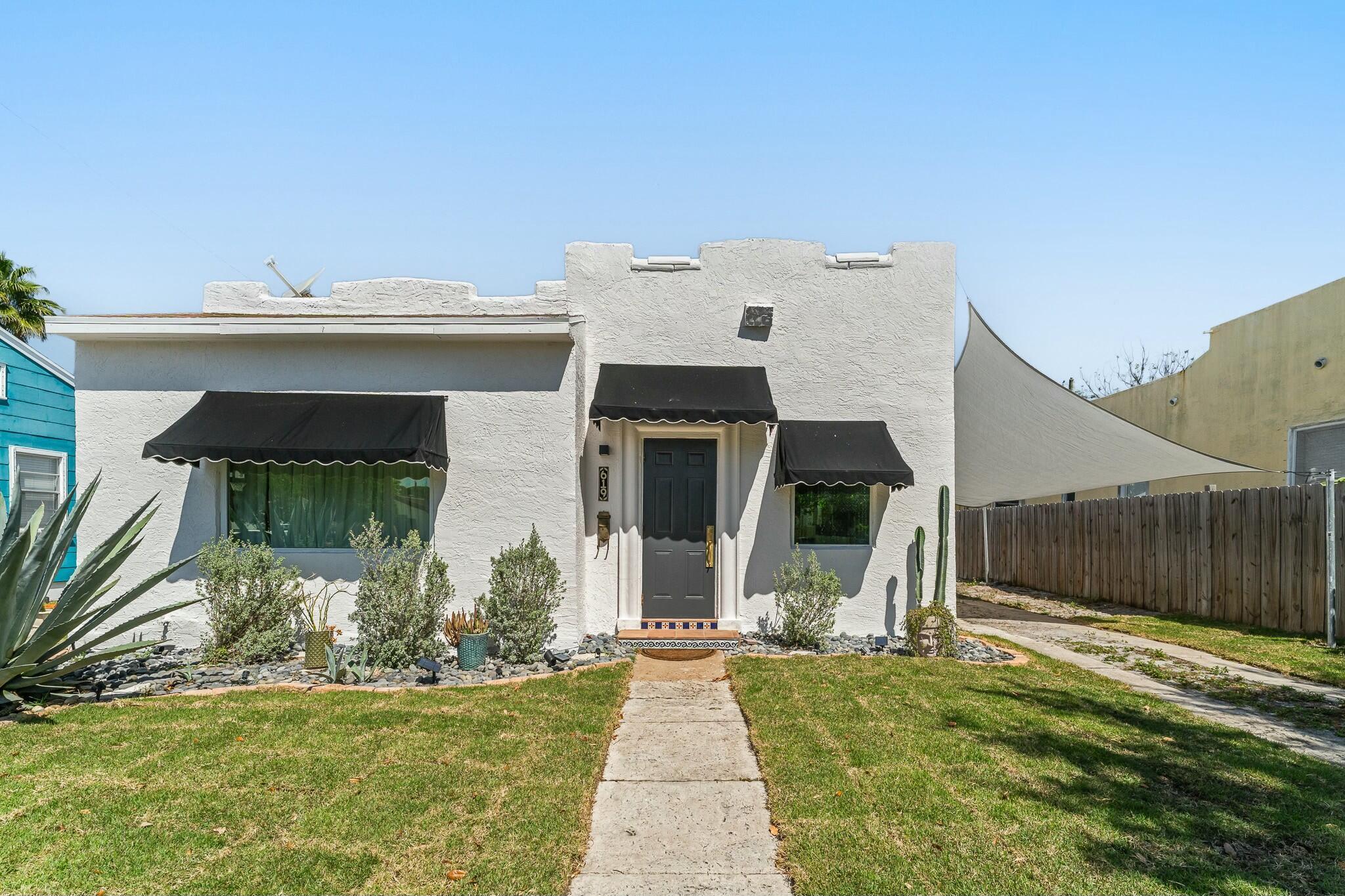 DISCOVER the quiet quaint and historic Old-Florida neighborhood of Parker Ridge, with lush mature trees, and sidewalks. This beautifully modernized Old Spanish styled home with a detached GARAGE has PAID-OFF SOLAR PANELS with IMPACT WINDOWS and a whisper-quiet 4 ZONE mini-split A/C system which allows each area of the home to be set to your preferred temp, all while keeping the power bill to between roughly $35-75/month. The home still has plenty of Old Florida touches, including ORIGINAL HARDWOOD FLOORS throughout the living/dining area, and HIGH CEILINGS throughout the entire home. The FENCED-IN BACKYARD is perfect for letting the dog out quickly, or lounging under the removable shade enjoying the fresh breeze coming off the ocean less than 2 miles to the east! Call today for a tour!