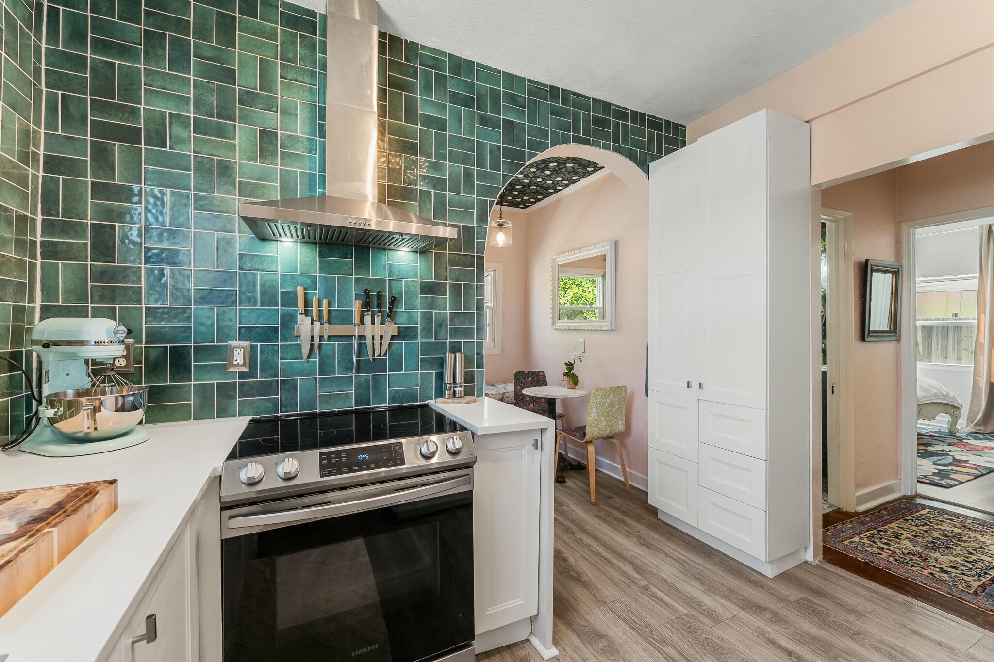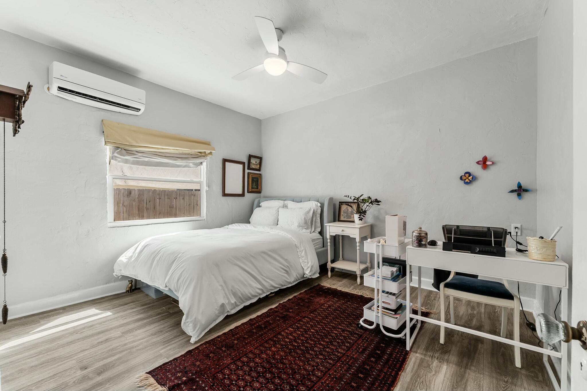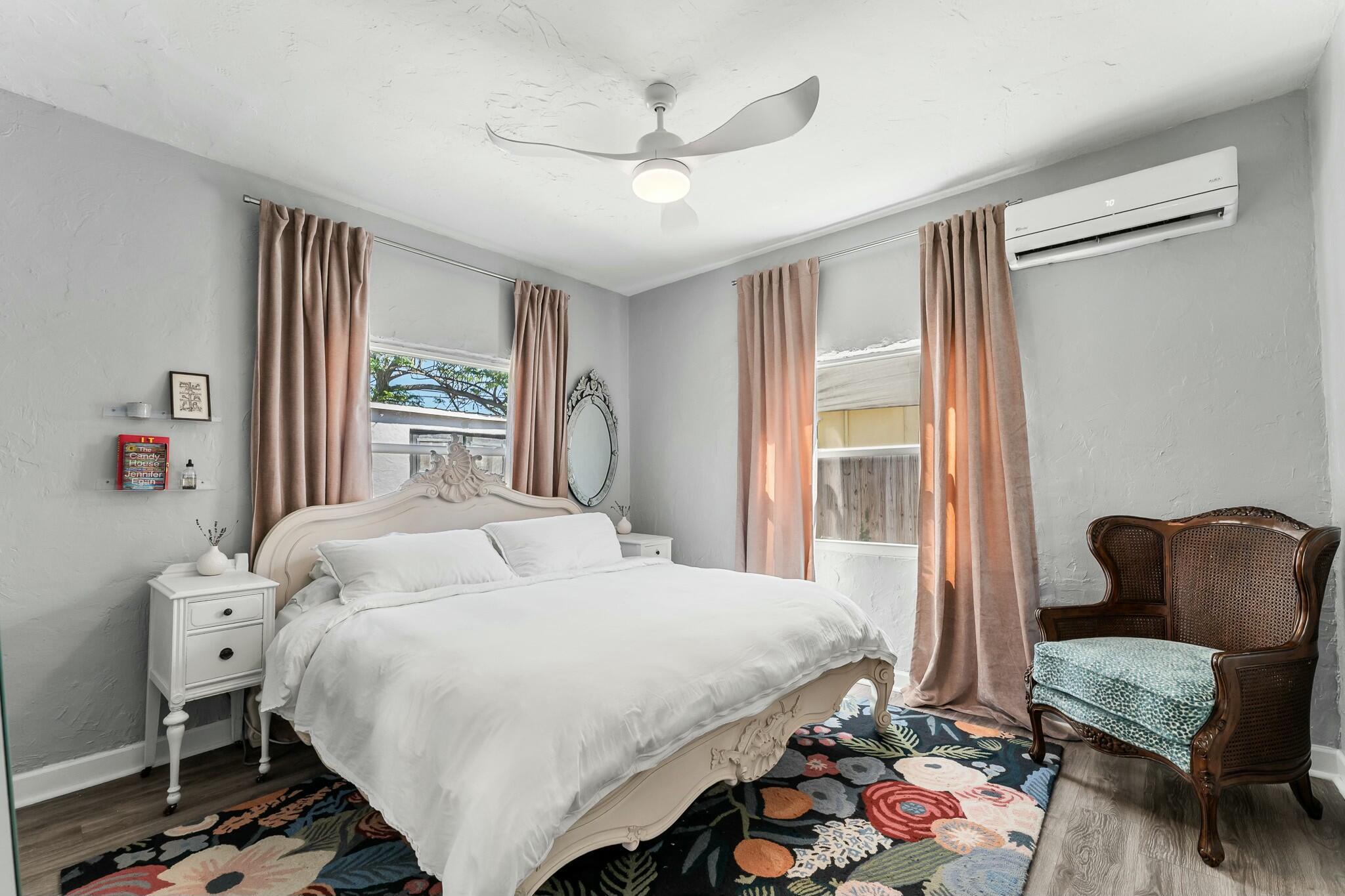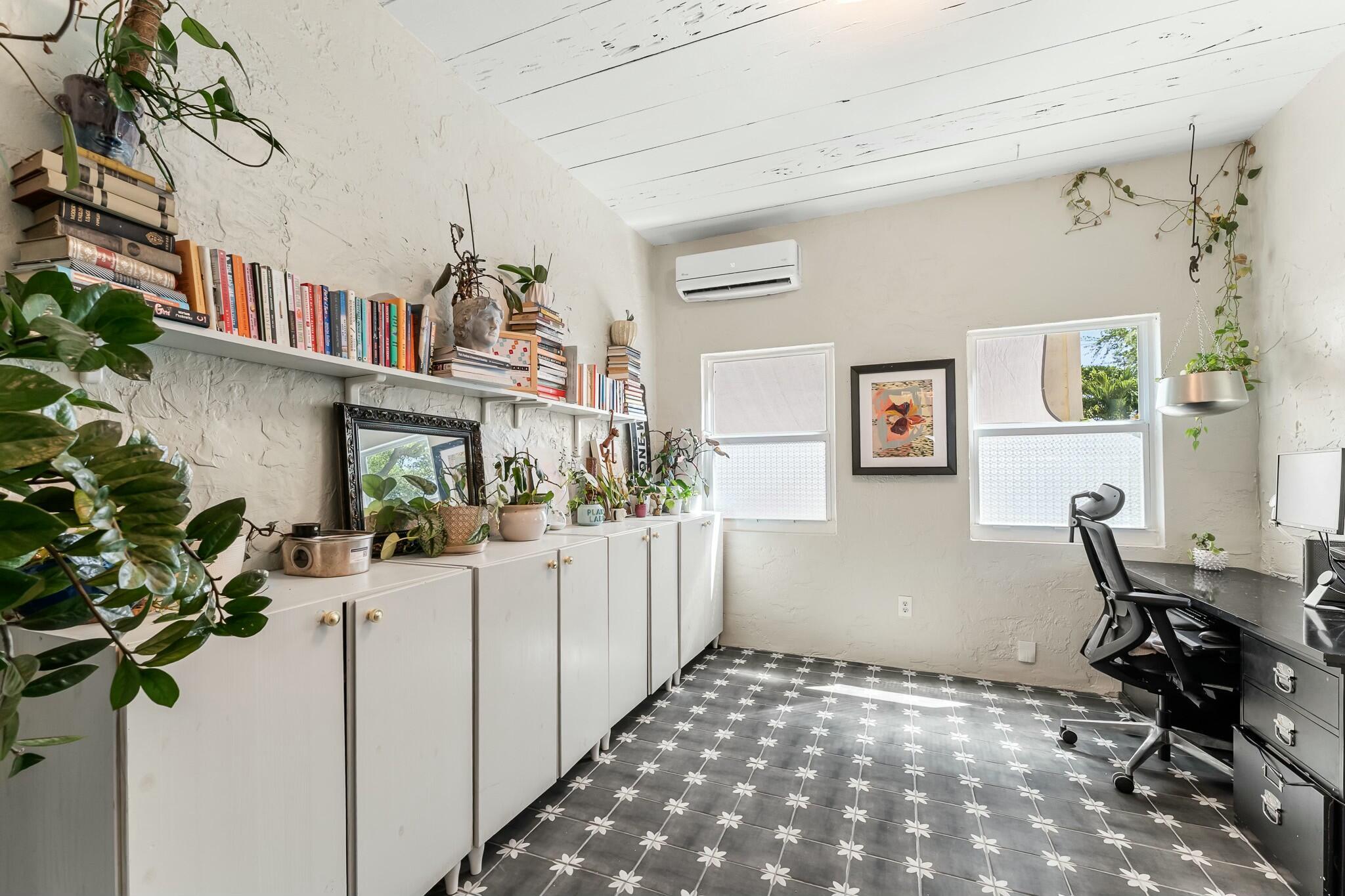 DISCOVER the quiet quaint and historic Old-Florida neighborhood of Parker Ridge, with lush mature trees, and sidewalks. This beautifully modernized Old Spanish styled home with a detached GARAGE has PAID-OFF SOLAR PANELS with IMPACT WINDOWS and a whisper-quiet 4 ZONE mini-split A/C system which allows each area of the home to be set to your preferred temp, all while keeping the power bill to between roughly $35-75/month. The home still has plenty of Old Florida touches, including ORIGINAL HARDWOOD FLOORS throughout the living/dining area, and HIGH CEILINGS throughout the entire home. The FENCED-IN BACKYARD is perfect for letting the dog out quickly, or lounging under the removable shade enjoying the fresh breeze coming off the ocean less than 2 miles to the east! Call today for a tour!