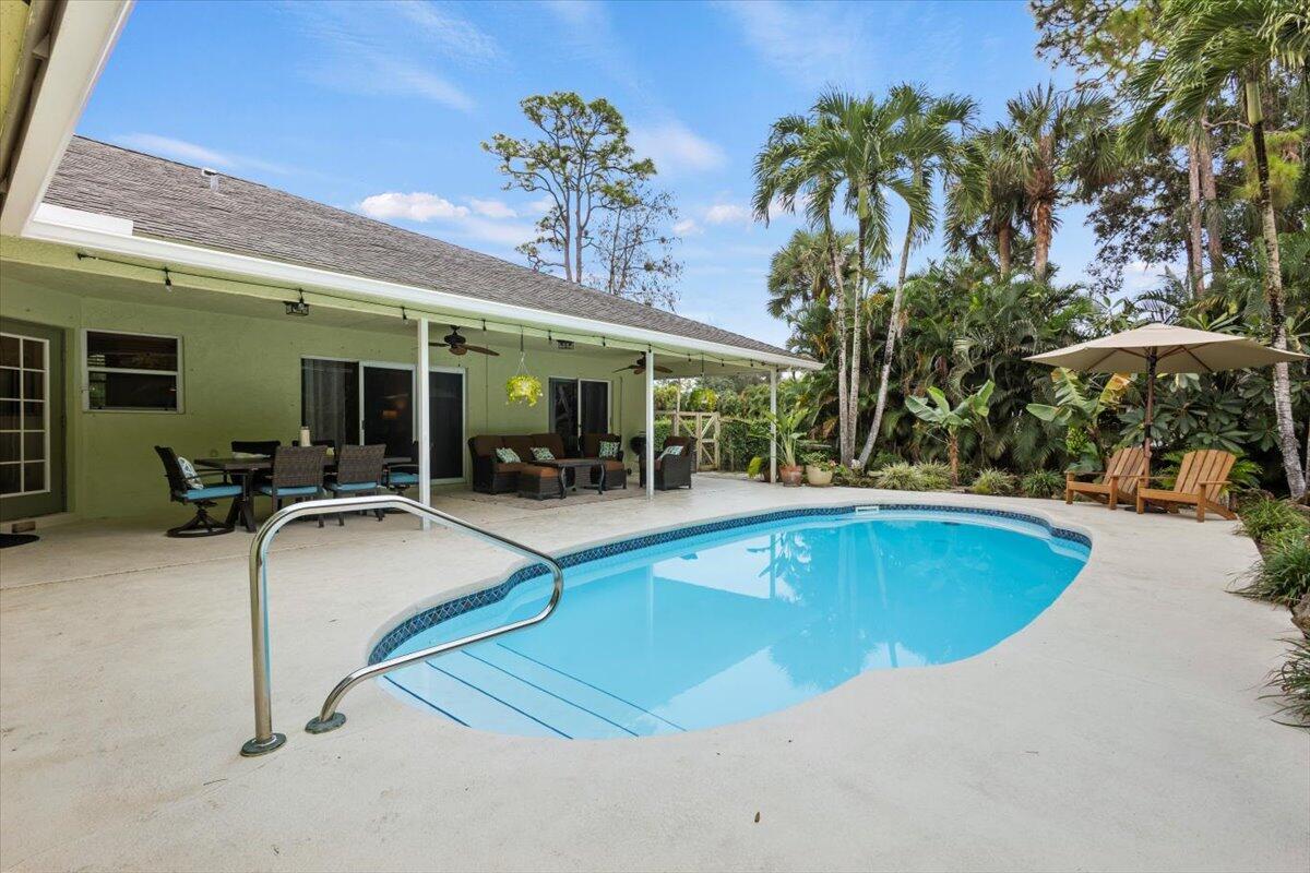 This 4-bedroom 2.5-bath home with a pool and a large patio is the perfect sanctuary. Very private, well-maintained home at the end of a cul-de-sac. Fenced, gated with mature trees, and no HOA. The property has a new HVAC system, a large 2.5 car garage, and is situated on one acre. All amenities, including Palm Beach International Airport, I-95 and the Florida Turnpike, and Okeeheelee are within close proximity.