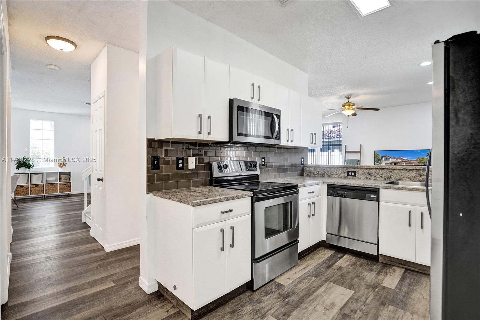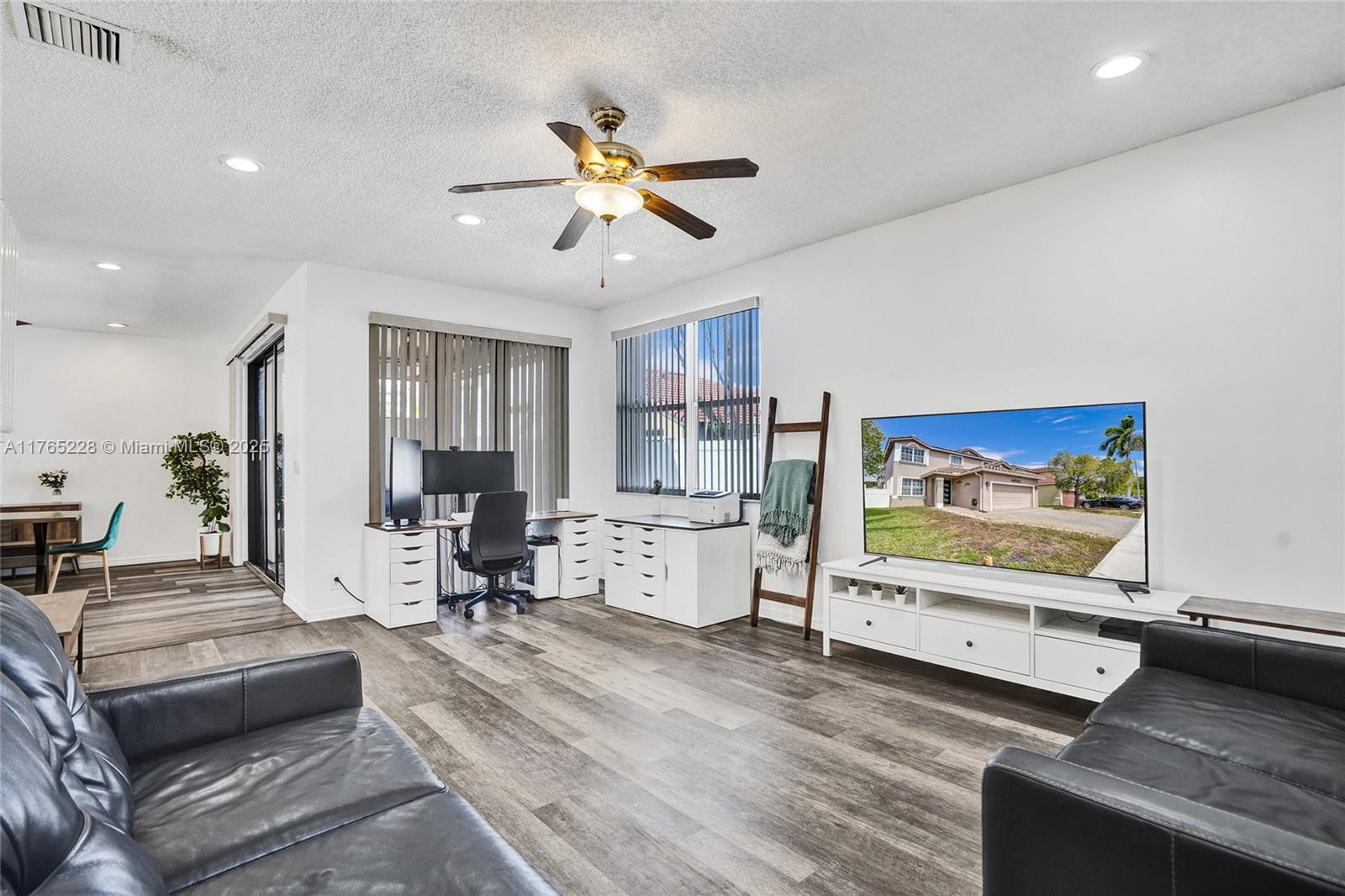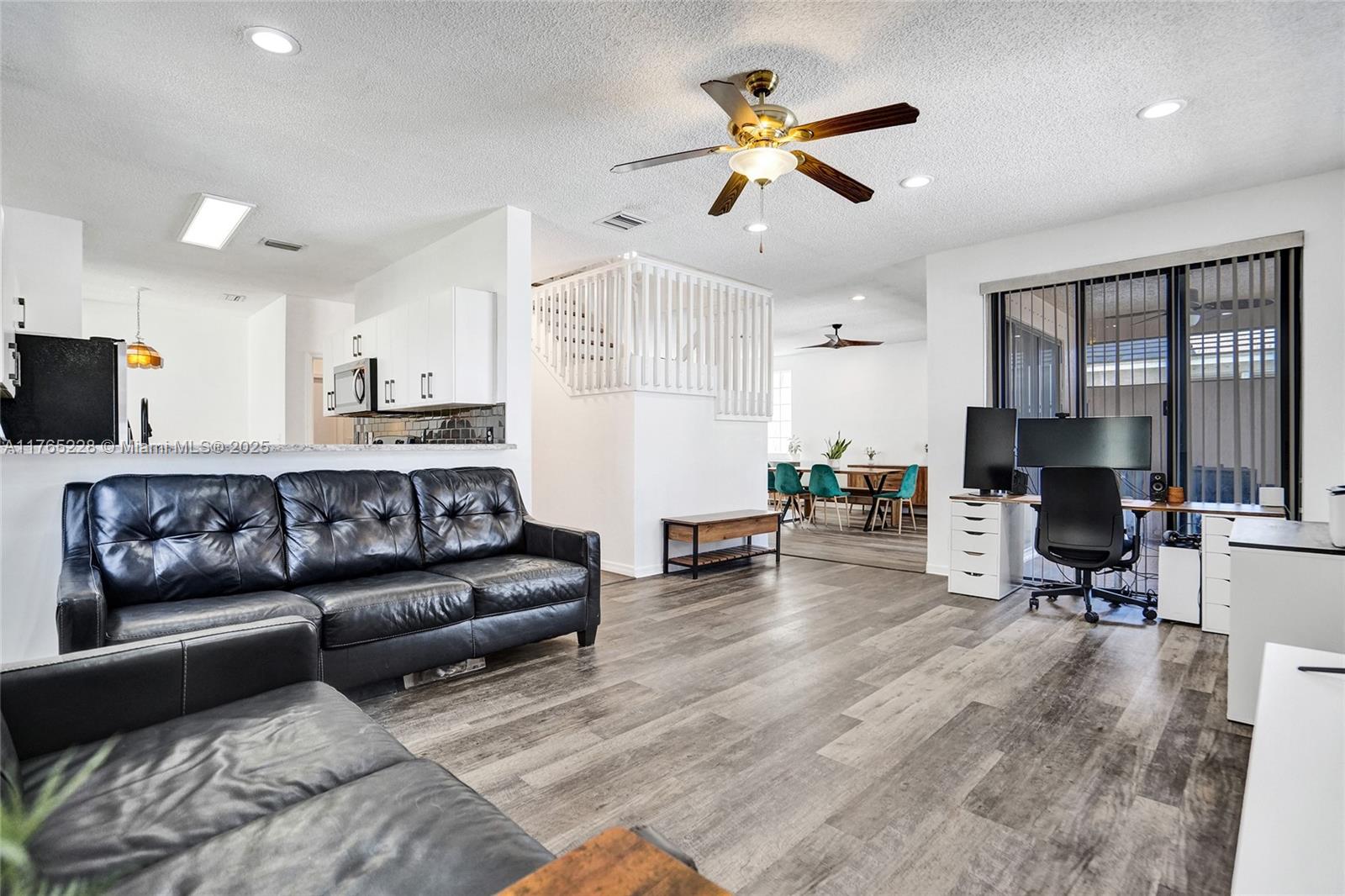 Stunning 4-bed and 2.5-bath home featuring new luxury vinyl flooring throughout and modern light fixtures that add a fresh, contemporary feel. The open kitchen is perfect for entertaining, complete with stainless steel appliances. Enjoy peace of mind with a young roof (2019), hurricane impact-rated sliding glass and front doors, and accordion shutters on all other windows. The home boasts all-new plumbing, an updated electrical panel, and a 2021 A/C unit for added comfort. Step outside to a screened-in patio and fenced-in yard, ideal for outdoor gatherings. This home is located in a guard-gated community with access to a community pool. Enjoy the convenience of being close to I-75, top-rated schools, and plenty of shopping and dining options. Don’t miss out on this incredible opportunity!