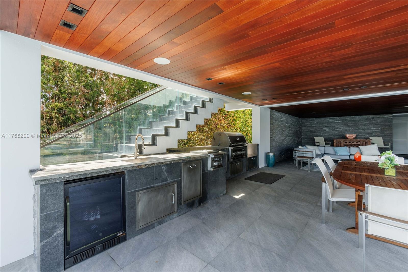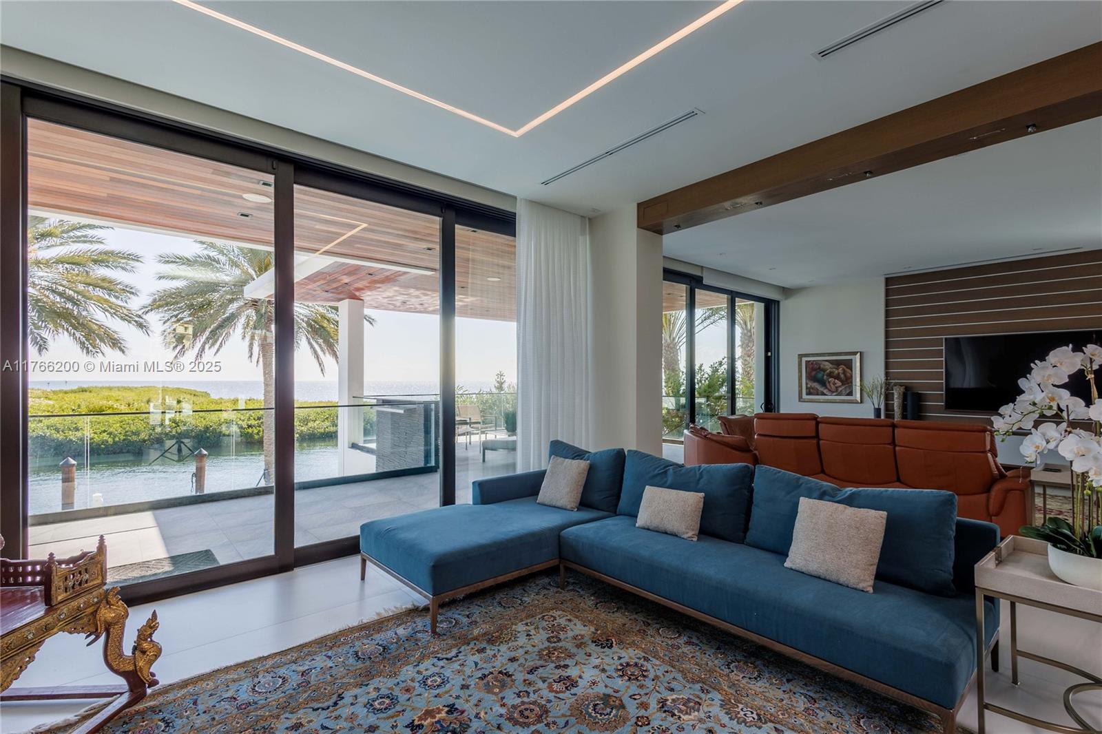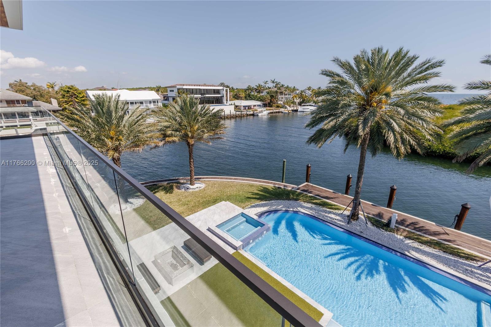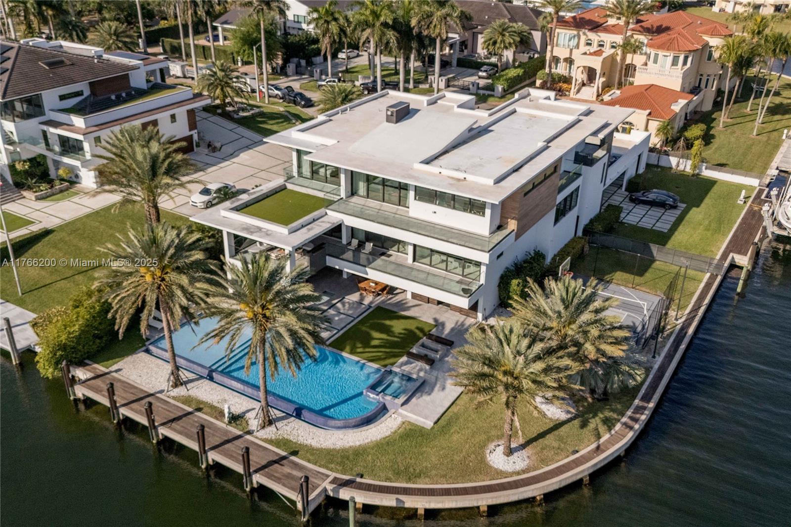 This is the most prestigious estate in all of Gables by the Sea. Built in 2018 and meticulously designed by Calil Architects, this extraordinary residence is a boater's paradise, featuring over 300 feet of seawall, two docks, and a boat lift. With ample space to accommodate both a 100-foot yacht and a 40-foot tender, this property offers the ultimate in luxury waterfront living. Nestled on a coveted corner lot, the home boasts breathtaking bay views from every room. Comprising seven bedrooms—five of which are on the second floor, each with its own private bathroom, walk-in closet, and covered terrace—this home provides unparalleled comfort and privacy. The pool, backyard, and BBQ area create an oasis-like retreat, perfect for both relaxation and sophisticated outdoor entertaining.