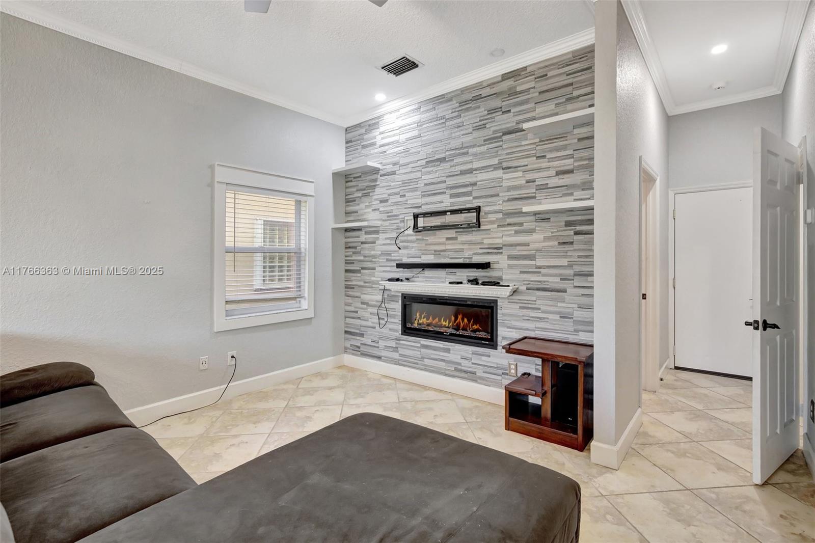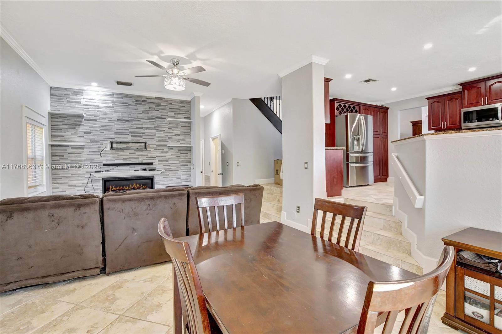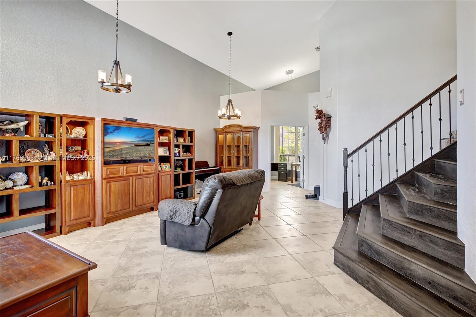 Welcome to where style meets function. This beautifully updated residence features an open layout with a custom beverage bar—perfect for entertaining. The gourmet kitchen offers SS appliances, modern finishes, and generous storage, flowing seamlessly into a spacious family room with an electric fireplace and smart lighting. Enjoy the added versatility of a loft and private office. The primary suite is a relaxing retreat with a spa-inspired bath and a generous walk-in closet. Step out onto your private balcony and take in a peaceful sunrise over a fenced backyard with room to add a pool. Smart features include a thermostat, Ring doorbell, and wired outdoor sound system. Accordion shutters provide storm protection, and a 2-car garage offers plenty of storage. 2019 roof and newer A/C (2024).