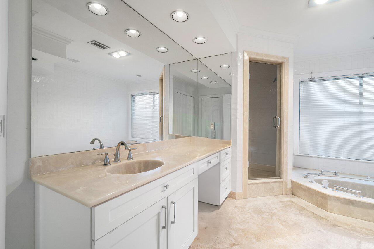 Welcome to 4237 Bocaire Boulevard, a stunning retreat where luxury and tranquility intertwine. Set within the prestigious Bocaire Country Club, this 3-bedroom plus office and 4.5-bathroom estate is a masterpiece of timeless design boasting over 3,800 total sq ft, offering breathtaking golf course views, spacious interiors, and seamless indoor-outdoor living. Step inside and be greeted by soaring vaulted ceilings, natural light streaming through skylights, and gleaming marble floors that set the stage for an inviting, open-concept living space. The great room, with its built-in entertainment center and elegant recessed lighting, flows effortlessly into the heart of the home--a chef's kitchen featuring white cabinetry,