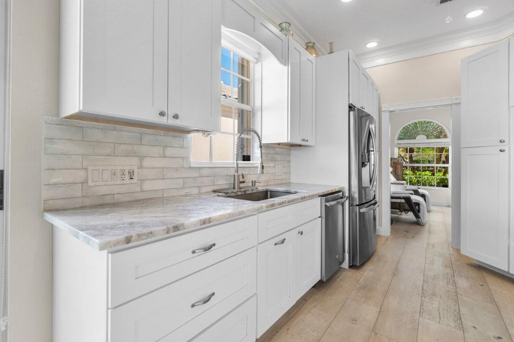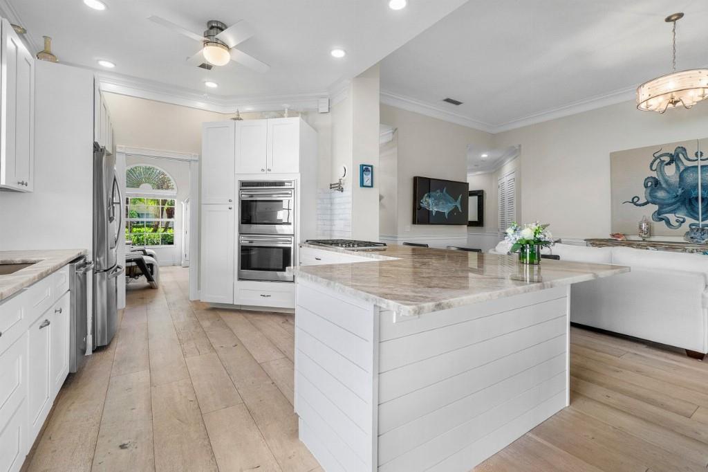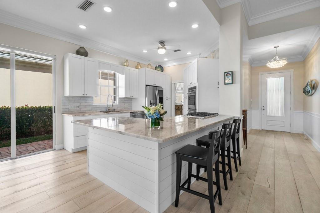 Experience the best of Florida living in this stunning, fully customized, poured concrete Oakmont home on one of the most sought-after streets in The Retreat at Seabranch. Meticulously appointed, this 3-bedroom, 3-bathroom, 2-car garage home was fully updated in 2022, blending elegance, comfort, and modern convenience.? Gourmet kitchen with custom cabinetry, marble countertops, Wolf appliances, including a double oven and 5-burner gas cooktop.