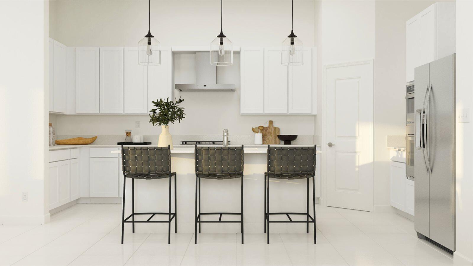 This two-story home delivers modern elegance and ample room to grow. Down the double-height foyer is a low-maintenance open design among the modern kitchen, dining room and living room, along with a covered terrace. In a private corner is the spacious owner's suite with an adjoining bathroom and oversized walk-in closet. Throughout the home is an upstairs game room ideal for entertaining, a two-car garage and four secondary bedrooms to provide residents and guests a restful retreat.Prices, dimensions and features may vary and are subject to change. Photos are for illustrative purposes only.
