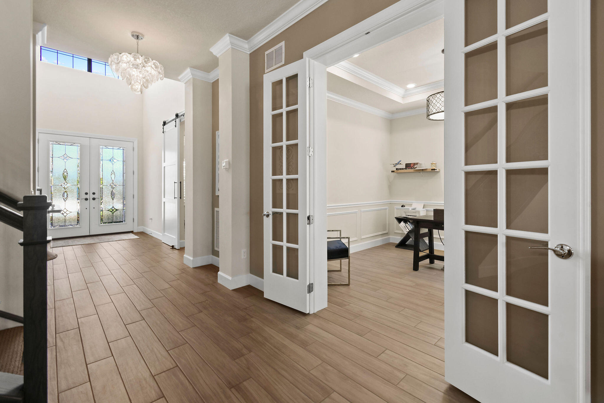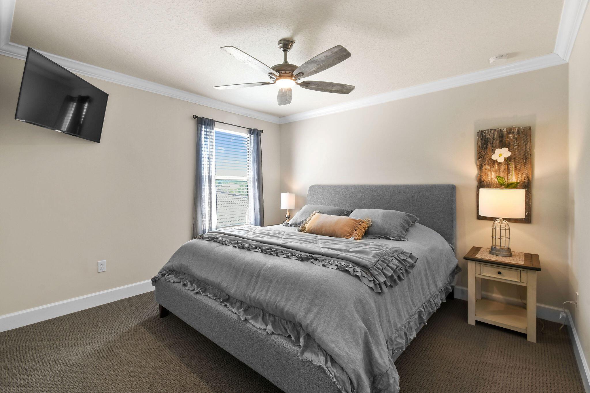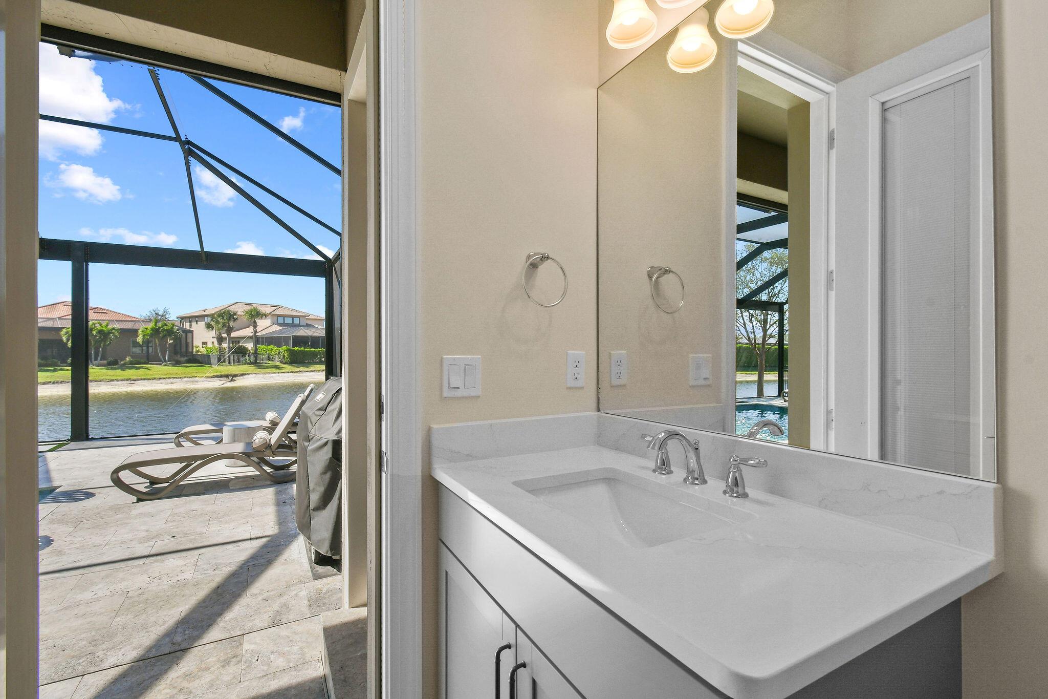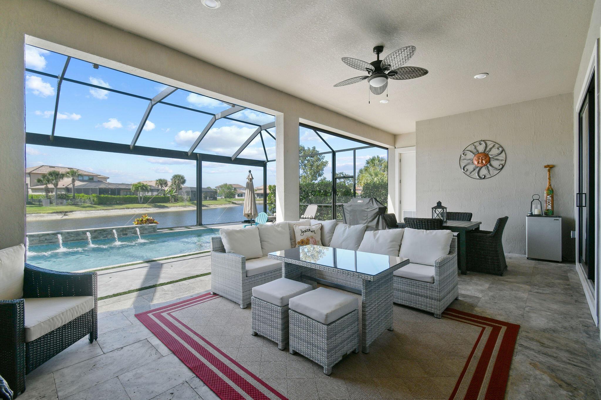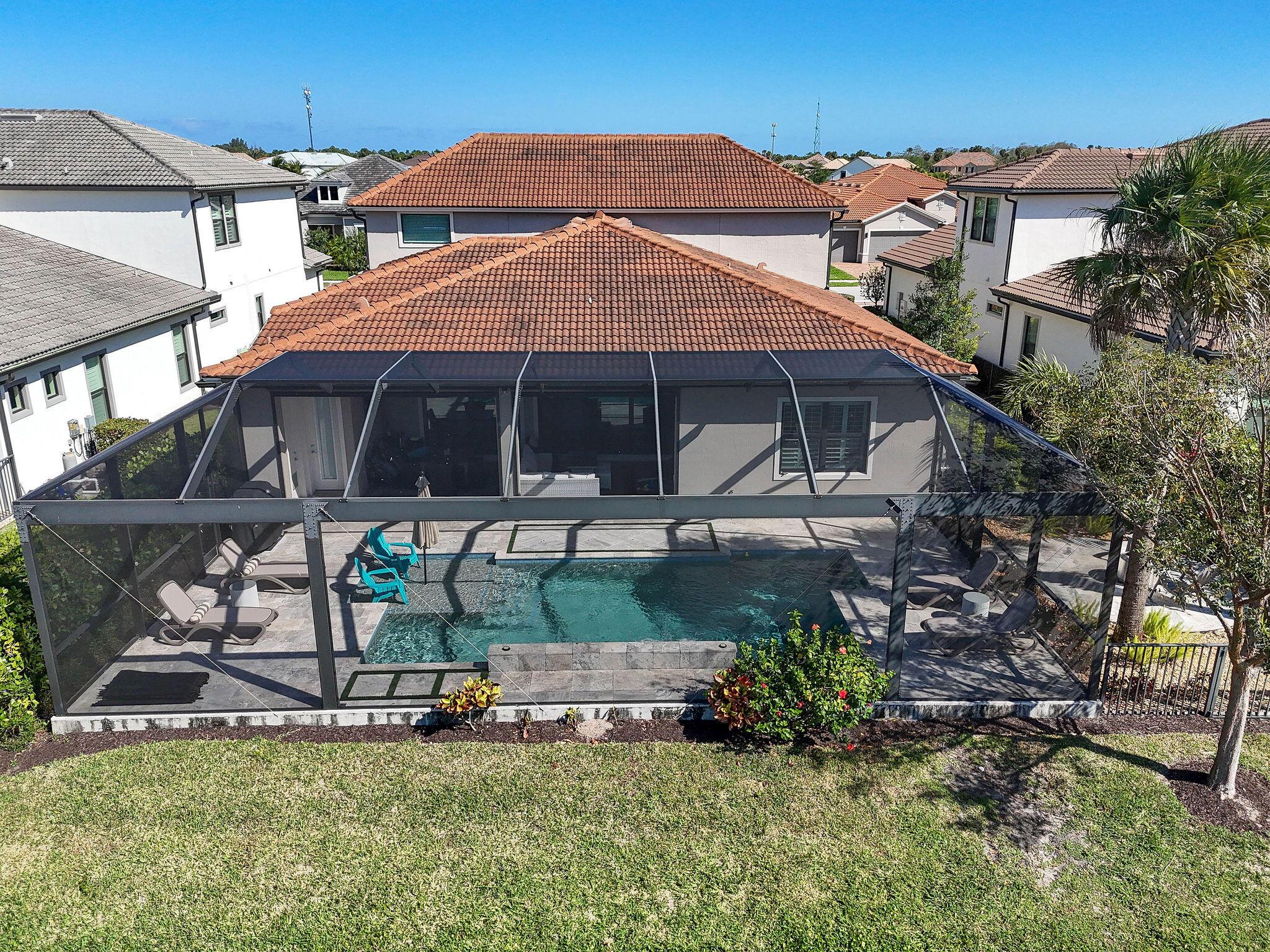 This stunning Stonewater Model in Sonoma Isles offers 4 Bedrooms, 4.5 baths, a private den/office, and a spacious loft with wet bar, offering the ideal layout for both relaxation and entertainment. Enjoy peaceful lake views from your premium lot, along with a new custom screened-in pool with waterfall and cabana bath for year-round living. The open floor plan has upgrade tile flooring on the first level, and plush carpeting in the loft area. The gourmet kitchen features quartz countertops, tile backsplashes, stainless appliances and high-end finishes. There are Impact windows and doors and a house generator. The master suite, office and 2 guest bedrooms are on the 1st floor, while the 4th guest bedroom suite with bath is tucked away off the loft. A 3-car garage provides ample storage.