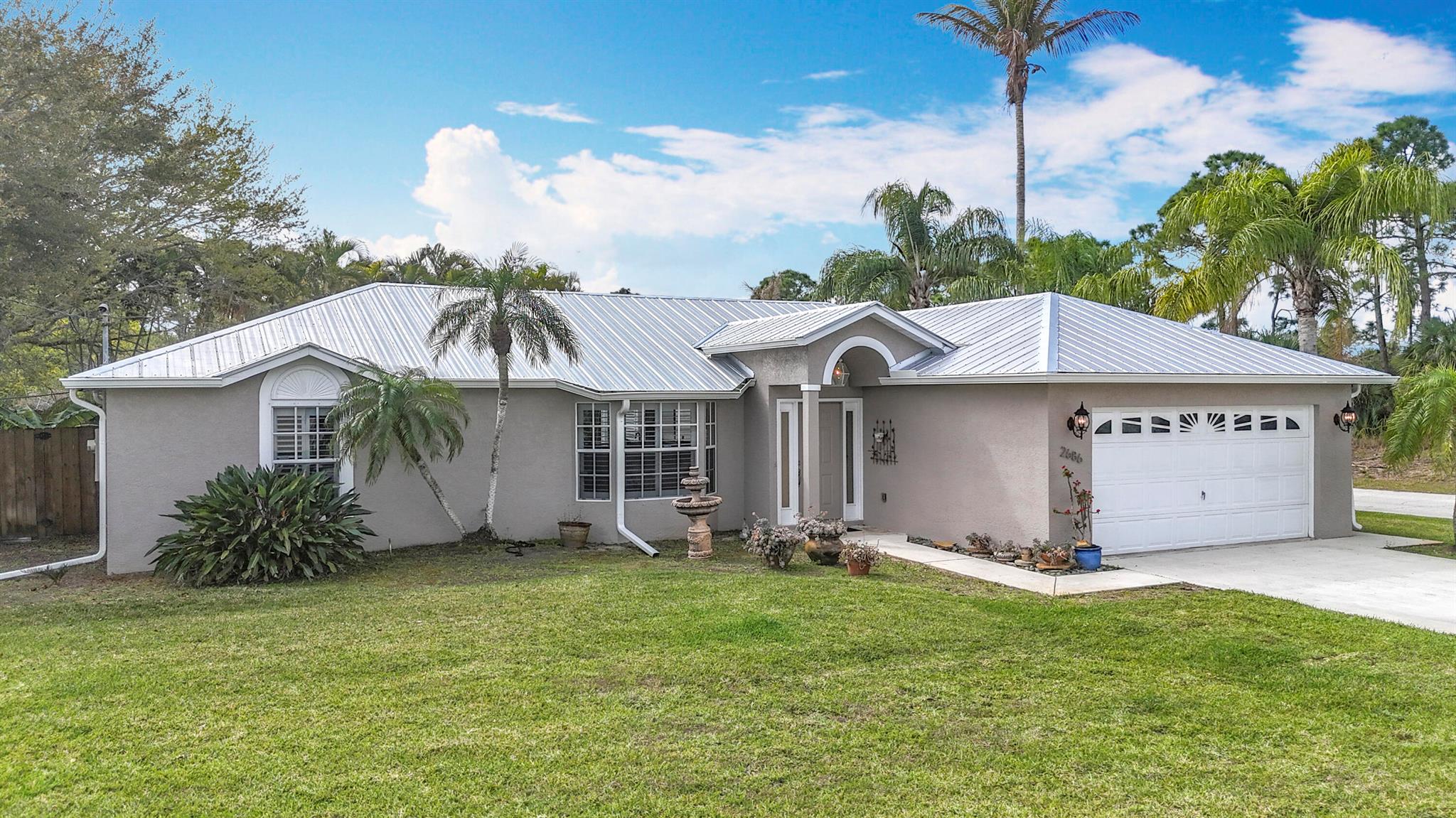 This beautifully updated home in a prime Port St. Lucie location Just 15 miles to Jensen Beach! offers charm, style, and durability. Featuring tile, engineered hardwood, and laminate flooring, it boasts elegant upgrades like 6-inch baseboards, crown molding throughout, and plantation shutters. The kitchen and bathrooms shine with granite countertops, while a spacious, fully fenced backyard includes a large 12' x 16' storage shed for added convenience. An exceptional highlight of this home is the expansive 13' x 36' air-conditioned and heated bonus room adjacent to the kitchen, perfect for a family room, home office, or entertainment space.