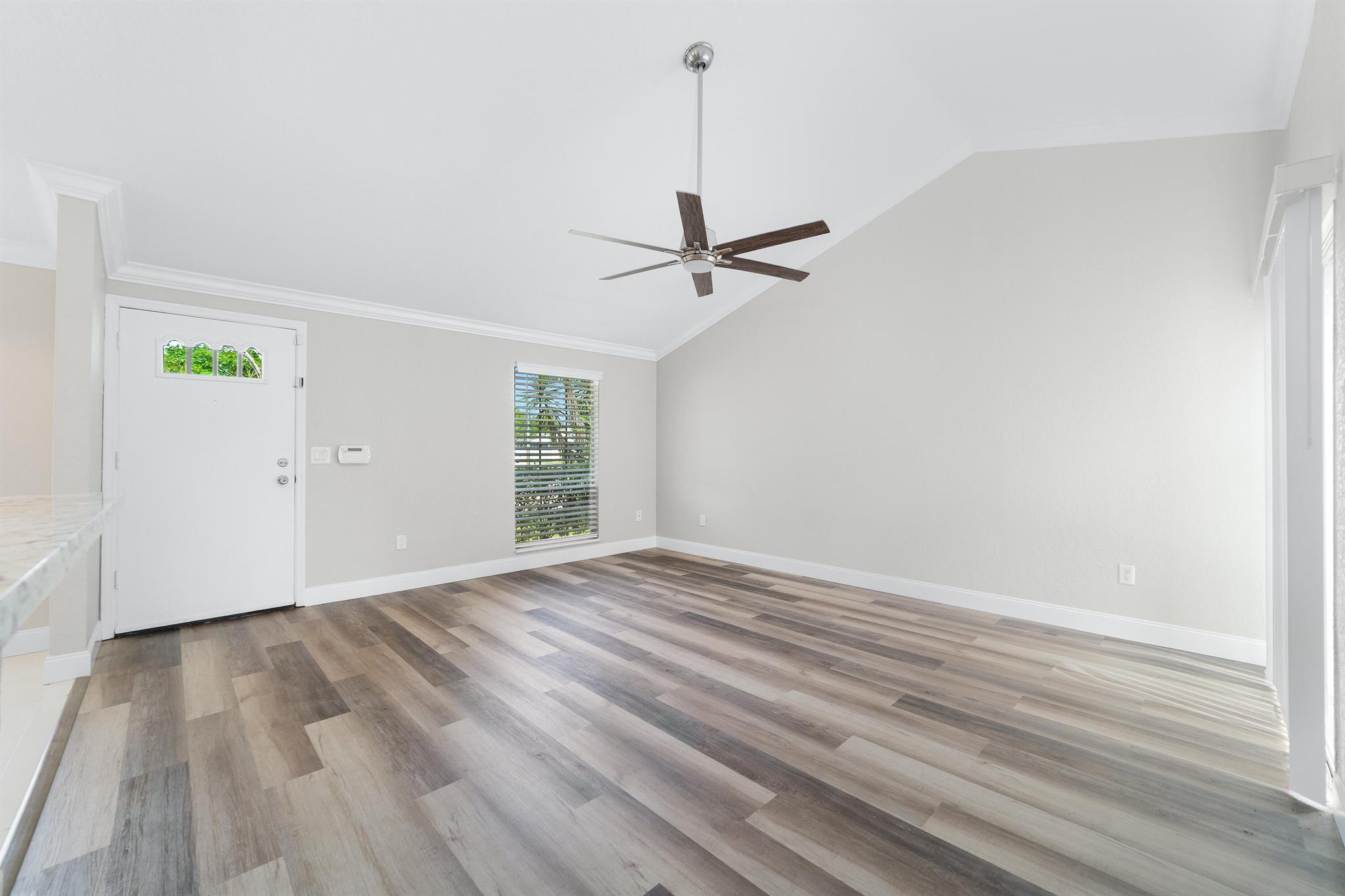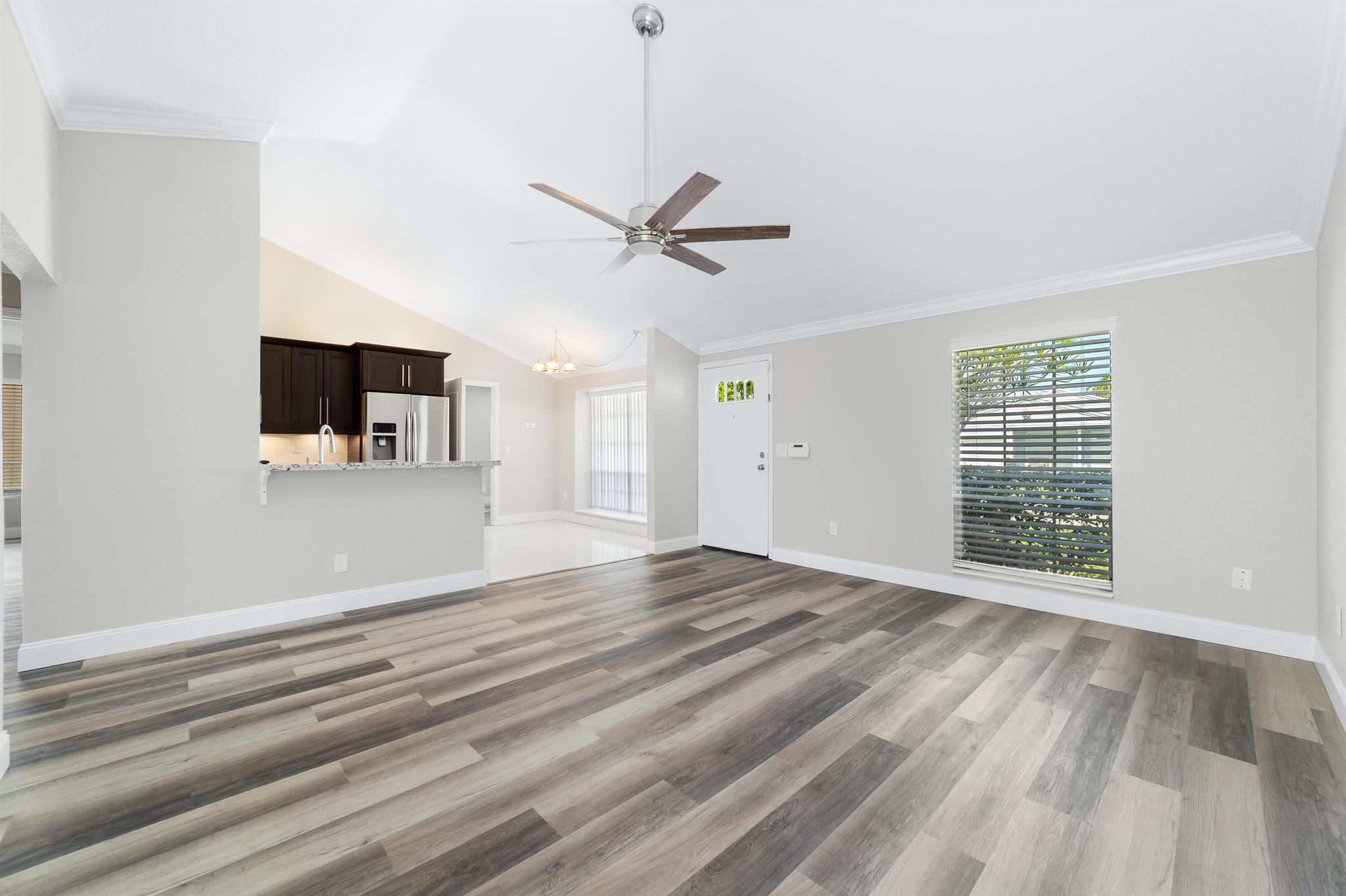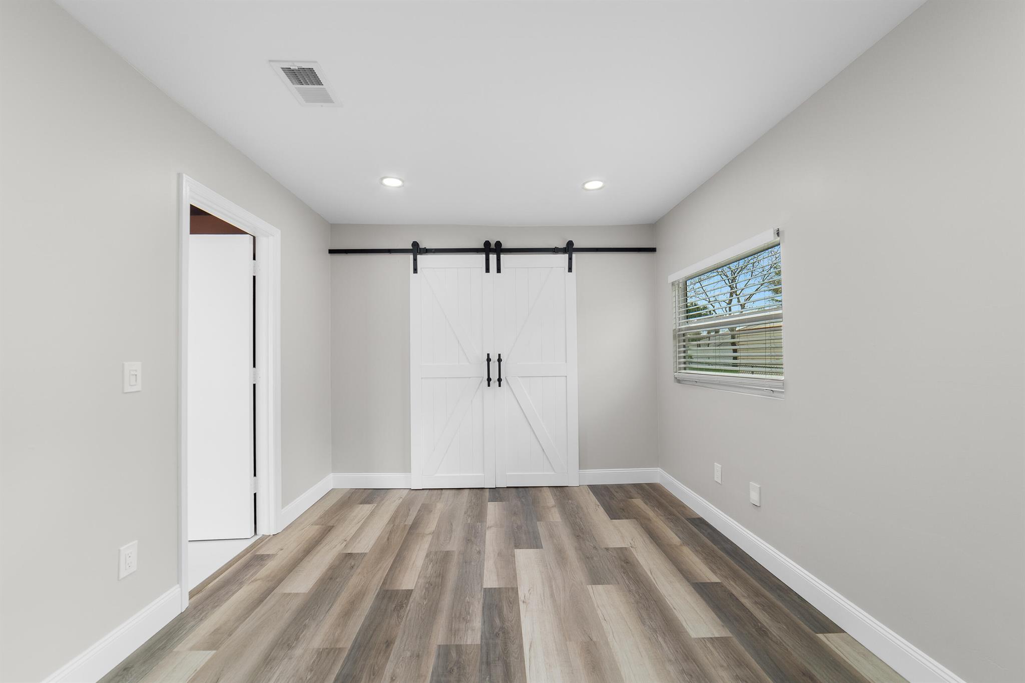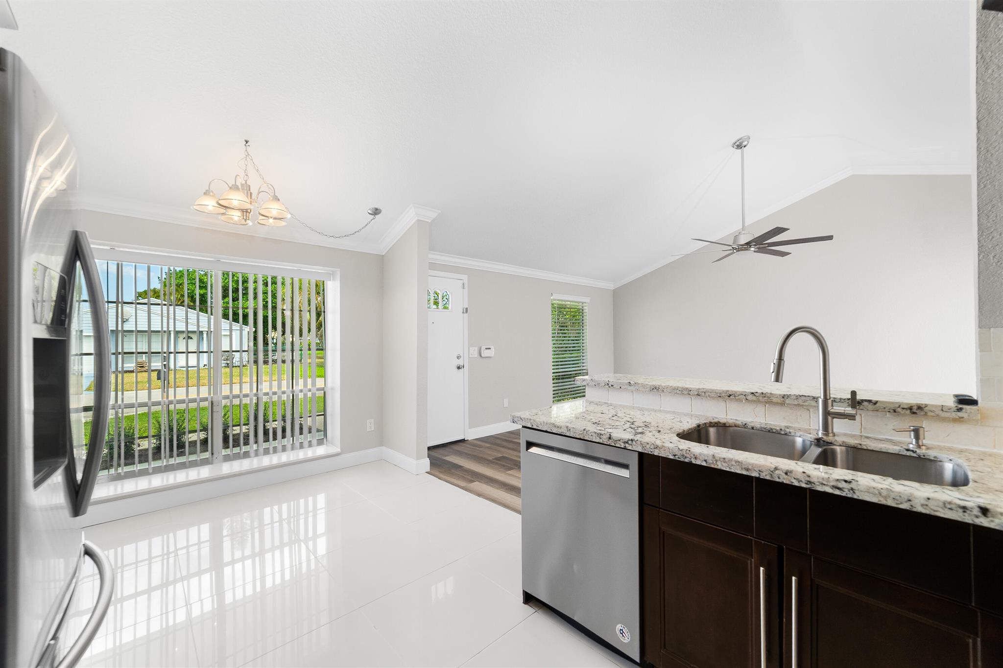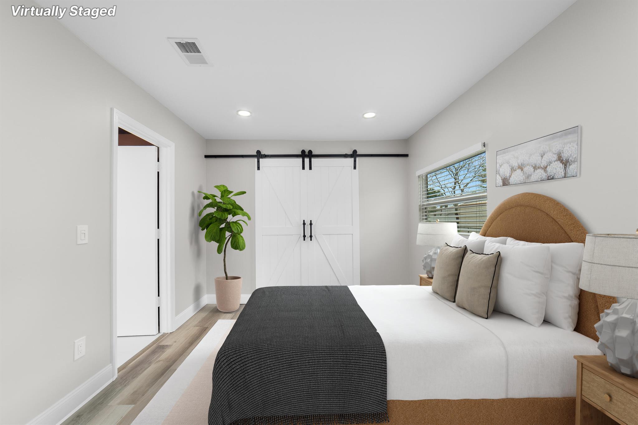 Stunning Move-In Ready Home with Modern Upgrades. This beautifully updated home offers brand-new flooring throughout, fresh paint, and updated landscaping, creating a bright and inviting atmosphere. The open-concept kitchen is a chef's delight, featuring cherry cabinetry, sleek granite countertops, stainless steel appliances, and elegant tile flooring. A spacious eat-in area with a large front-facing window floods the space with natural light, making it perfect for casual dining. Designed for comfort and functionality, this home boasts neutral tones, spacious closets in every room, blinds on all windows, and ceiling fans in all bedrooms. The modern, updated bathrooms add a touch of luxury, while a charming barn door leads to the dedicated storage and laundry area
