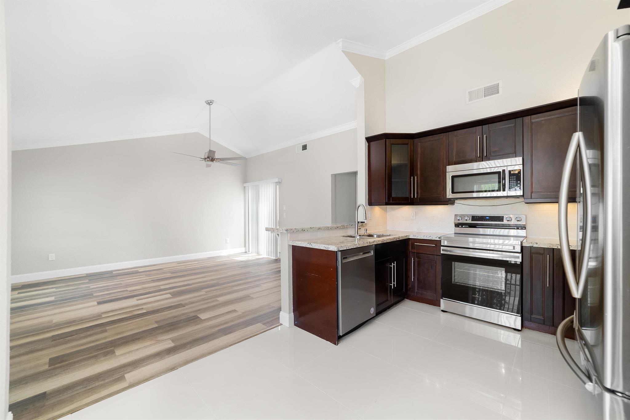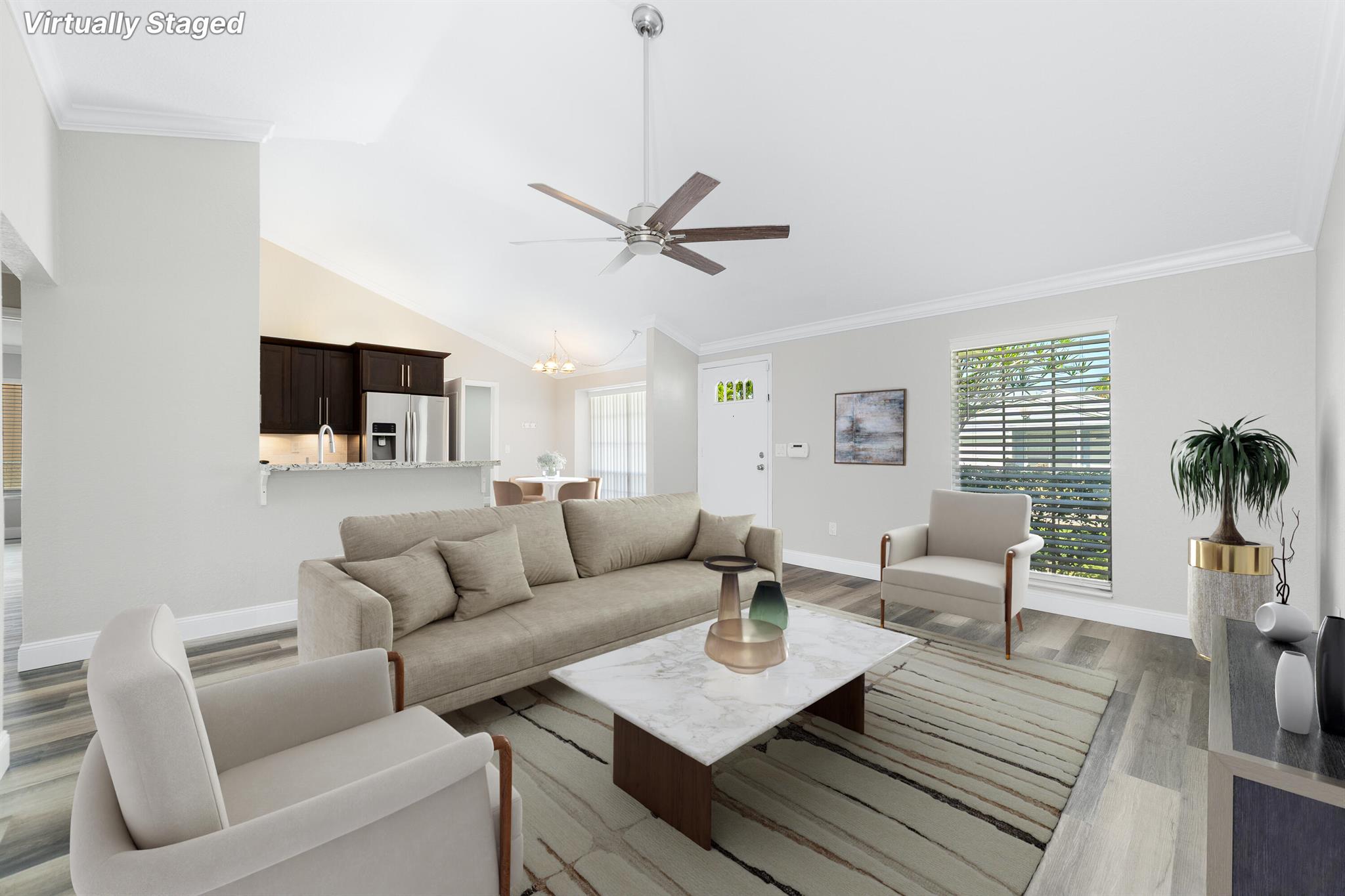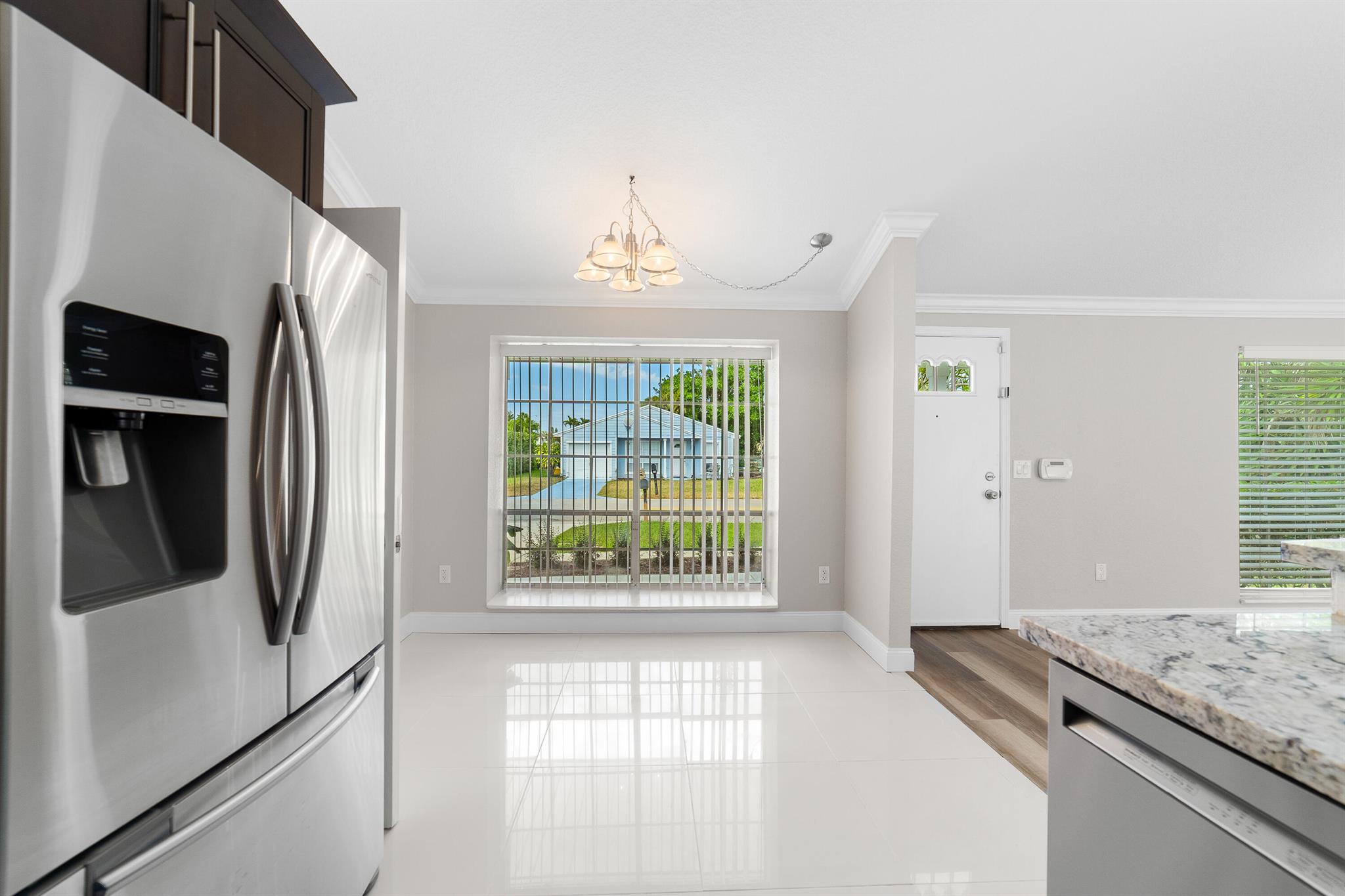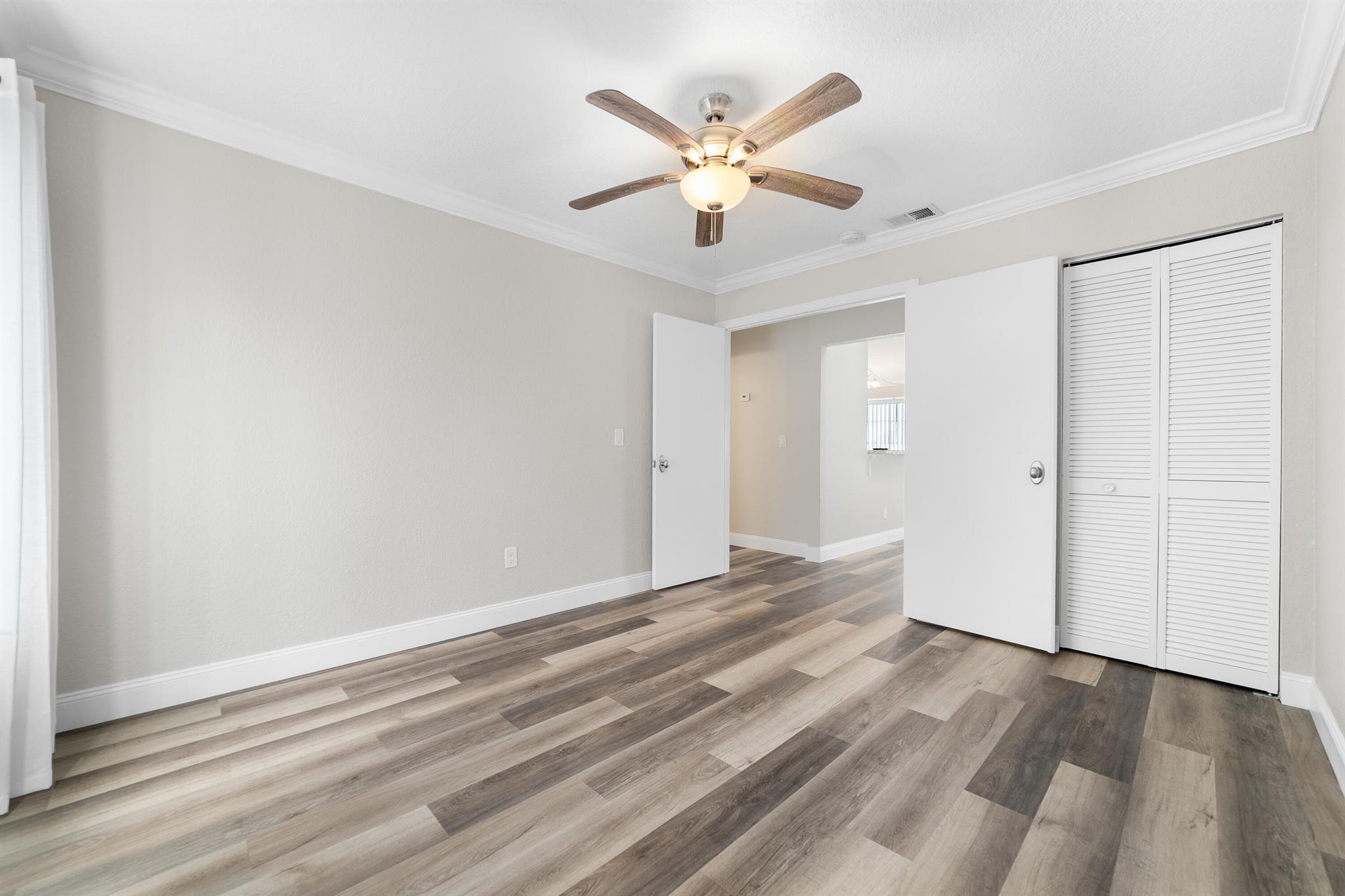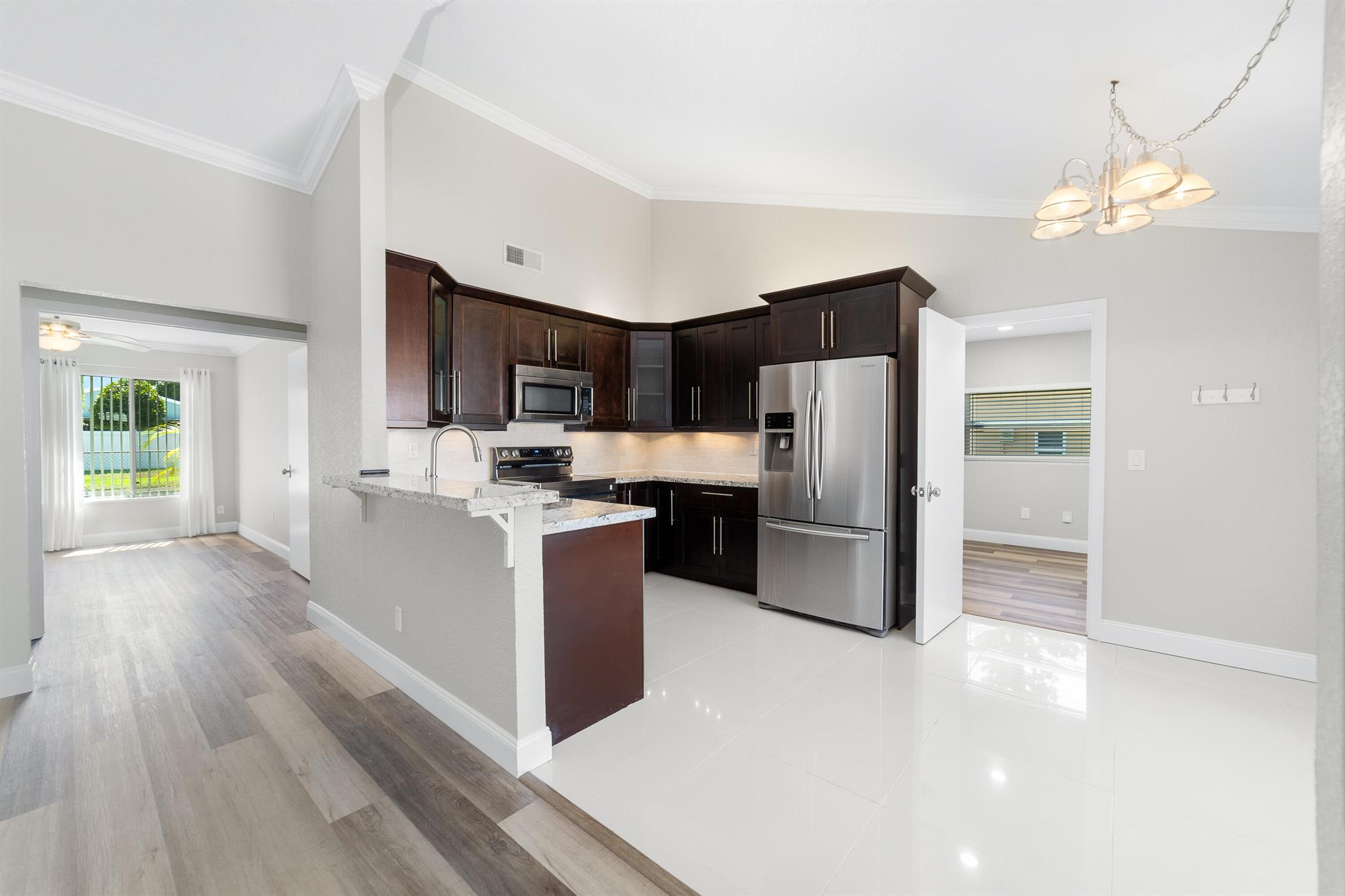 Stunning Move-In Ready Home with Modern Upgrades. This beautifully updated home offers brand-new flooring throughout, fresh paint, and updated landscaping, creating a bright and inviting atmosphere. The open-concept kitchen is a chef's delight, featuring cherry cabinetry, sleek granite countertops, stainless steel appliances, and elegant tile flooring. A spacious eat-in area with a large front-facing window floods the space with natural light, making it perfect for casual dining. Designed for comfort and functionality, this home boasts neutral tones, spacious closets in every room, blinds on all windows, and ceiling fans in all bedrooms. The modern, updated bathrooms add a touch of luxury, while a charming barn door leads to the dedicated storage and laundry area