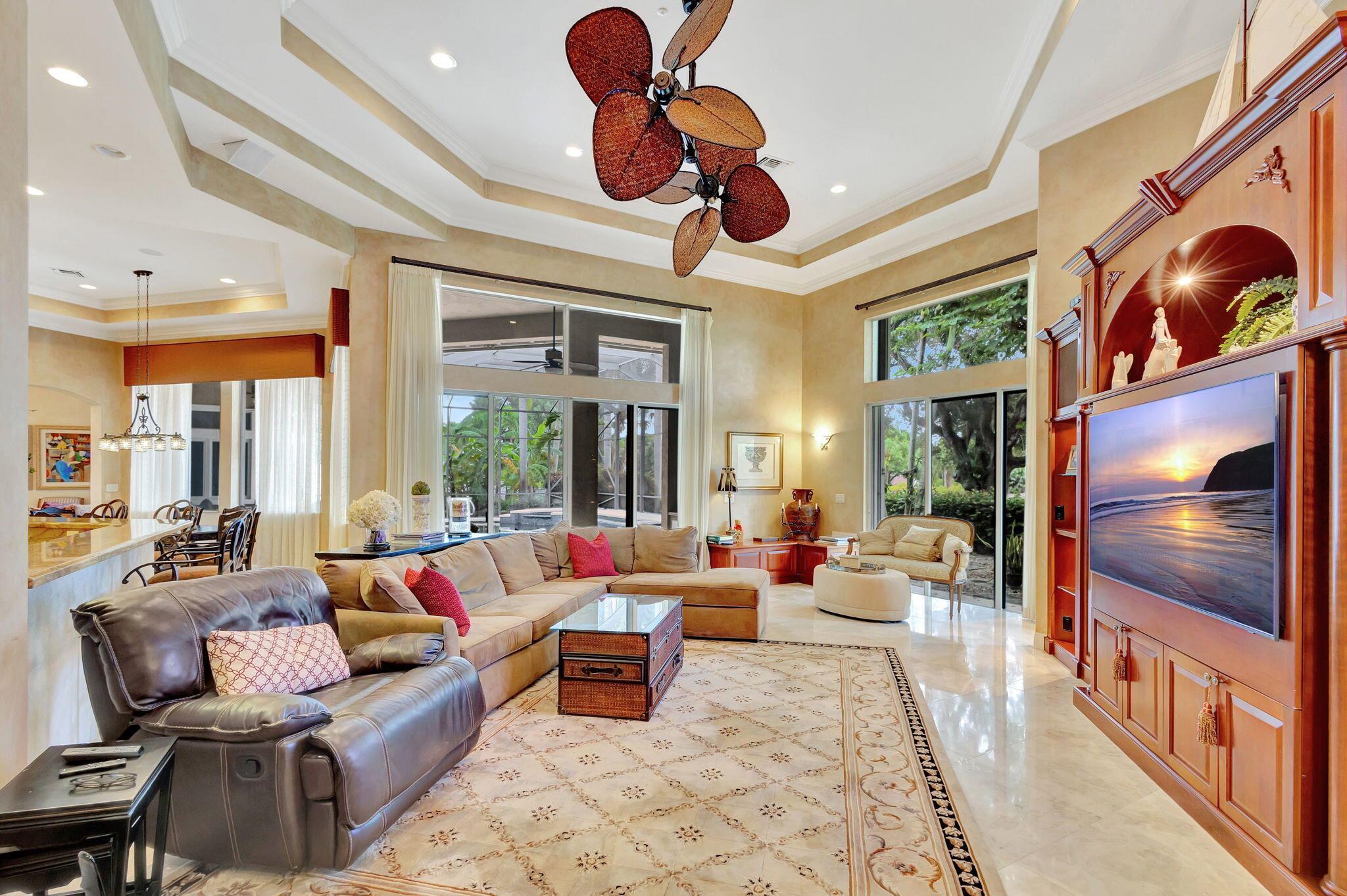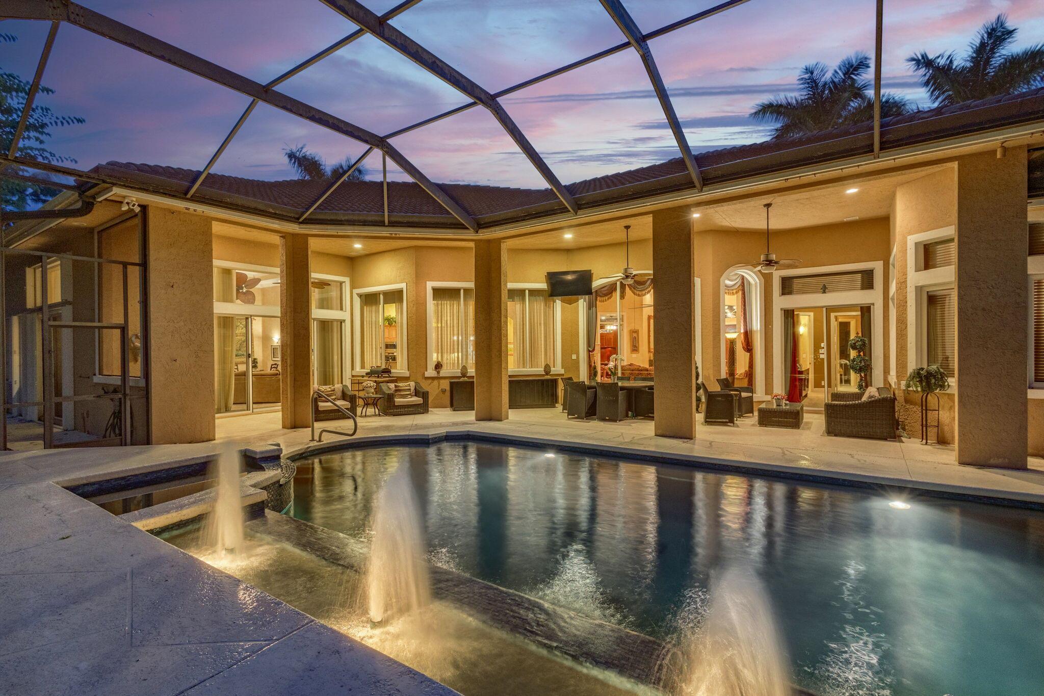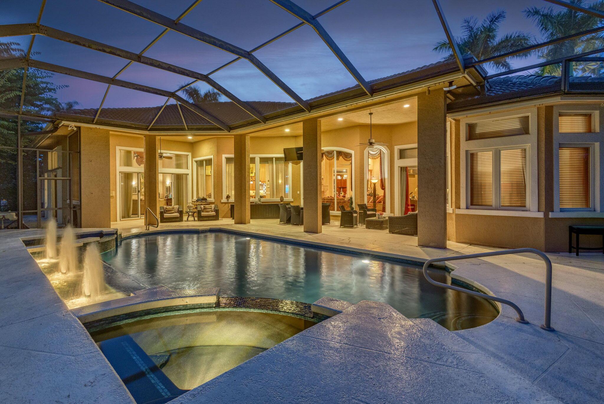 Exceptional estate pool home privately nestled on the 17th hole of Bear Lakes Country Club Lakes Golf Course! This sprawling residence features 5 bedrooms plus office and den/loft, 5 full bathrooms and 2 half baths, 3 car garage with circular driveway, formal living and dining rooms, family room, and summer kitchen. With 5,500 SF of living area, this picturesque home is meticulously maintained and sits on an expansive .42 acre golf course lot surrounded by lush tropical landscaped grounds. Impressive upon entry, this majestic home is adorned with soaring ceilings, beautiful marble flooring, crown molding, elegant built-in fireplace, formal dining room, and grand office with custom built-ins and obscure ''secret'' room - perfect for wine room or storage of valuables.
