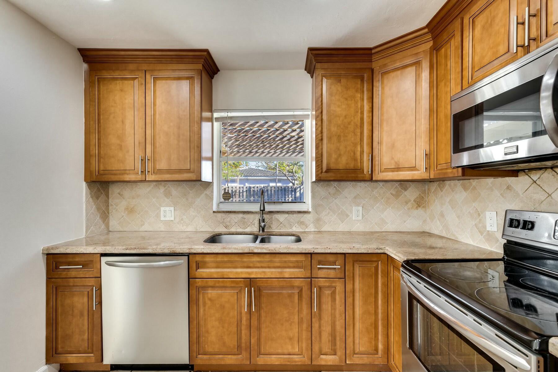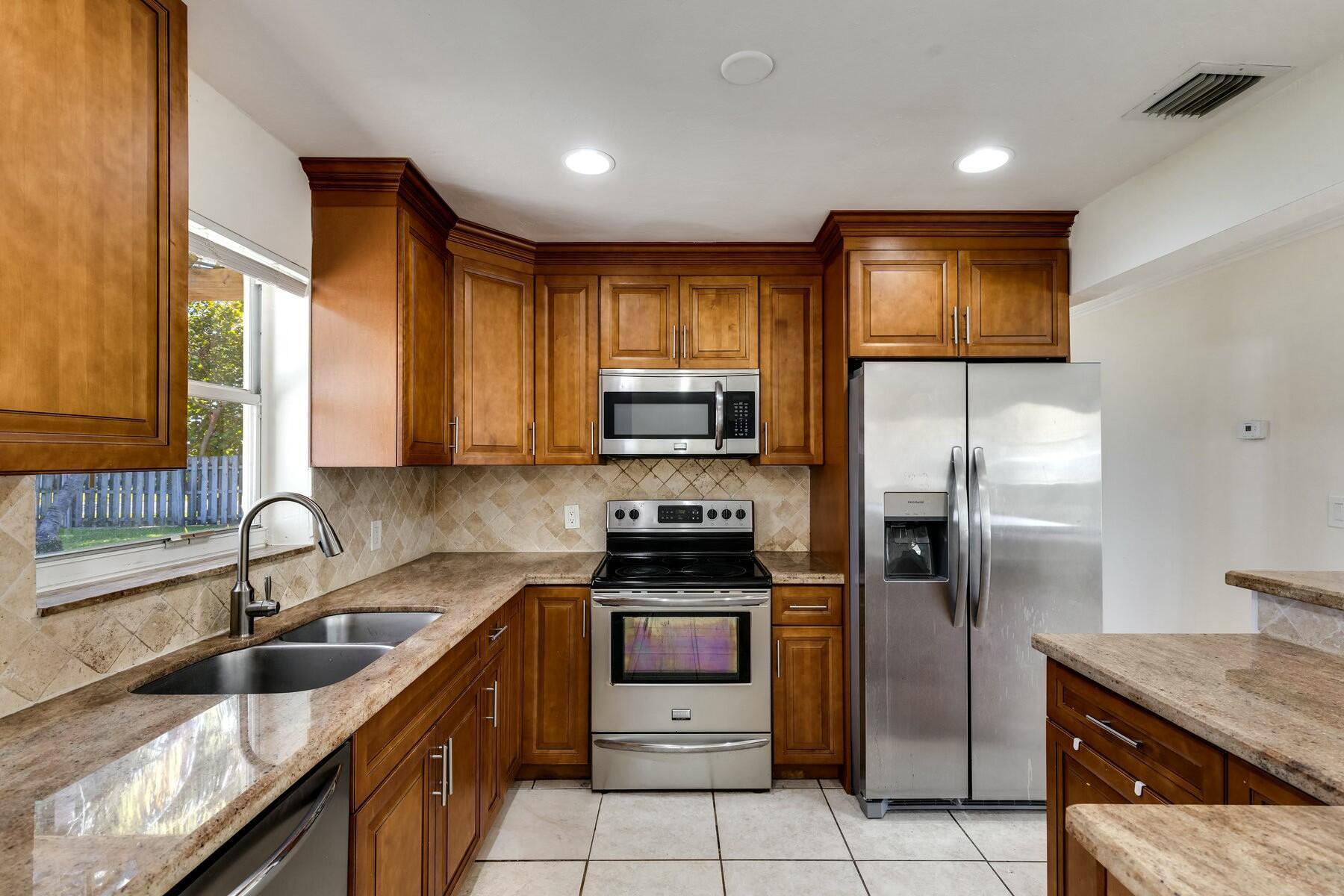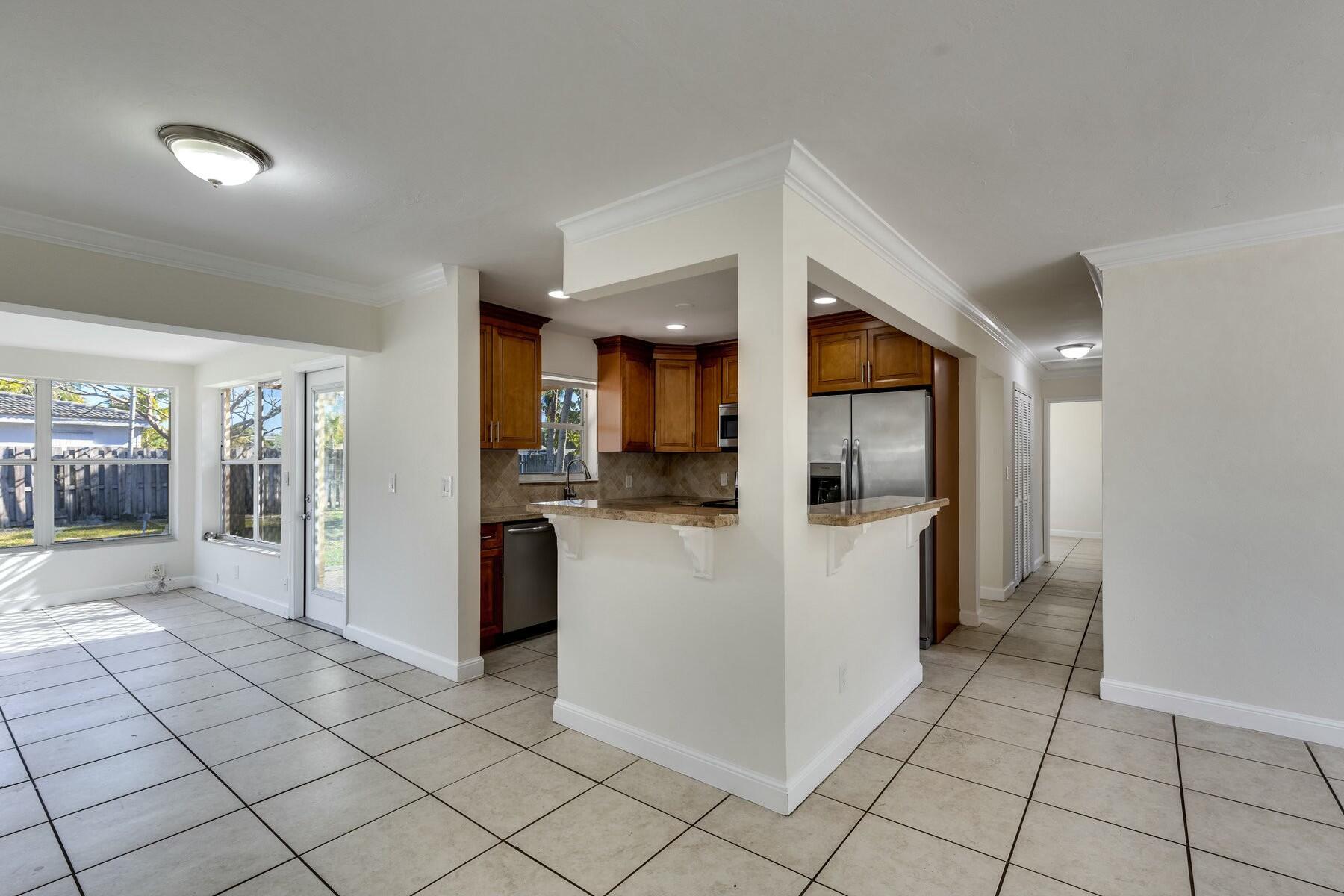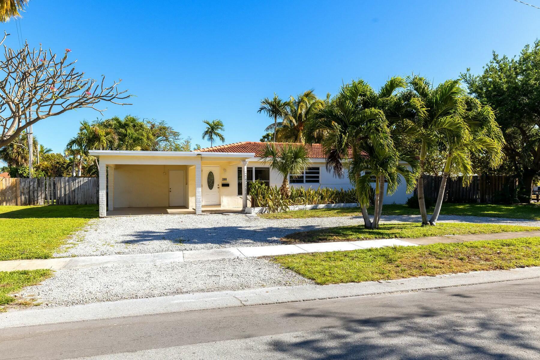 Wonderful 4-bed, 2-bath home in East Boca Raton sits on an oversized 1/4+ acre corner lot with plenty of space for a pool and more. Inside was fully renovated only a few years ago with tile floors, a beautiful wood kitchen with granite counters and stainless steel appliances, plus great natural light and privacy. The home also features an oversized carport and separate laundry room. Near FAU, shopping, dining, and beaches--don't miss this opportunity!