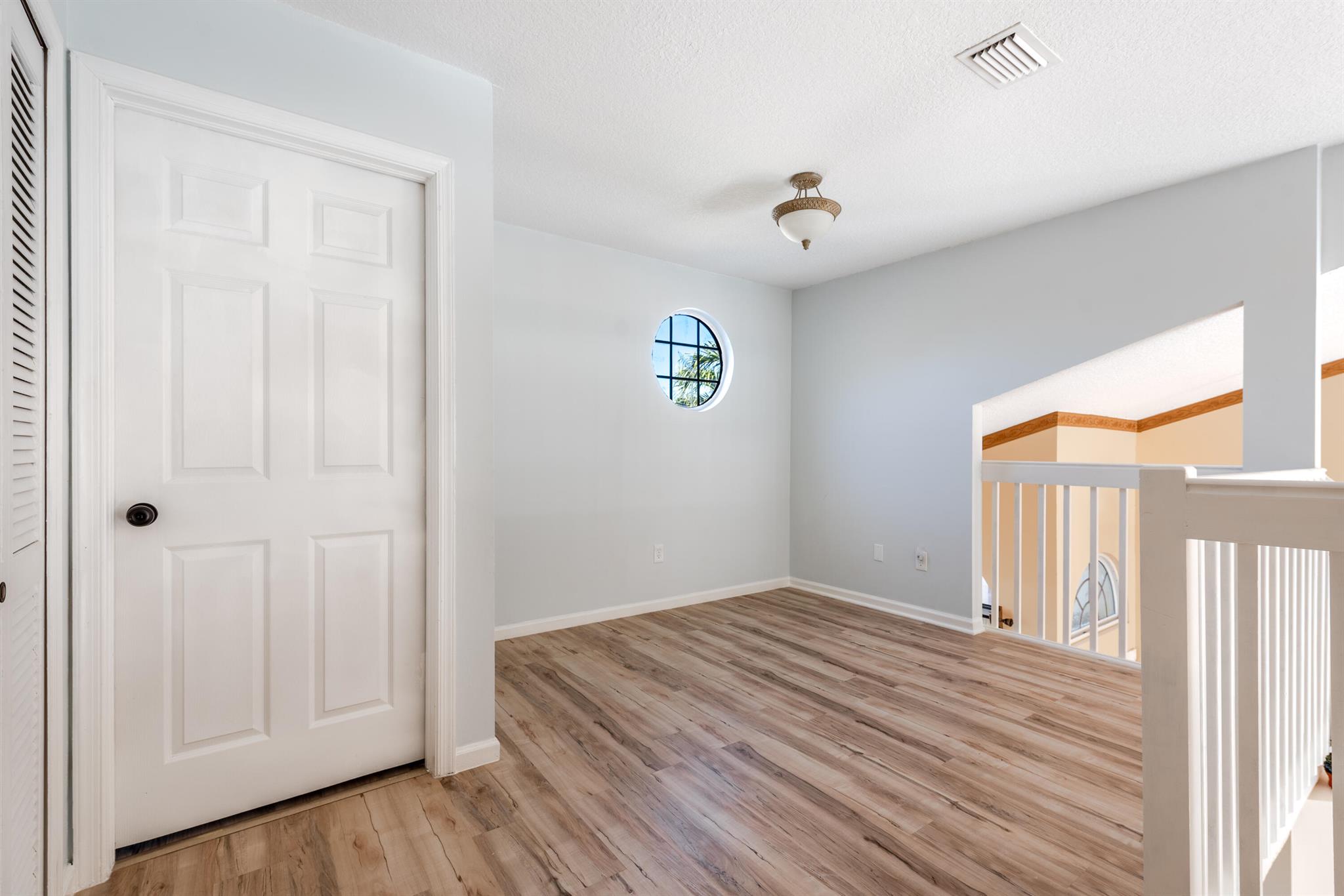 Meet your next home! Located in the sought after gated community of Meadowland Cove. This great property features primary suite on first level, 2 other bedrooms in the second floor and an open loft to be used as a seating area, office, exercise room or whatever your imagination can take you. Lots of closet space and storing opportunities including walk in closets. Nice kitchen with white cabinetry, quartz counter tops and all newer SS appliances. Luxury vinyl flooring throughout except kitchen which is tiled. The outdoors will become your ''day-end oasis'', with a nice size pool - new diamond bright in 2024, a gazebo for dining al fresco, paver backyard and a newer shed to accommodate most of your ''extras''