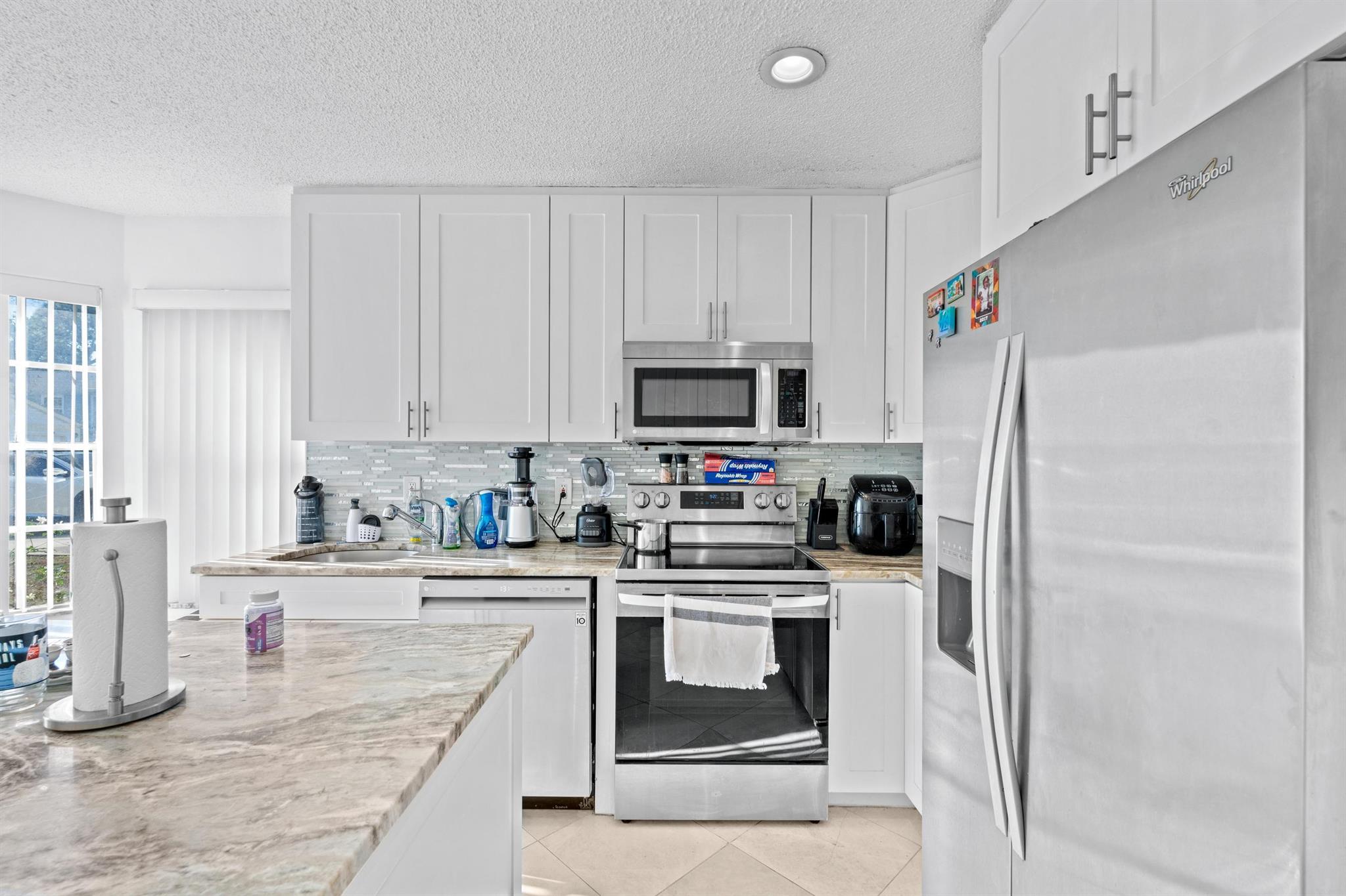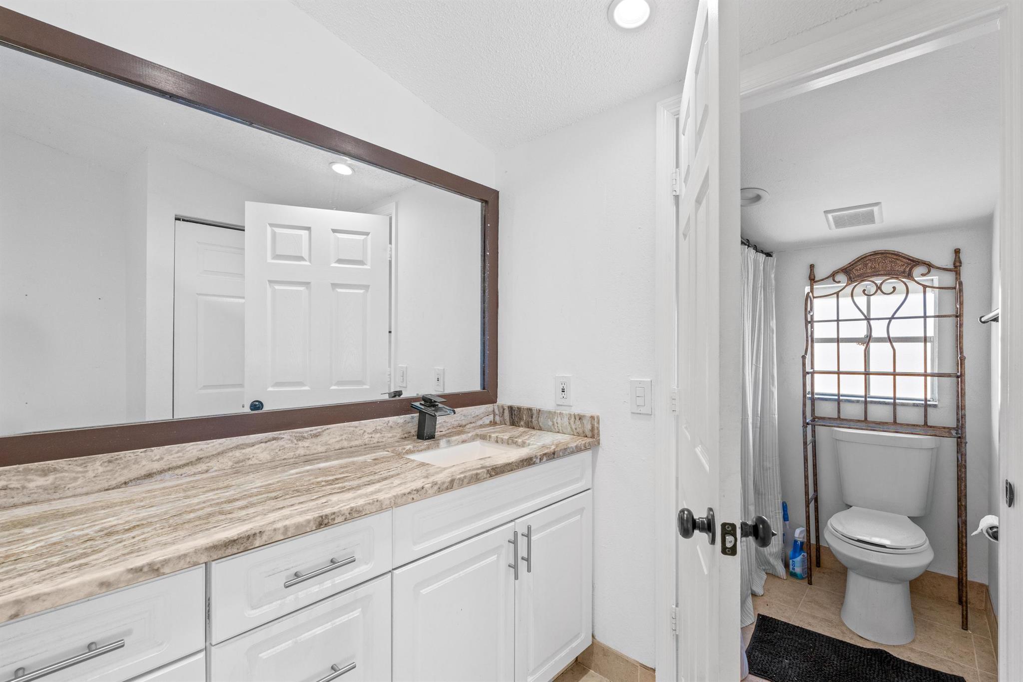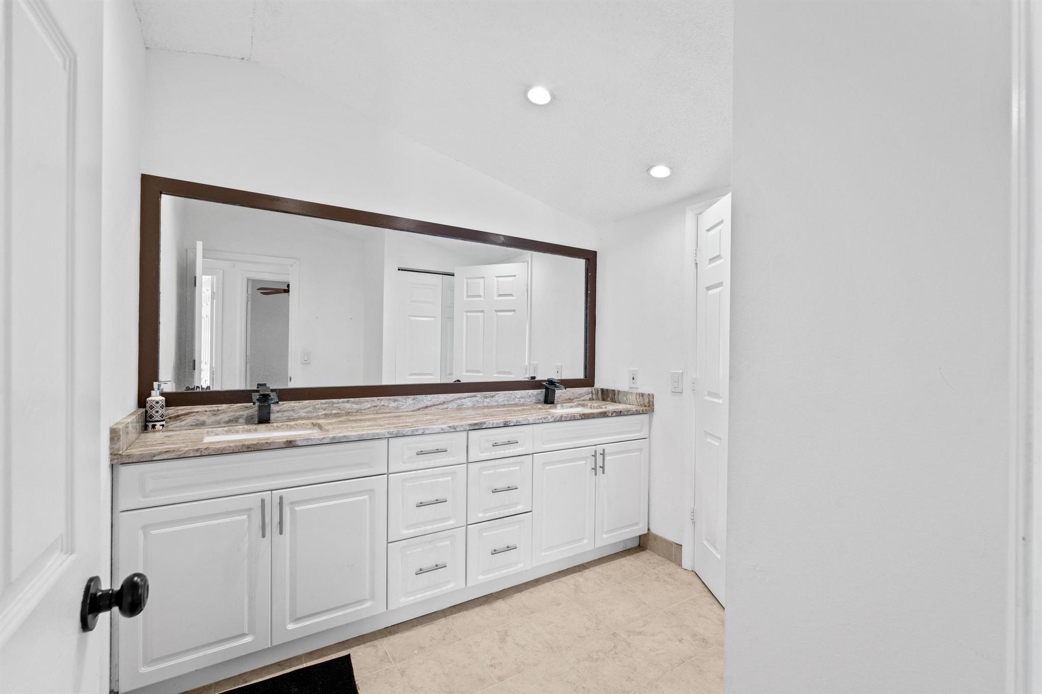 LOW HOA!! Welcome to this beautifully designed 4-bedroom, 2.1-bath, 2 car garage home. Boasting over 2,000 sq ft under air, this property offers a spacious MASTER SUITE ON THE PRIMARY FLOOR, along with a secondary bedroom and bathroom perfect for guests. Upstairs you will find another two spacious bedrooms along with a convenient full bath. Beautifully updated kitchen offers white cabinets, granite countertops, and a full kitchen island. Enjoy your fully fenced backyard and your screened in patio perfect for grilling. Nestled in a guard gated community for ultimate peace of mind, you can take advantage of the community pool and parks. Schedule your private tour today!