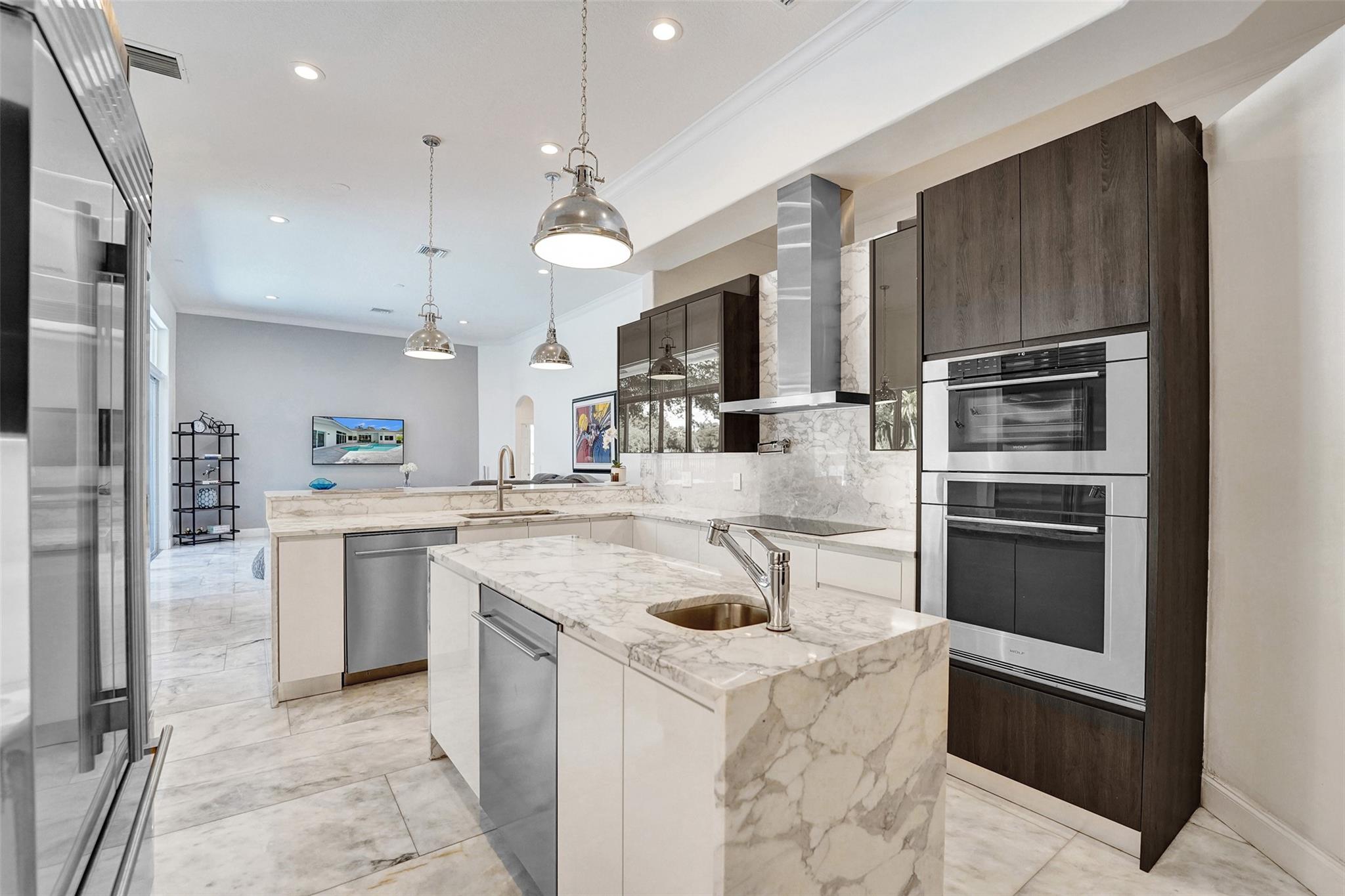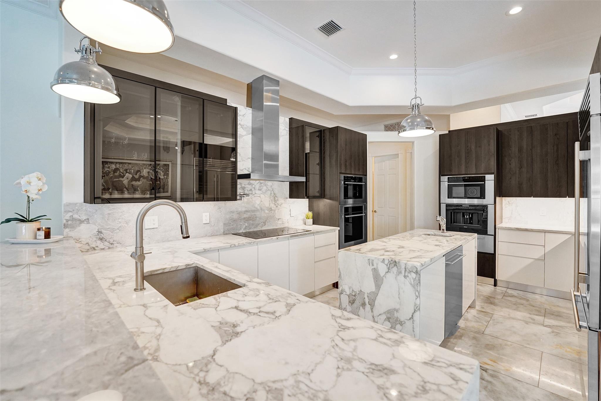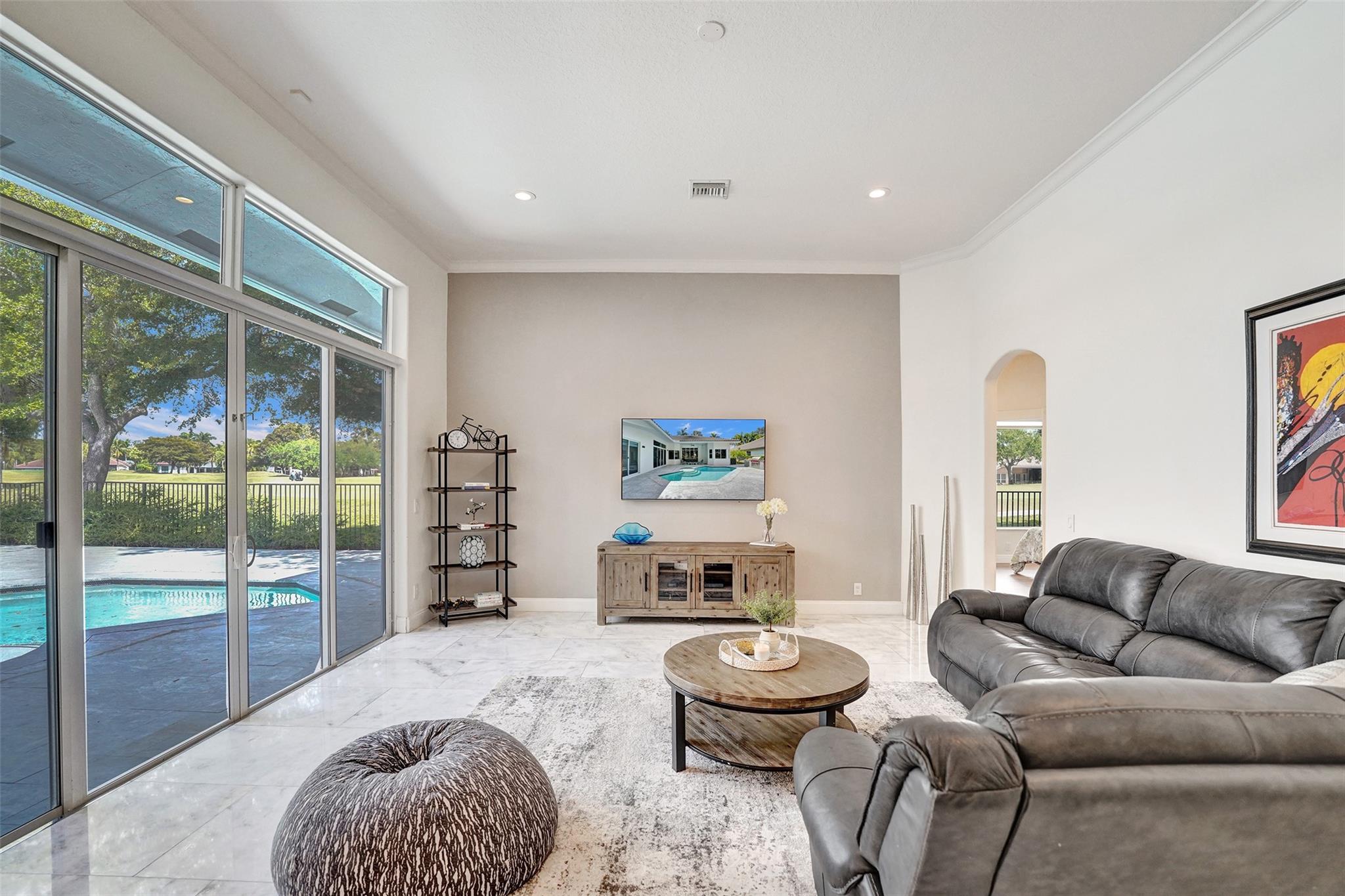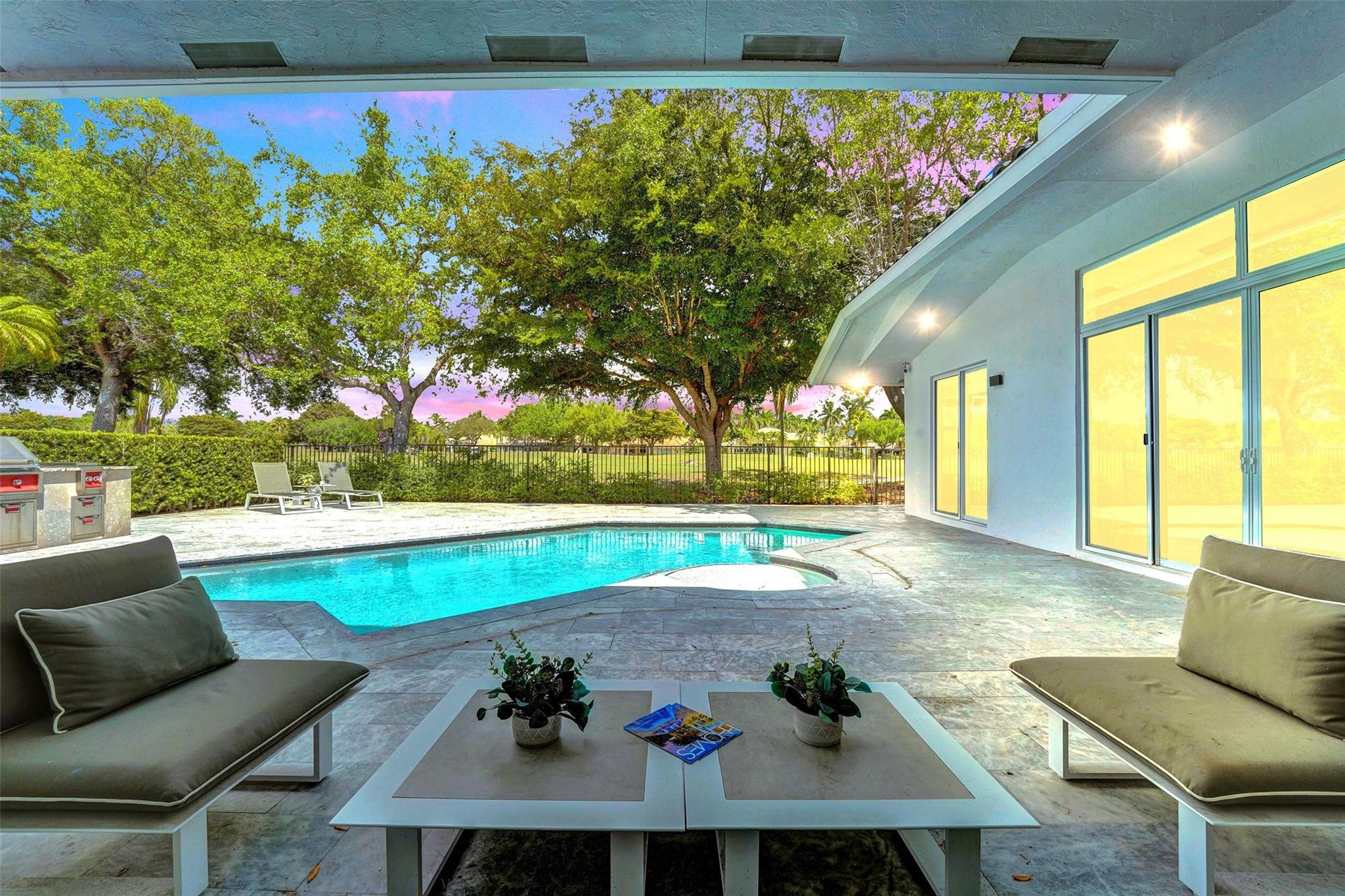 Modern elegance defines this SPECTACULAR 6BD+DEN, 4.5BA, 3CG residence, situated on a picturesque GOLF course lot in Weston Hills, w/ fully fenced yard w/new travertine pool deck, summer BBQ kitchen & play area! Approx 4000SF, TOTALLY RENOVATED FROM TOP TO BOTTOM, with NEW ROOF 2021, ALL IMPACT GLASS, stunning CHEFS' KITCHEN w/Italian cabs/hood, Subzero/Wolf appliances, steam & speed oven, food warmer, dual dishwasher, veggie sink, coffee maker, wine & beverage cooler & showpiece bar! ALL NEWER Italian/Quartzite bathrooms, 24x48 white marble flooring, custom closets, 2020 water heater. 2024 UPDATES incl NEW pool pump, driveway & garage slat wall system. All NEW landscape & entire exterior painted 2023. Whether a golf lover or seeking top-rated schools, welcome to the best of S. Fl living!