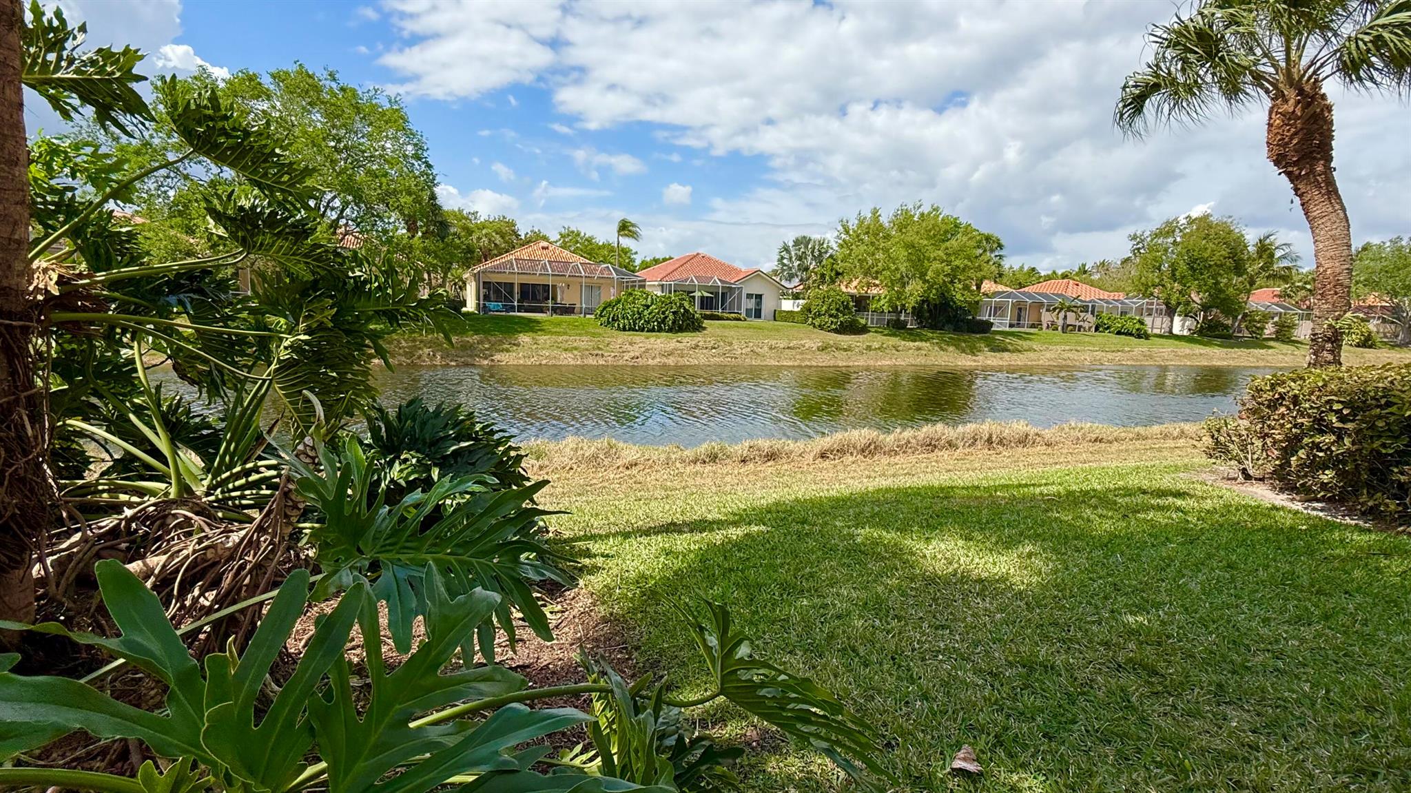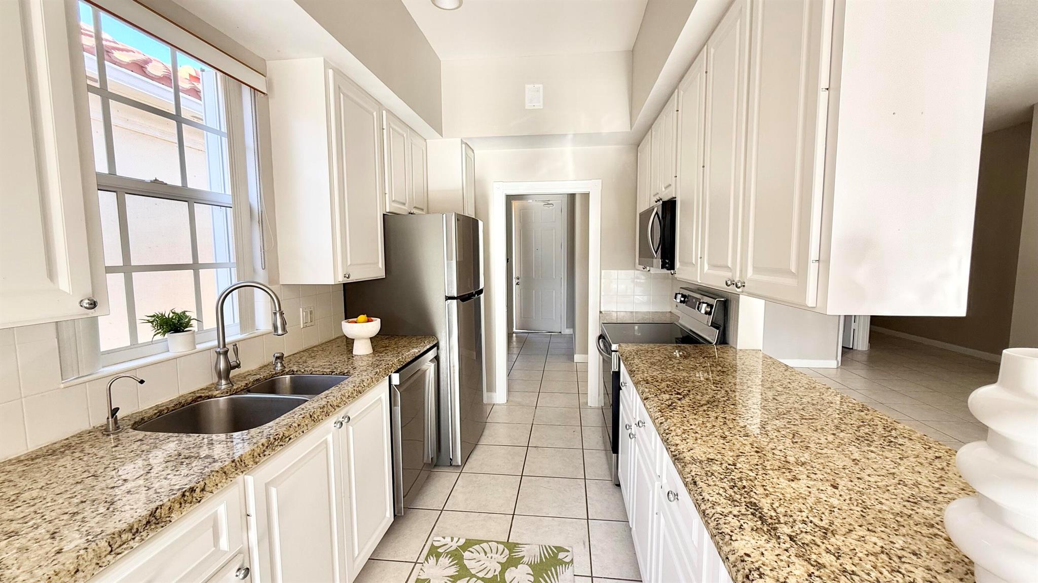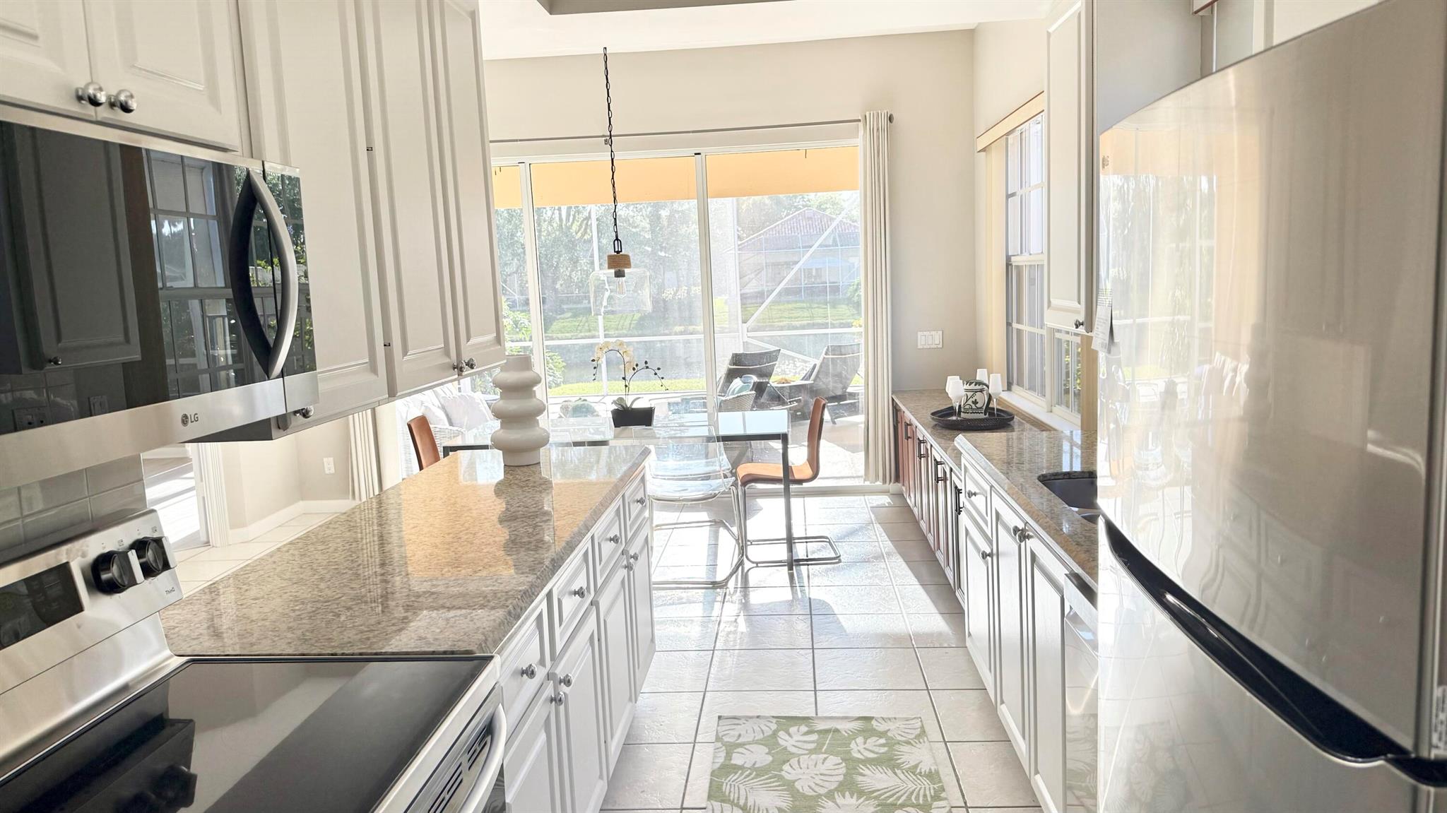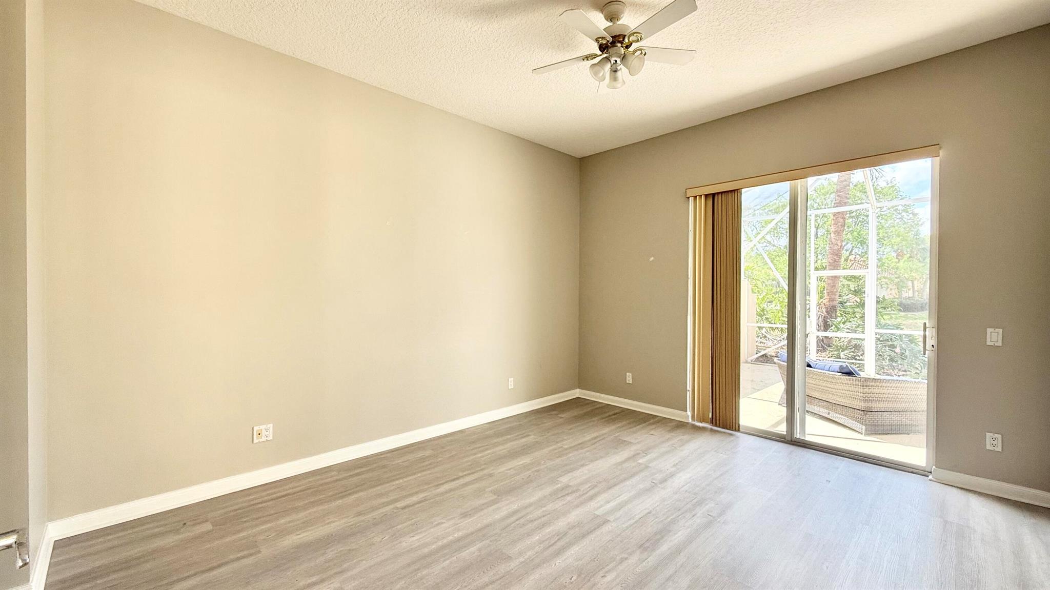 A rare find!! Single family home in RiverWalk for under $500K!! BRAND NEW STAINLESS APPLIANCES! Ceramic tile in the main areas and all bedrooms have new luxury plank vinyl flooring. Ten foot ceilings throughout, the open floor plan has a great flow and is perfect for entertaining. The huge screened enclosed patio and lanai offers so many opportunities for outdoor living and overlooks the tranquil lake with an abundance of natural beauty and wildlife. The side fenced ''courtyard'' is a perfect spot for a barbecue and outdoor kitchen set up, or doggy run! The principal bedroom has sliders that lead to the outdoor patio, also an en suite bathroom with two large closets and a linen closet. The guest bedrooms are at the opposite end of the home sharing a bathroom with tub/shower combo.