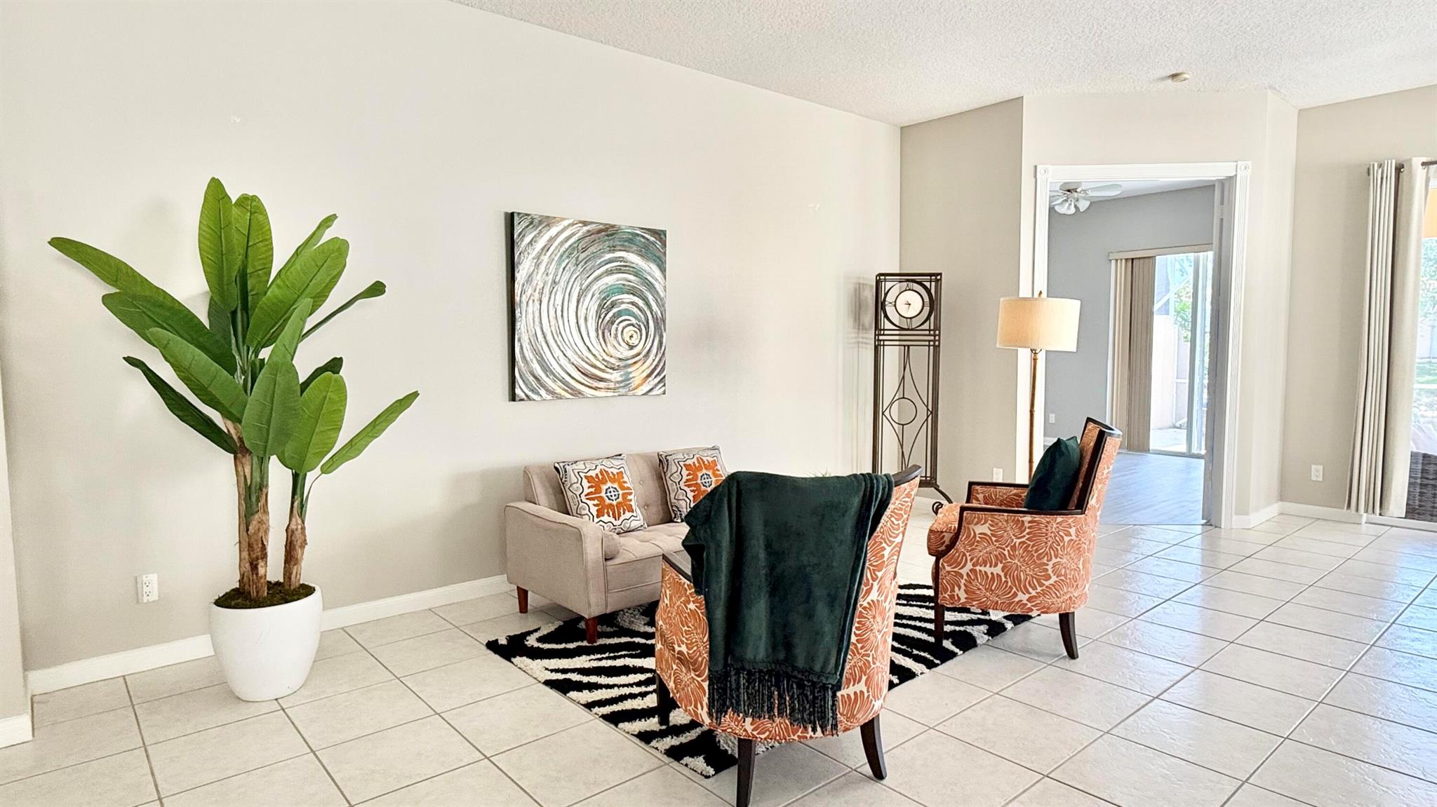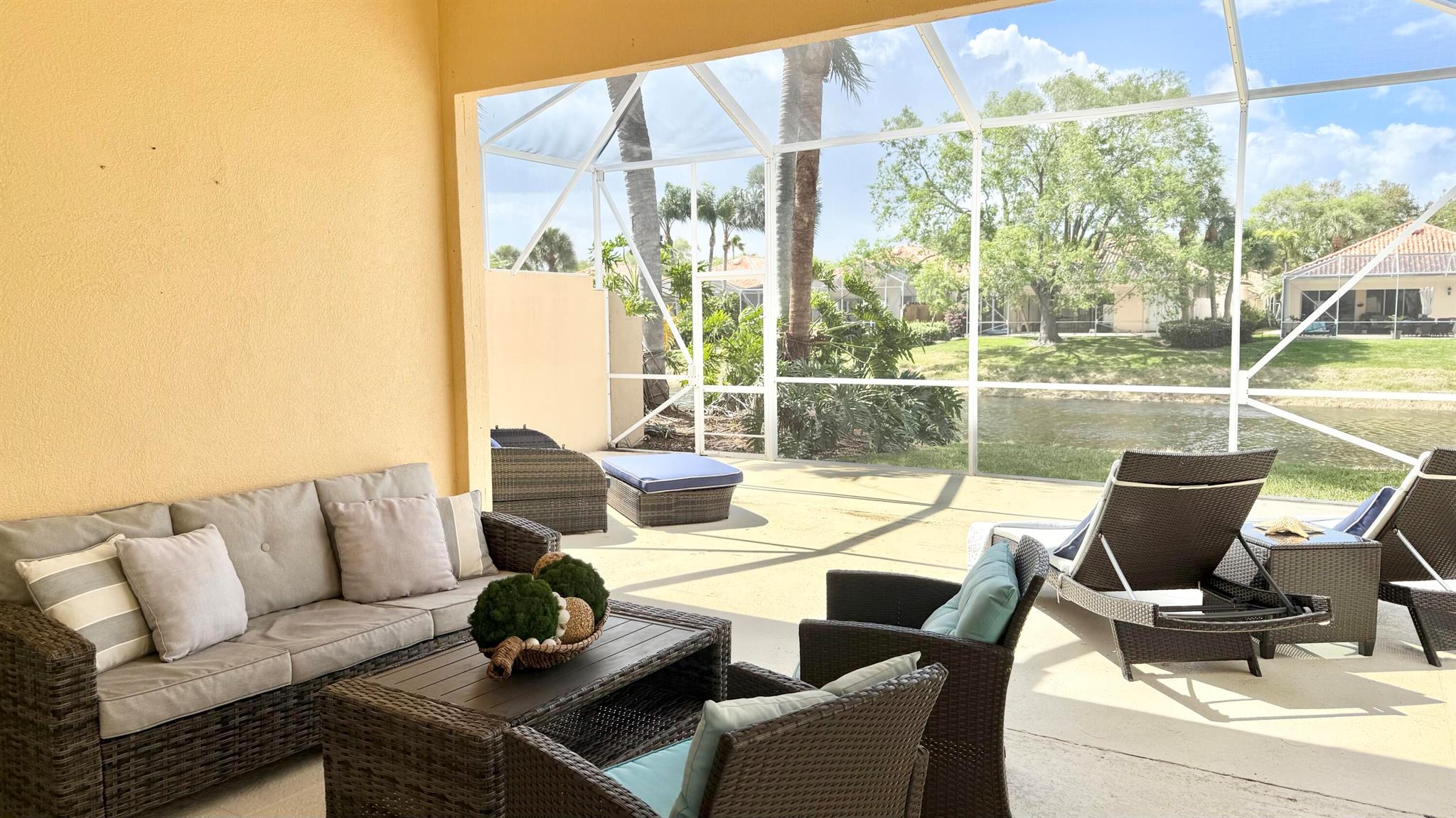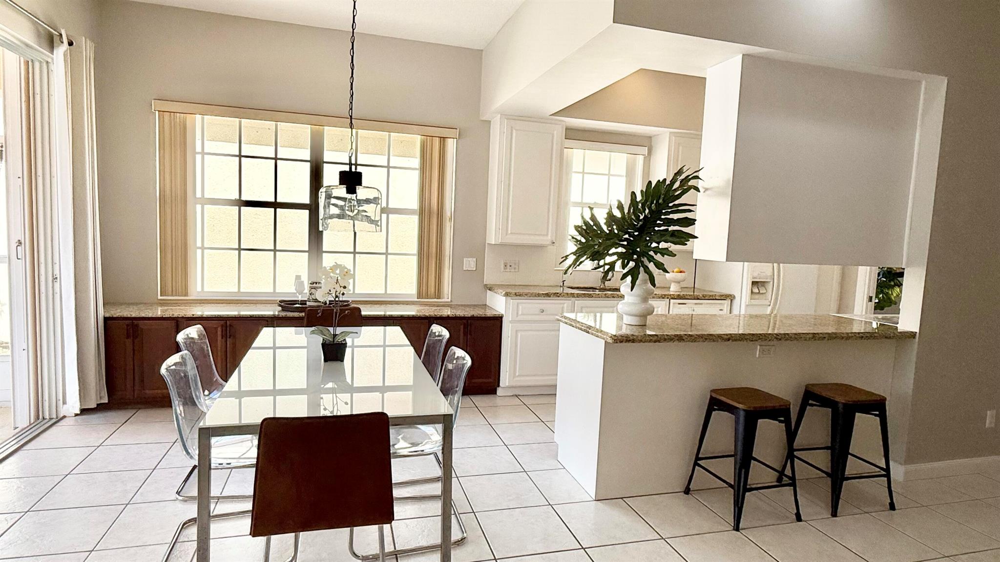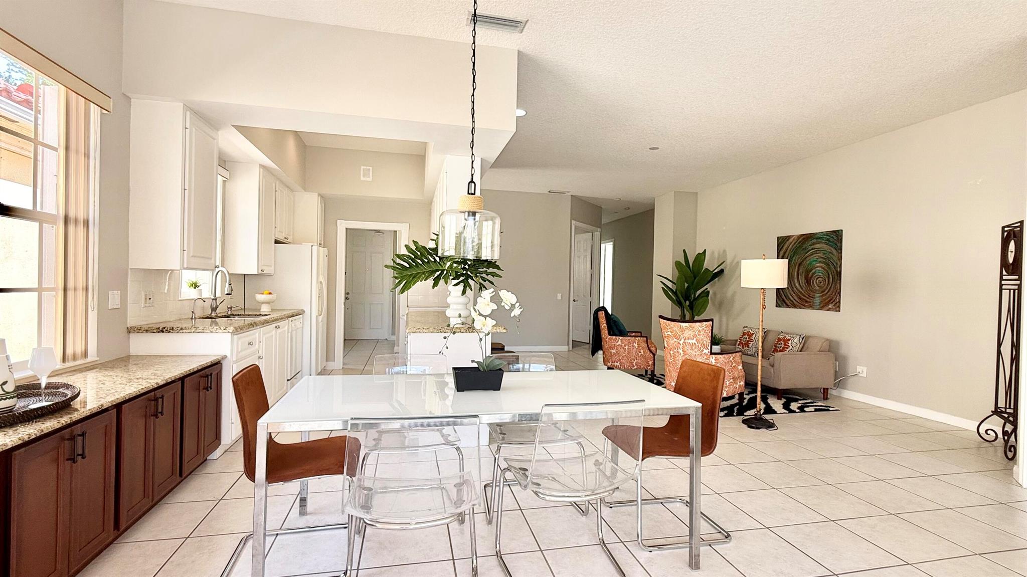A rare find!! Single family home in RiverWalk for under $500K!! BRAND NEW STAINLESS APPLIANCES! Ceramic tile in the main areas and all bedrooms have new luxury plank vinyl flooring. Ten foot ceilings throughout, the open floor plan has a great flow and is perfect for entertaining. The huge screened enclosed patio and lanai offers so many opportunities for outdoor living and overlooks the tranquil lake with an abundance of natural beauty and wildlife. The side fenced ''courtyard'' is a perfect spot for a barbecue and outdoor kitchen set up, or doggy run! The principal bedroom has sliders that lead to the outdoor patio, also an en suite bathroom with two large closets and a linen closet. The guest bedrooms are at the opposite end of the home sharing a bathroom with tub/shower combo.