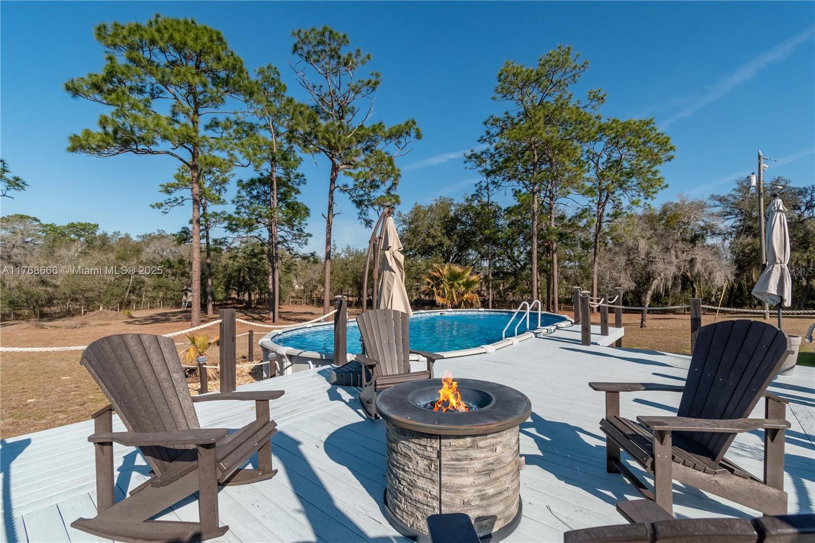 Fox Grove Farms neighborhood, this charming 3/2 home offers the perfect balance of privacy and rural charm—all while being just a short drive from Ocala, Gainesville, and Dunnellon! Set on a corner lot with 5.3 acres of fenced and gated land zoned Agricultural/Rural Residential, this property is well-suited for those seeking a peaceful retreat with the potential for a mini horse farm. Backyard provides a a cozy gas-burning fireplace, ground pool and a raised pool deck. Established on the property is a pole barn with a storage area/workshop– option to fully convert this estate into a functioning horse farm. Fox Grove Farms is a quiet equestrian-friendly neighborhood that is perfect for riding on or off property. Just minutes away for horseback riding, hiking and State Park.