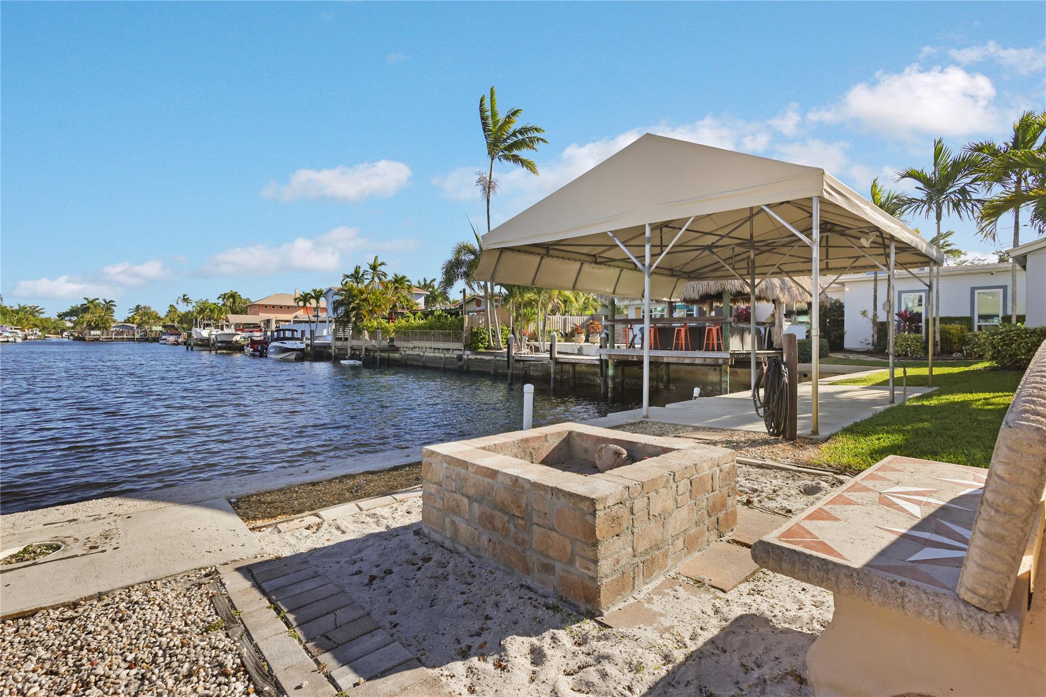 Waterfront Living with OCEAN ACCESS & 171’ Dock. No Fixed Bridges. Updated 4 bedroom 2 bath home with 2 car garage. Your private oasis backyard with boat dock for all your water toys, shed, resort style tiki hut with built in BBQ, TV’s & speakers for entertaining or relax at the pool & enjoy the water views. Step inside & enjoy the cozy fireplace, plantation shutters, central vac, remodeled kitchen with wood cabinets & quartz countertops, wood like floors throughout. Home has a professional security system, outdoor landscape lighting, impact windows & doors & is on a quiet cut-de-sac with no HOA or Rental Restrictions. Call today for a showing!