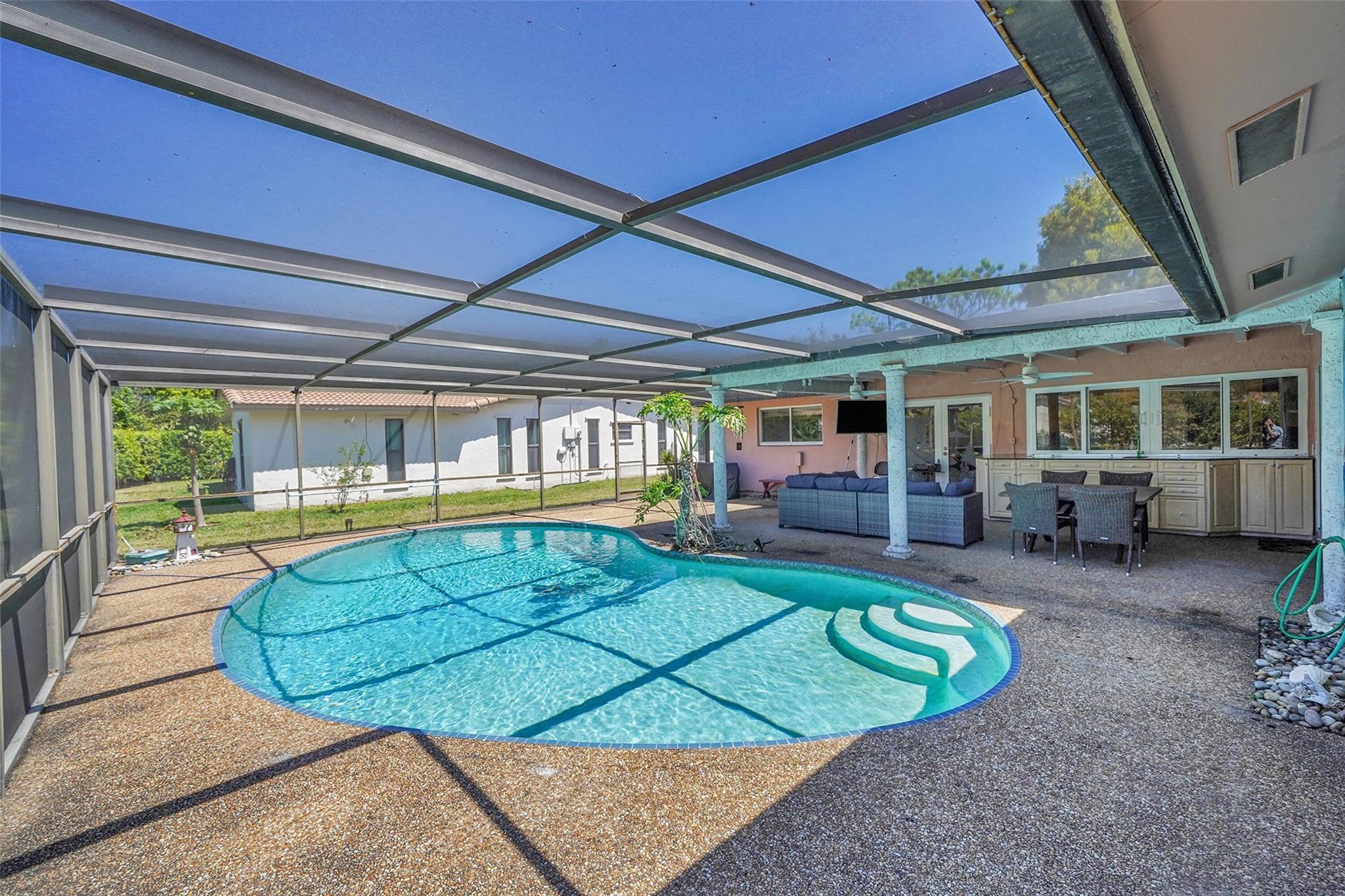 Beautiful 4-bedroom, 2-bath single-family home with a private pool, located on a spacious lot at the end of a canal—no HOA! Enjoy peace of mind with all impact windows and a 2021 flat roof. Waterproof laminate flooring in all bedrooms and newer blinds throughout add a modern touch. The pool pump was replaced in 2024, and the washer and dryer were updated in 2021. Laundry is conveniently located in the garage. This well-maintained home offers comfort, functionality, and outdoor space to relax or entertain. Don’t miss the opportunity to own this gem in a desirable, no-HOA community!