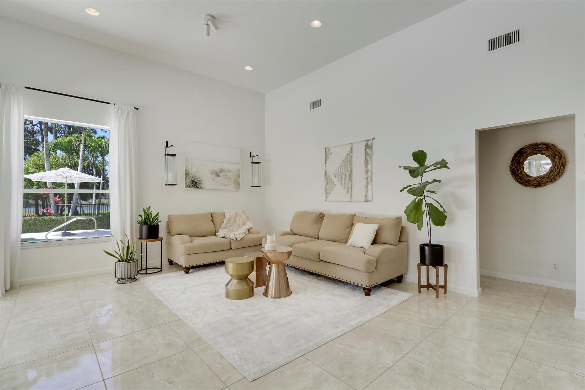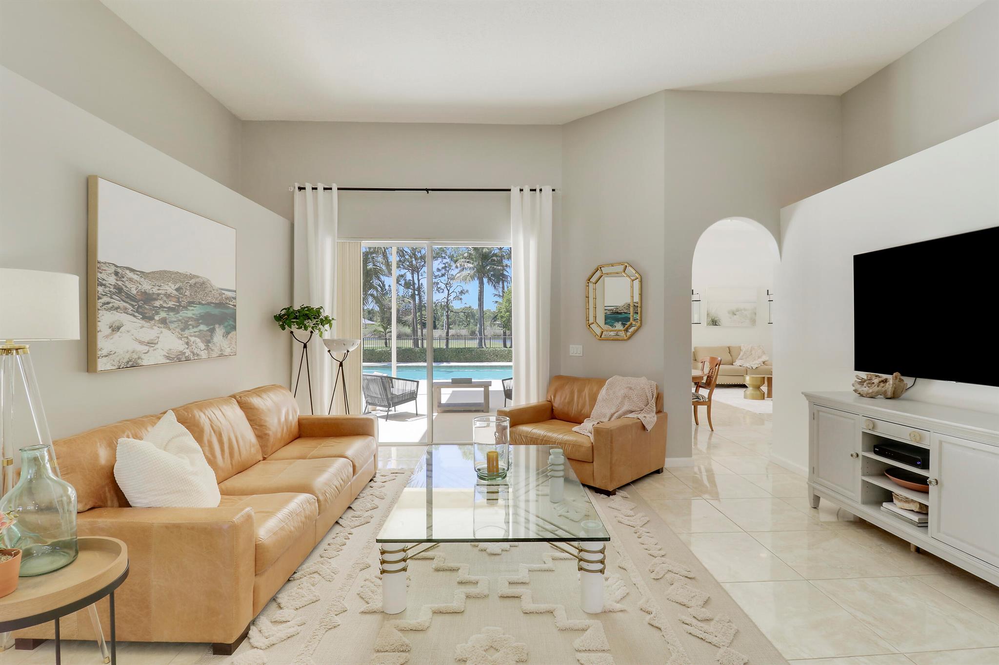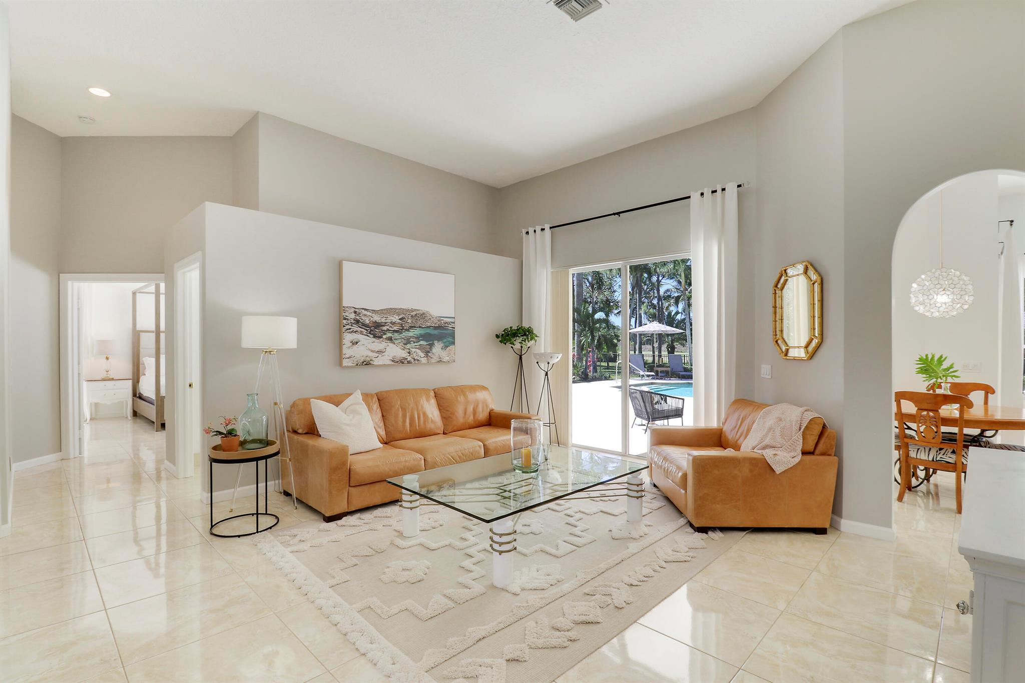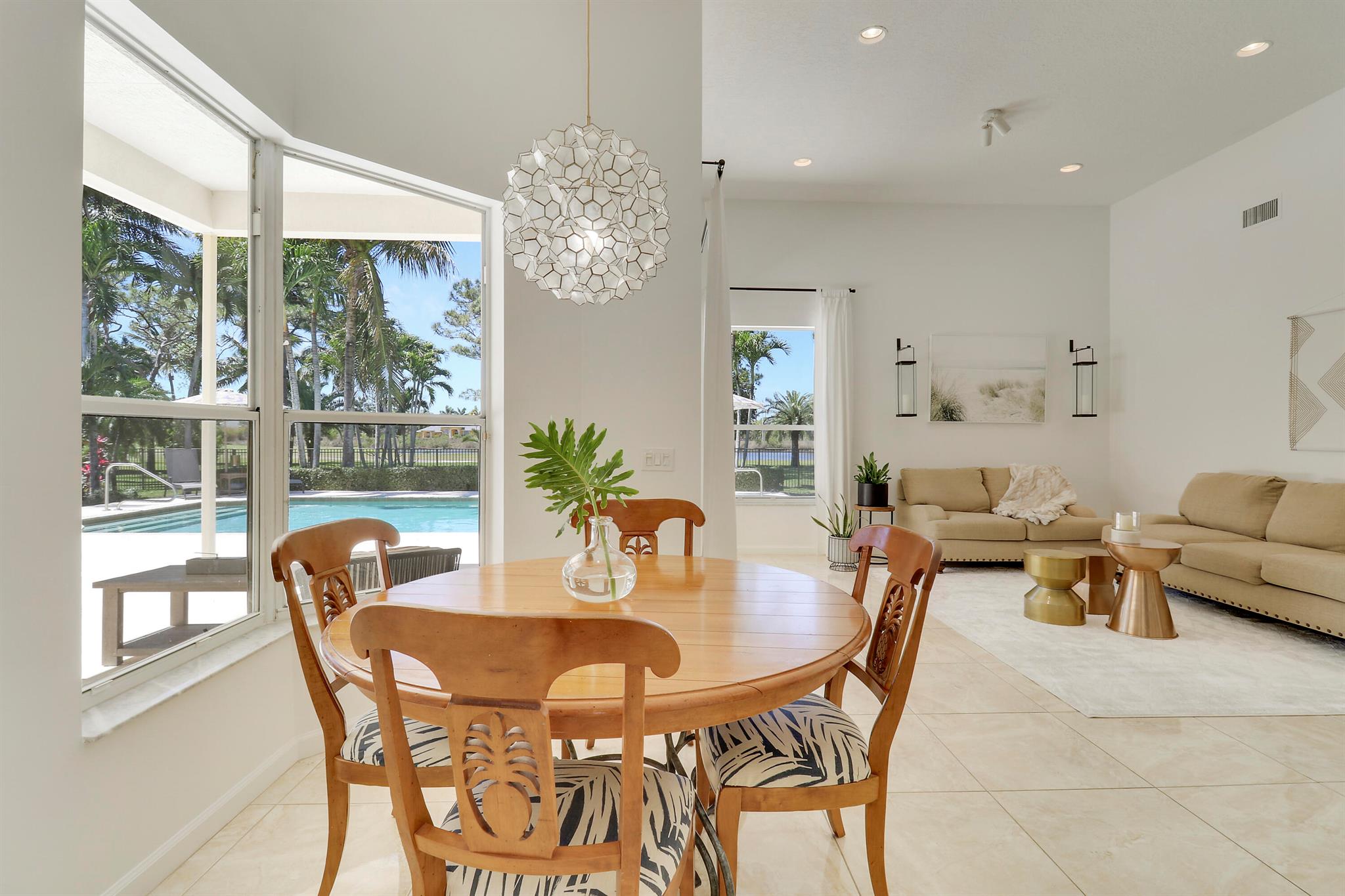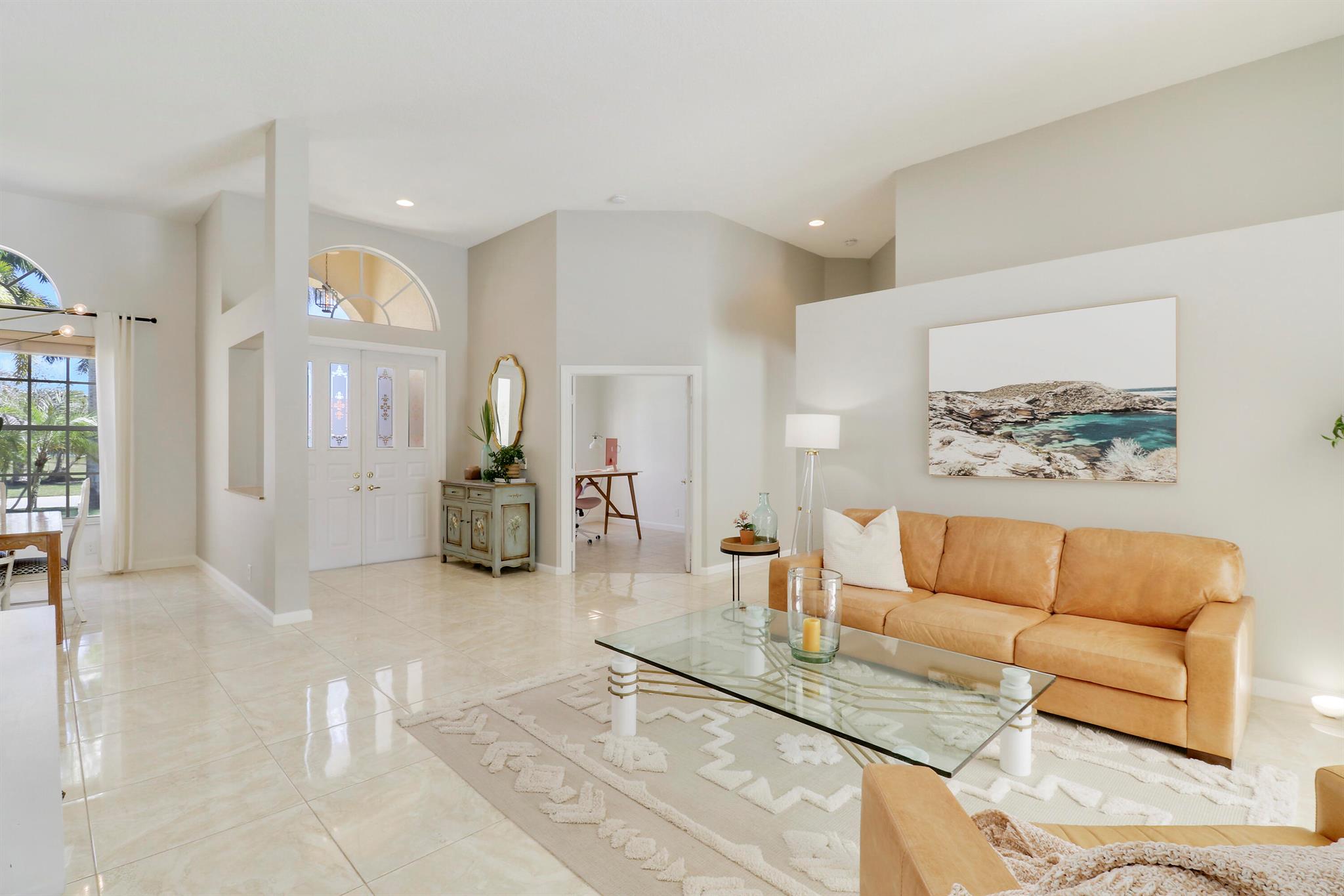 Welcome to Bay Hill Estates an unparalleled Golf Course community where convenience and luxury unite. You will not want to miss this spacious pool home with 4 bedrooms, 3 baths, and a 2-car garage w/ tesla charger in place. A 2024 flat tile roof and solid poured concrete block walls ensure this home is ready to weather any storm. The property itself is a landscape designed masterpiece with right at an acre of lush trees, vegetation, hardscapes, and a truly epic water feature, you will immediately feel like calling this home. The opportunity to cool off and relax in your private 18x36 saltwater pool, walk out back to cast a line and catch a sunset, as well as the close proximity to all that Palm Beach Gardens has to offer are just a few of the many reasons this is ''the one''