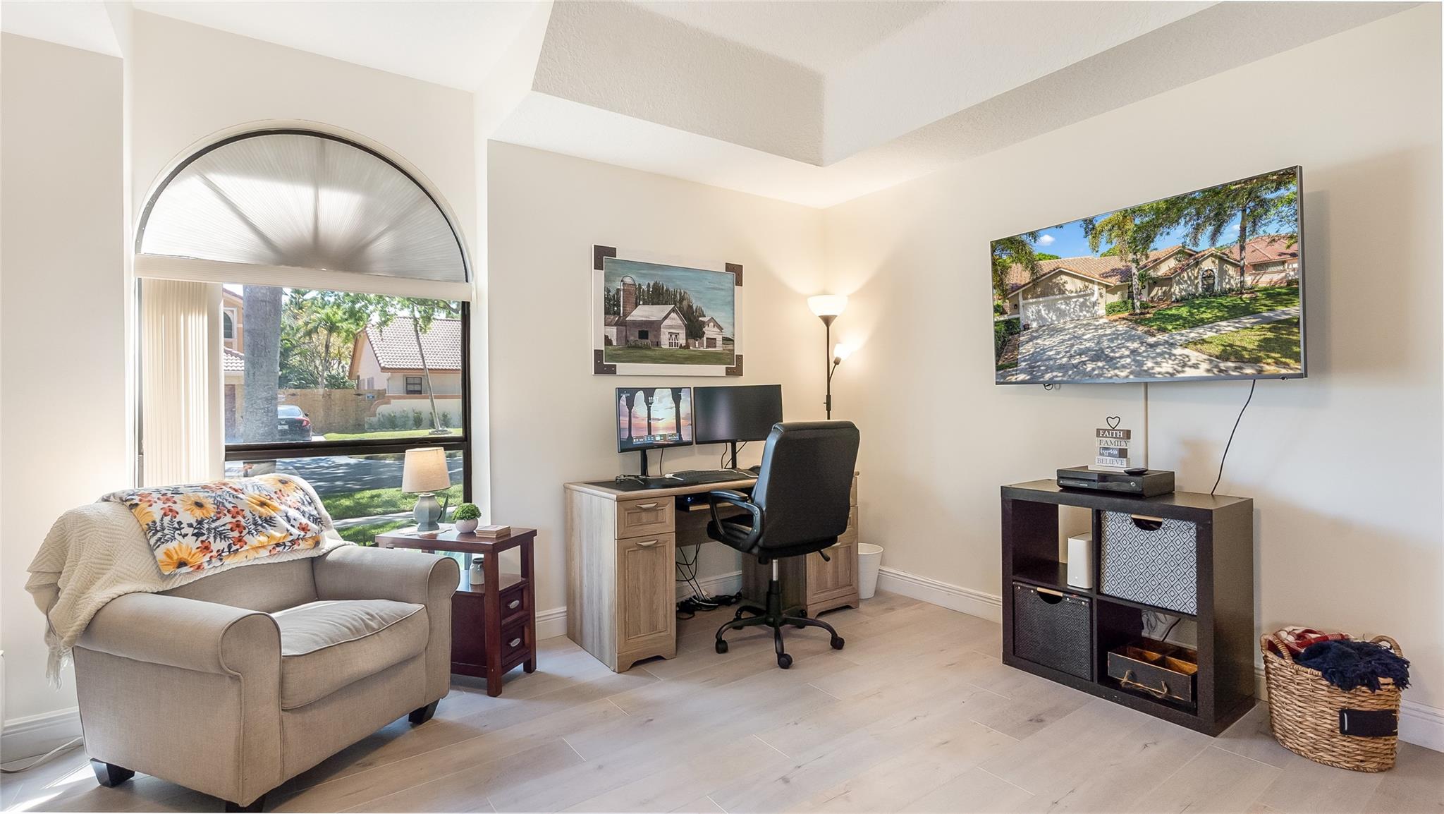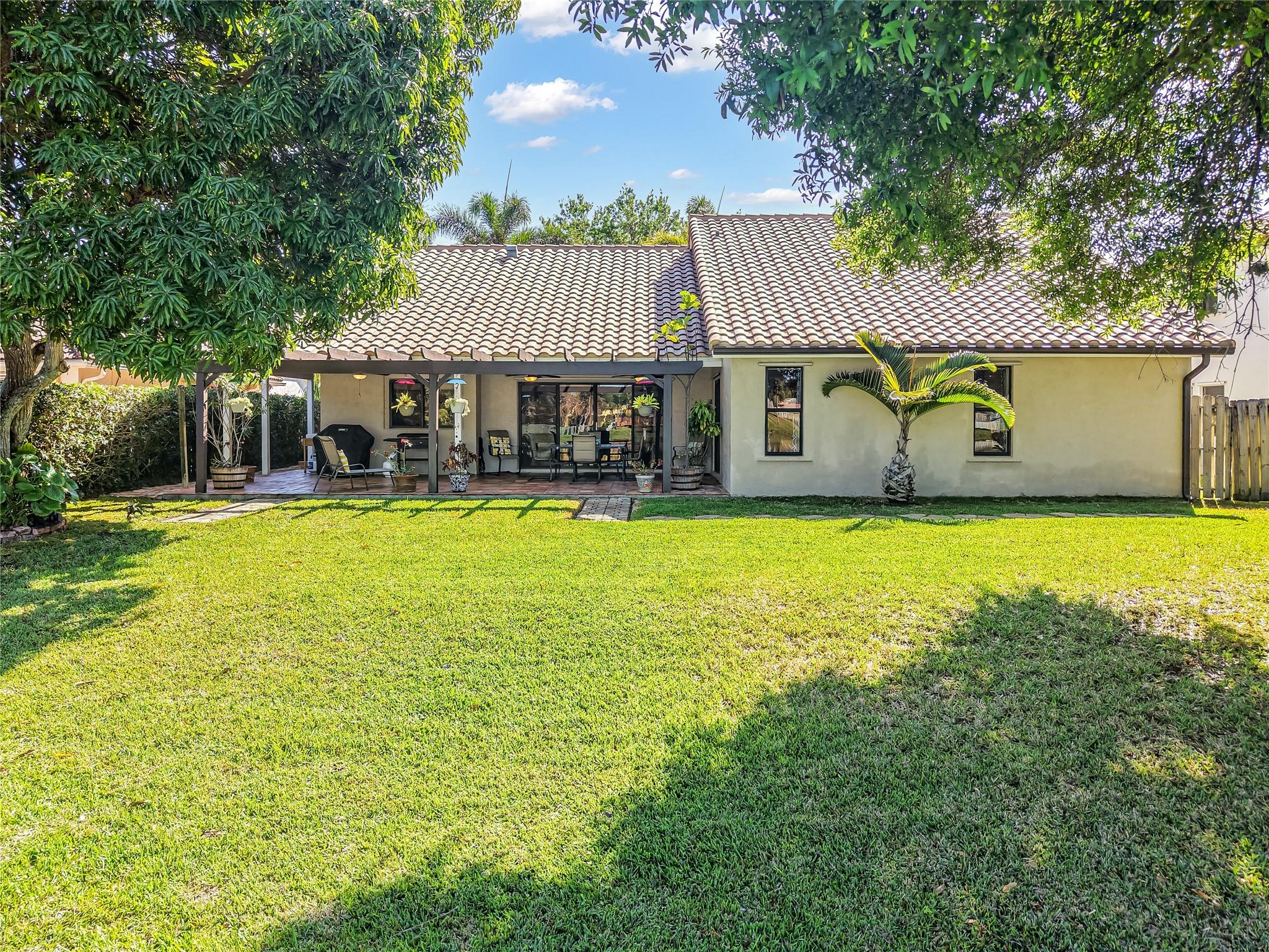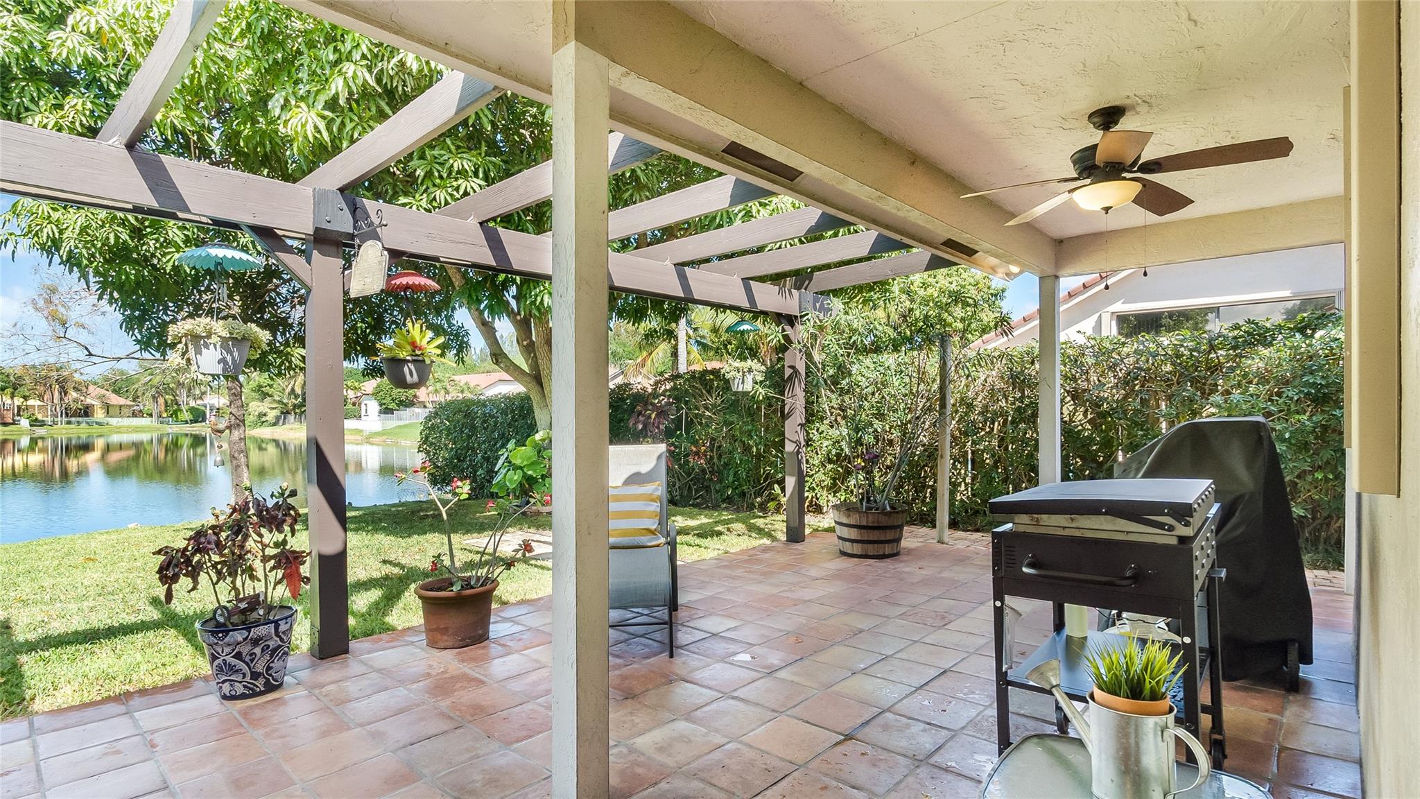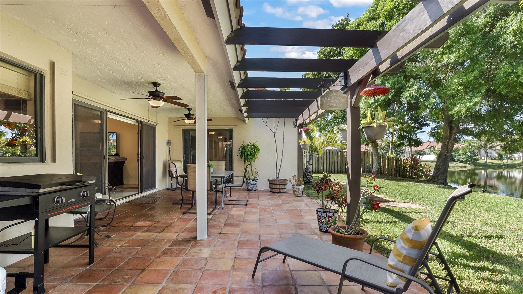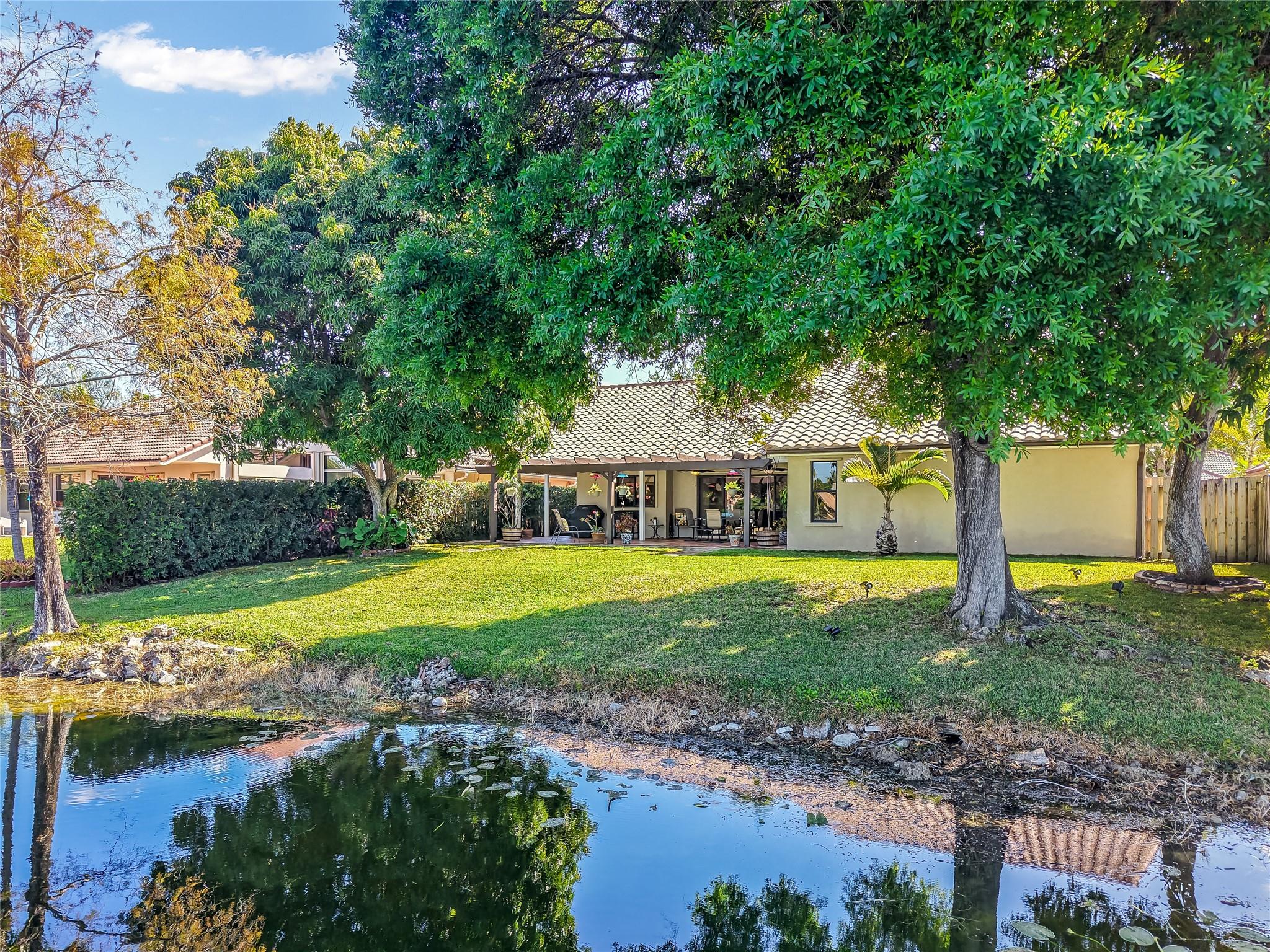 Beautifully maintained Plantation single-family home featuring 3 spacious bedrooms and 2 full baths W/ serene long lake views – Large patio and pergola perfect for morning coffee or evening relaxation. The interior boasts Vaulted ceilings & a mix of ceramic tile and hard wood flooring, New fans and fixtures With an extra large Family room overlooking the lake and open to the kitchen w/ New SS appliances, plus a separate 2nd living room with high tray ceilings offering a clean and modern touch throughout or you can convert this room to a large 4th bedroom. Located in the desirable Fox Run community, close to shopping, dining, parks, and top-rated schools. Don't miss this opportunity to own a lakefront gem in one of the area's most sought-after Tree lined neighborhoods! AC 2020 Roof 2015