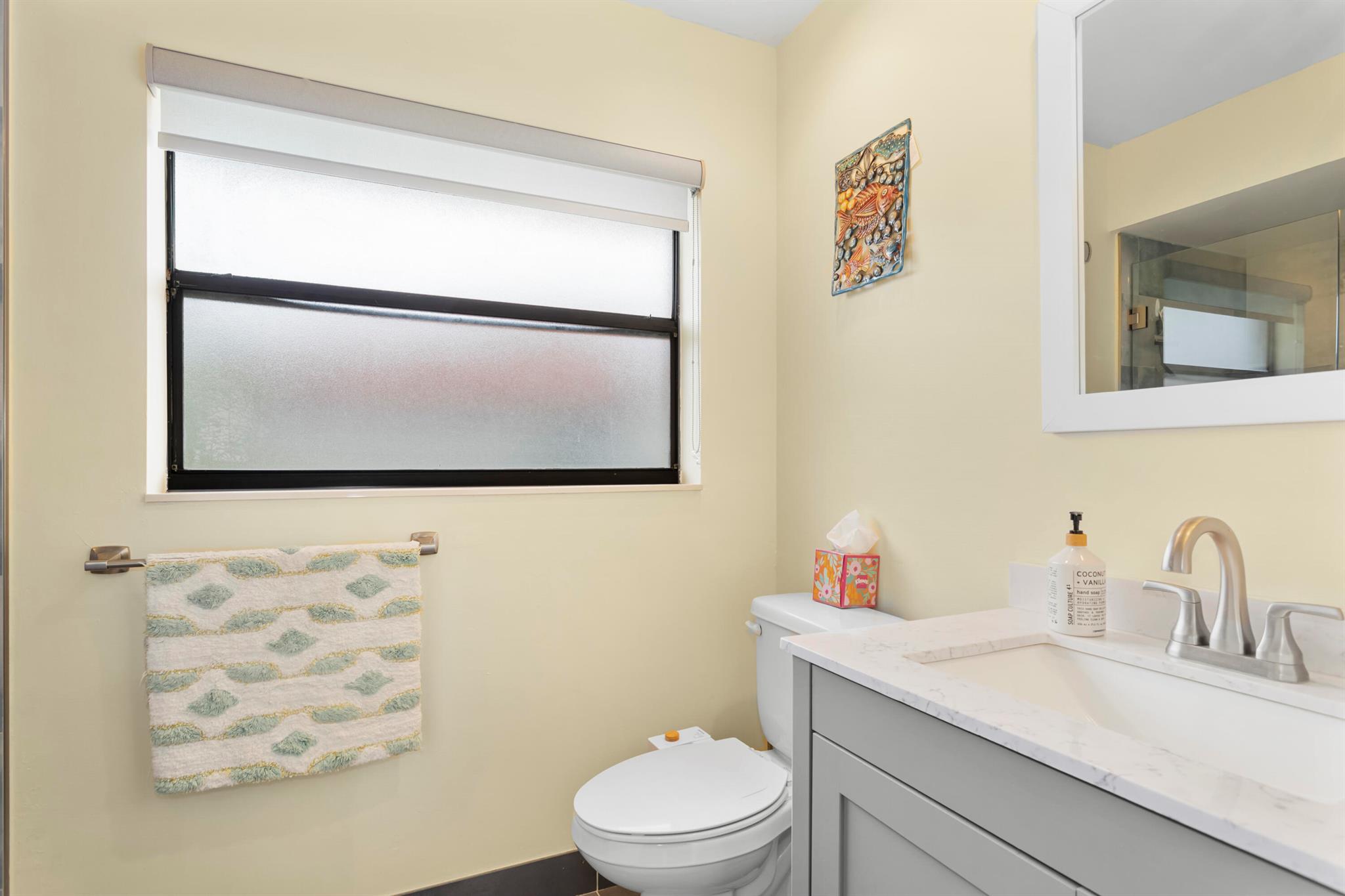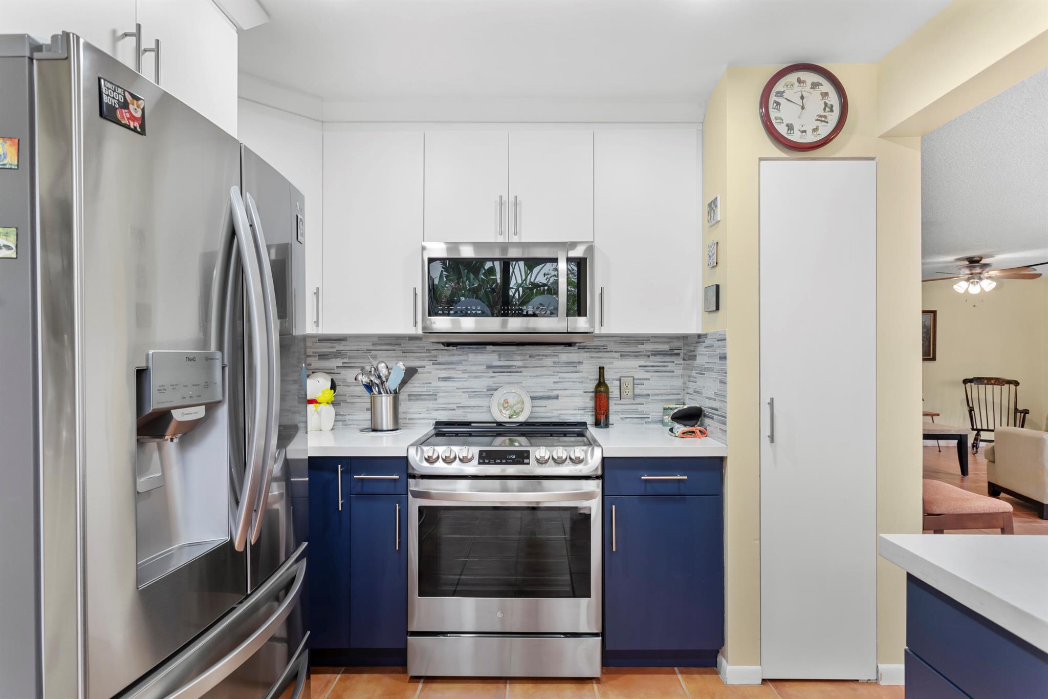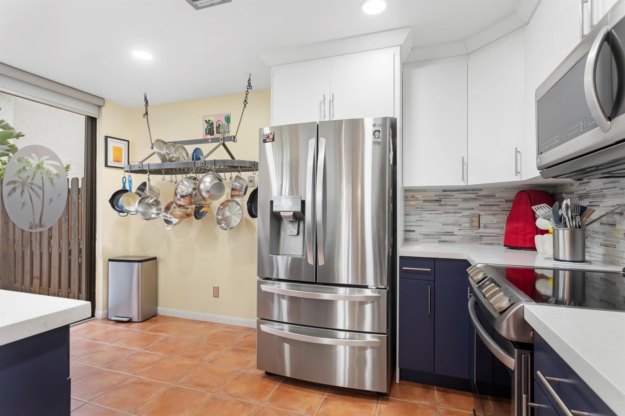 Welcome to this beautifully remodeled 2 bed, 2.5 bath condo/townhouse located in the heart of Boca Raton with FULLY FUNDED Reserves! This stunning home has an open-concept design with modern finishes throughout. The updated kitchen features sleek quartz countertops, SS appliances, and a spacious breakfast/dining area. The living and dining areas are bright and airy, with large sliding doors leading to a private patio, perfect for outdoor entertaining. Upstairs, you'll find two generously sized bedrooms. The primary suite offers a walk-in closet and a spa-like bathroom with a luxurious shower featuring elegant tile work and contemporary fixtures. Additional features include a powder room on the main floor and laundry area. Situated in a prime central location, this townhouse is minutes