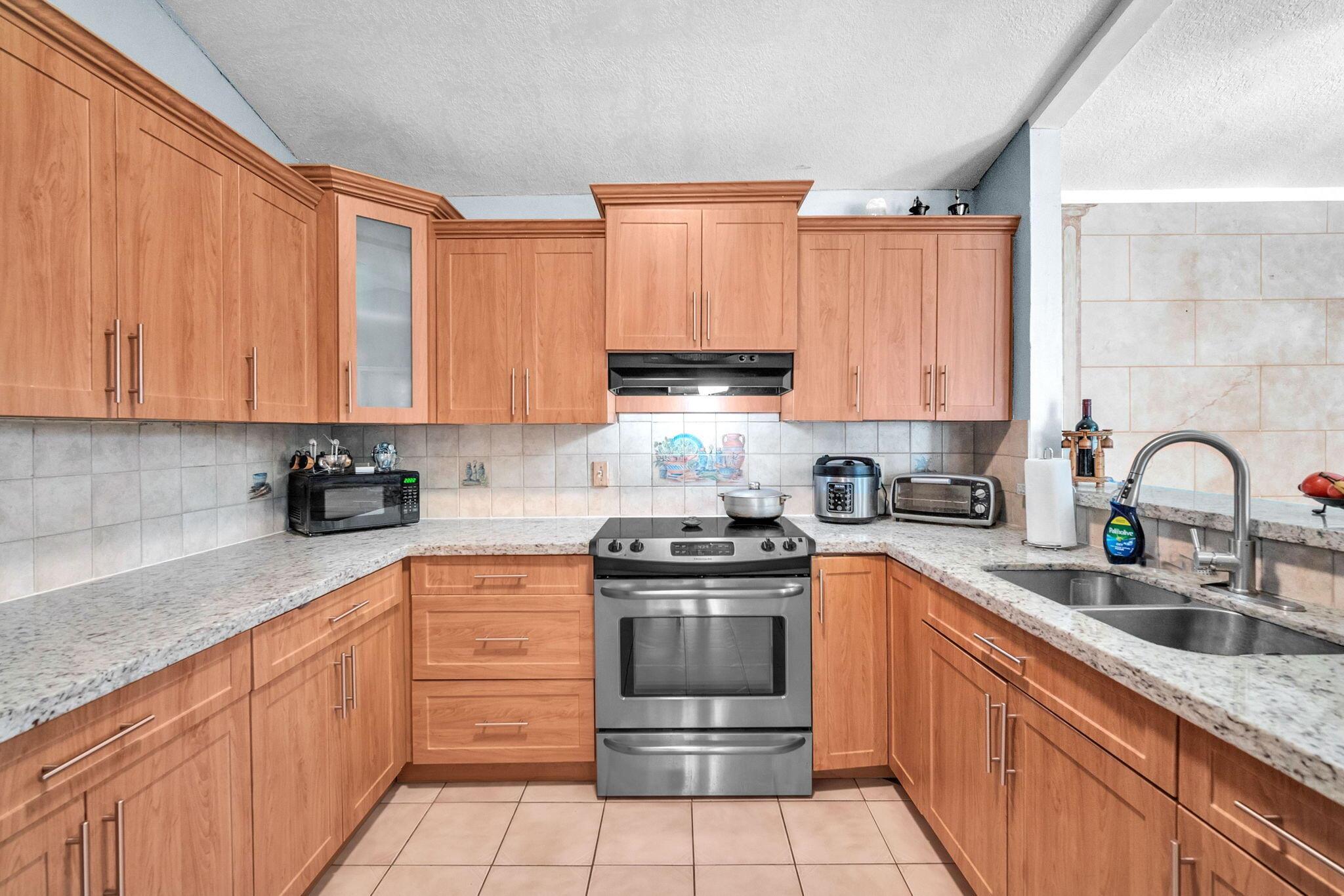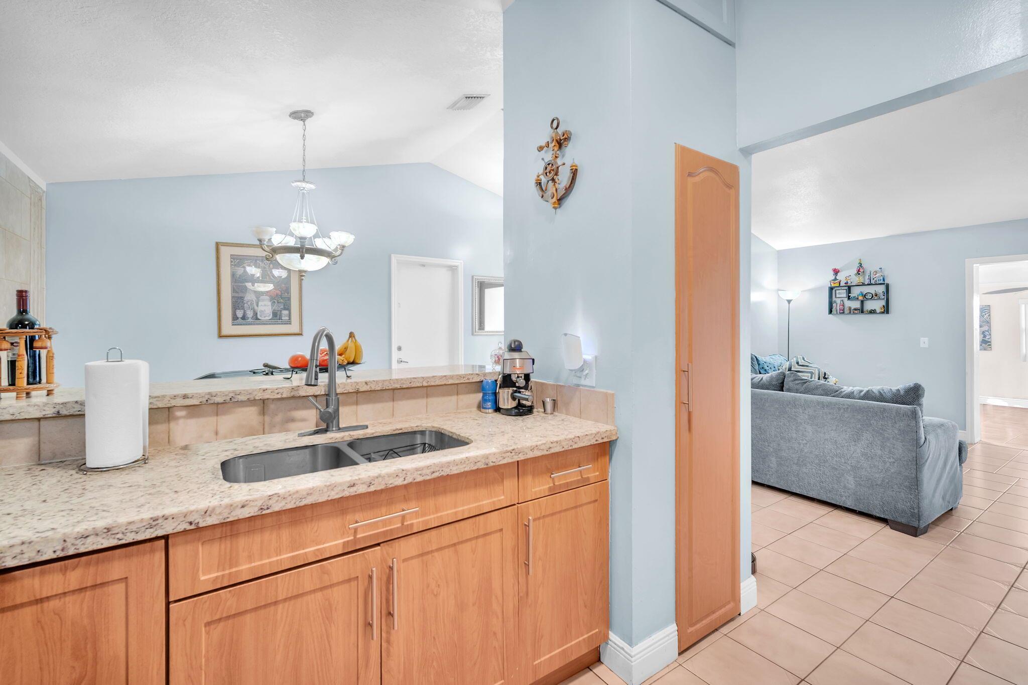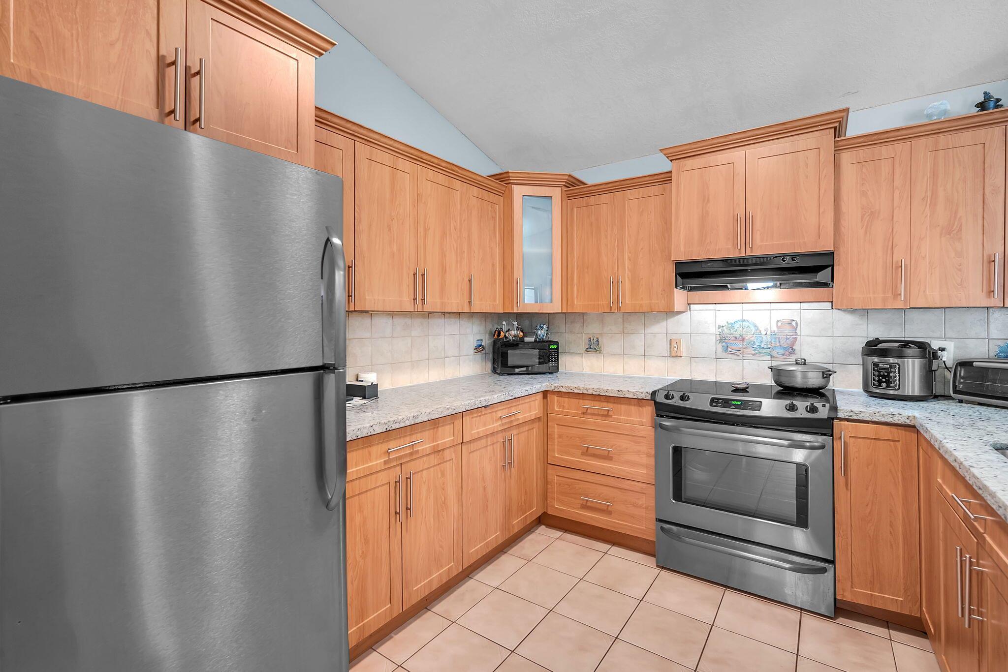 Beautiful 2-bedroom, 2-bathroom home with a bonus den, offering versatility for an office or extra bedroom. The home features upgraded granite countertops, stylish fixtures, and tile flooring throughout. The kitchen is equipped with stainless steel appliances. The spacious living room boasts a cathedral ceiling, creating a bright and open feel. Enjoy updated bathrooms and an indoor laundry area. The fenced-in yard is perfect for privacy, complete with mature fruit trees for added charm
