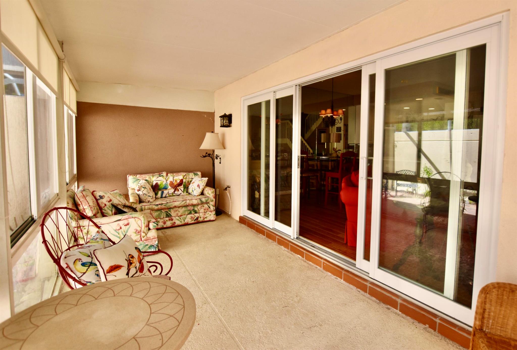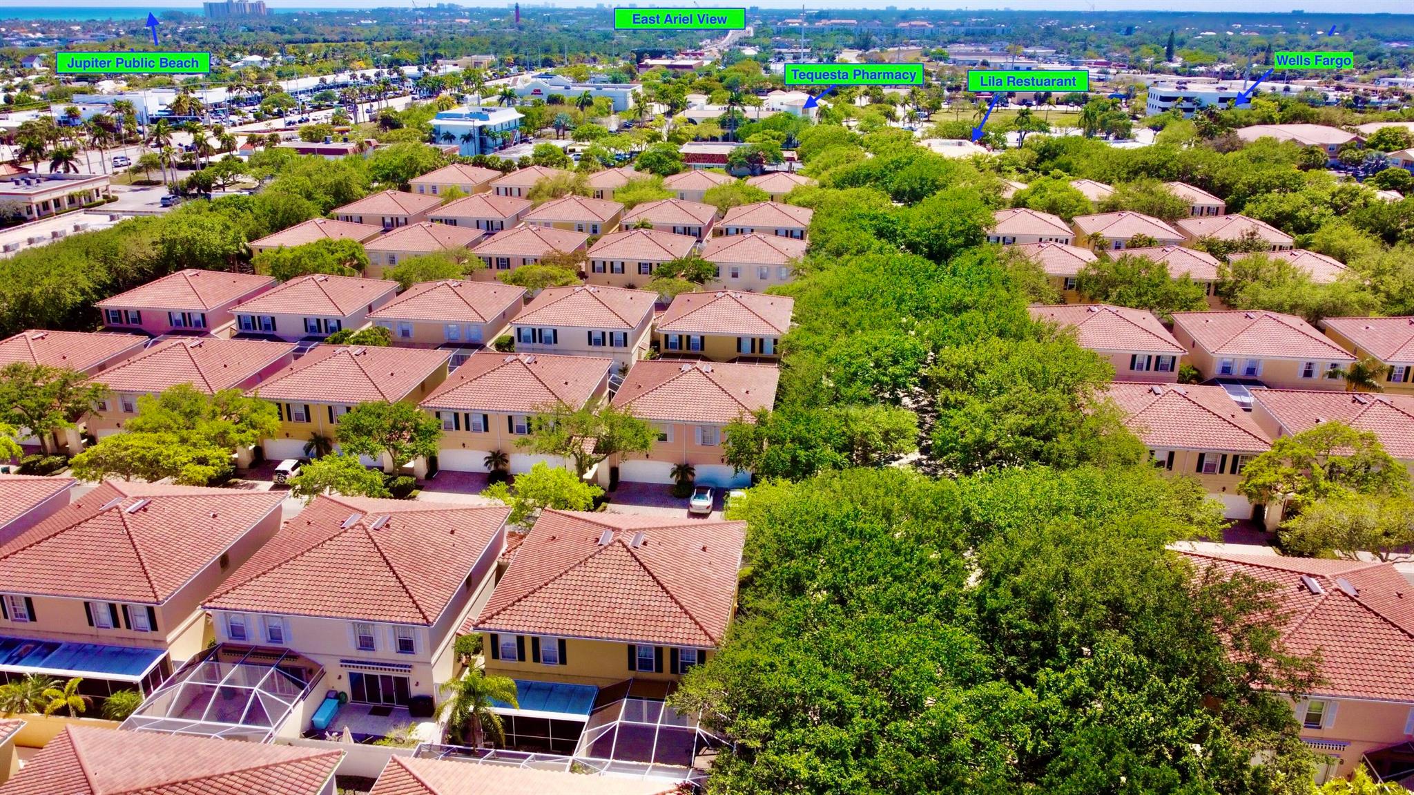 Divosta built, fully concrete constructed, 3BR, 2.5Bath Townhome in an oak lined, private, well managed community. Townhome situated on premium lot that backs to parking lot. Unit located 4 units from community pool. Interior features include hardwood flooring, new (never used) stainless steel refrigerator, microwave, dishwasher, garbage disposal, and kitchen faucet. Open floor plan downstairs. Upstairs- laundry, primary bedroom with ensuite primary bathroom and walk-in closet and plantation shutters. Screen and paved back patio and screen enclosed back porch w/ vinyl windows/ability to A/C the screed porch. Accordion hurricane shuttler, impact glass sliders and tile roof replaced 2023. A/C new 2023. Garage door opener replaced 2023. Zoned for A rated Jupiter Schools.Watch video