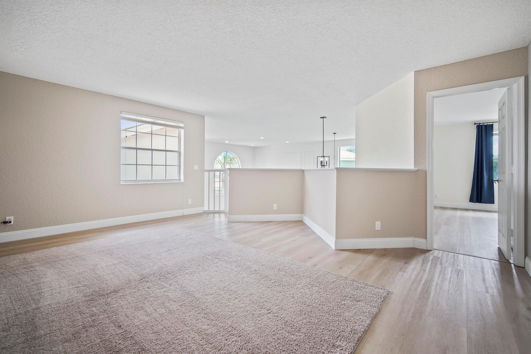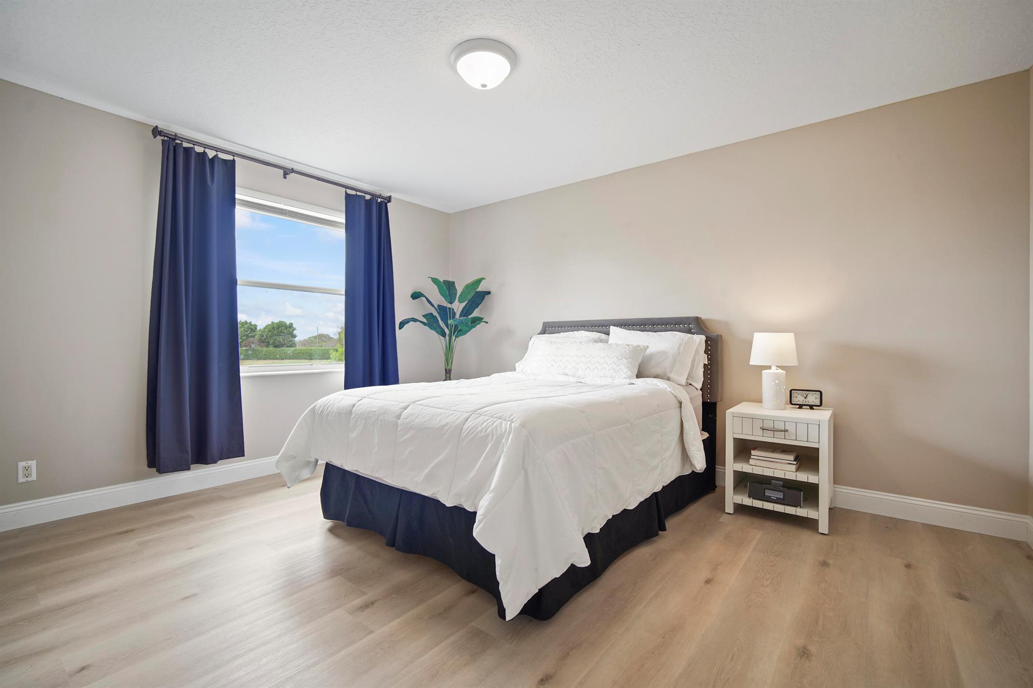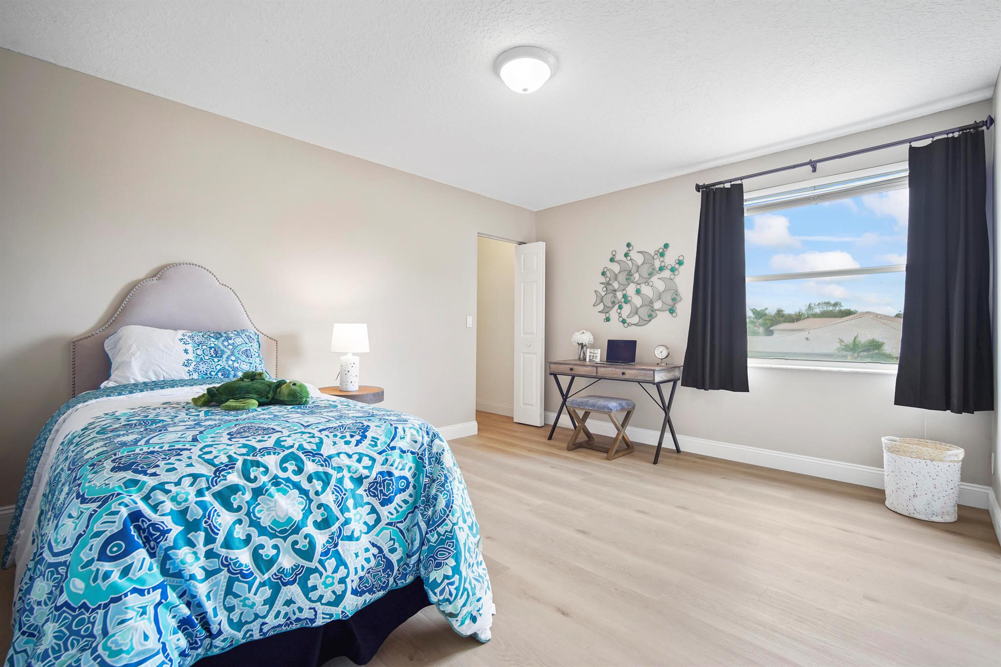 Extraordinary Home on best cul de sac waterfront lots in Boca Falls. This particular model boast of 5 bedrooms and 4 Baths, 3 car garage is perfect for family and ideal for entertaining. Master Bedroom and Bath on main floor and 4 bedrooms 2 baths plus large loft upstairs, double staircases, open concept kitchen with island, laundry room on main floor, impressive 19ft ceilings in living room, foyer and dining room. Brand New roof 2025, Screened Lanai overlooks oversized back yard with a serene water view Excellent A rated schools within 5 minutes walking distance. State of the art fitness center locker room with showers. New Pickleball courts, 6 tennis courts, basketball courts, heated adult pool and kiddie pool 24 hr security and 2 manned guard gated entrances.