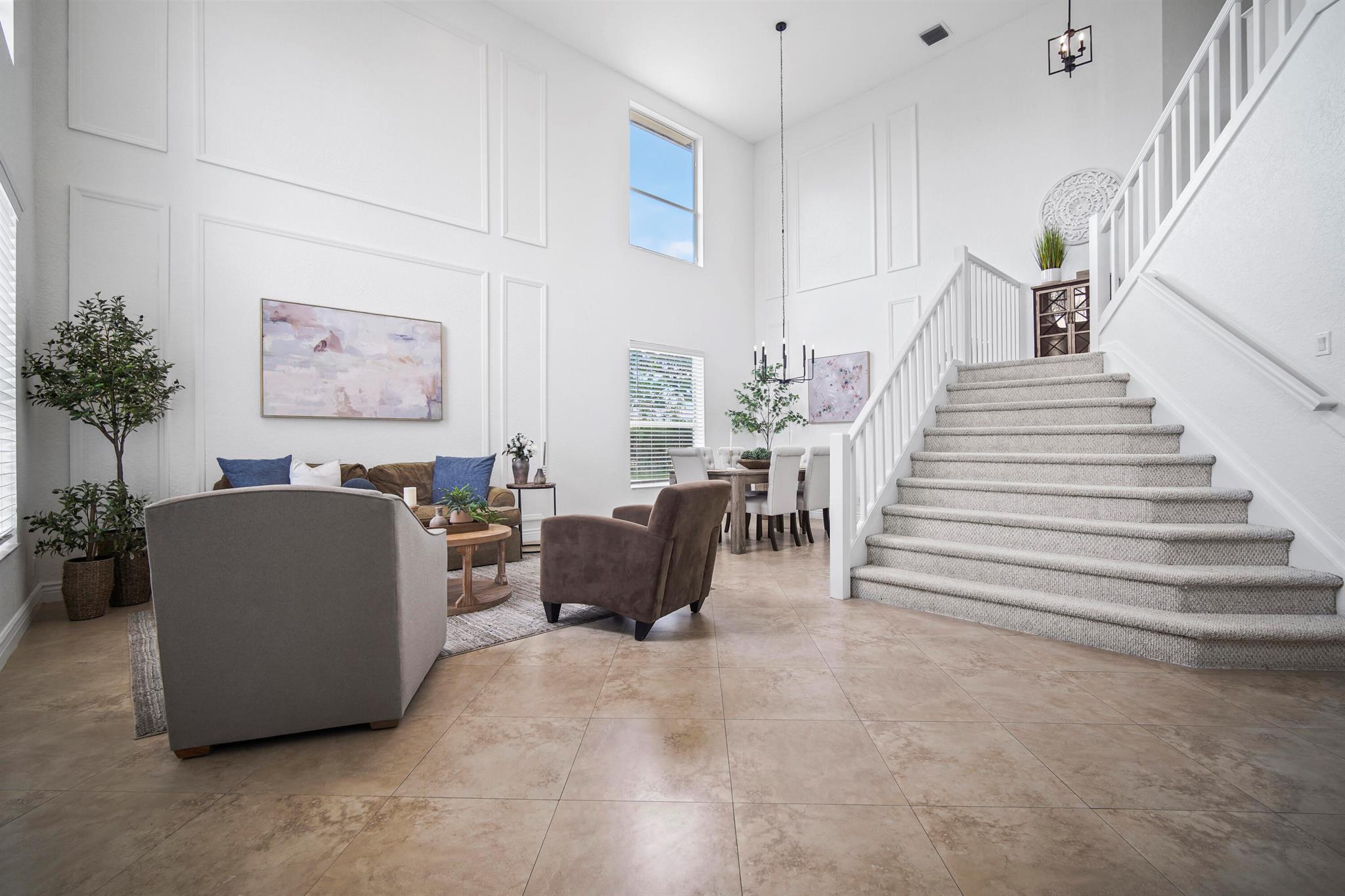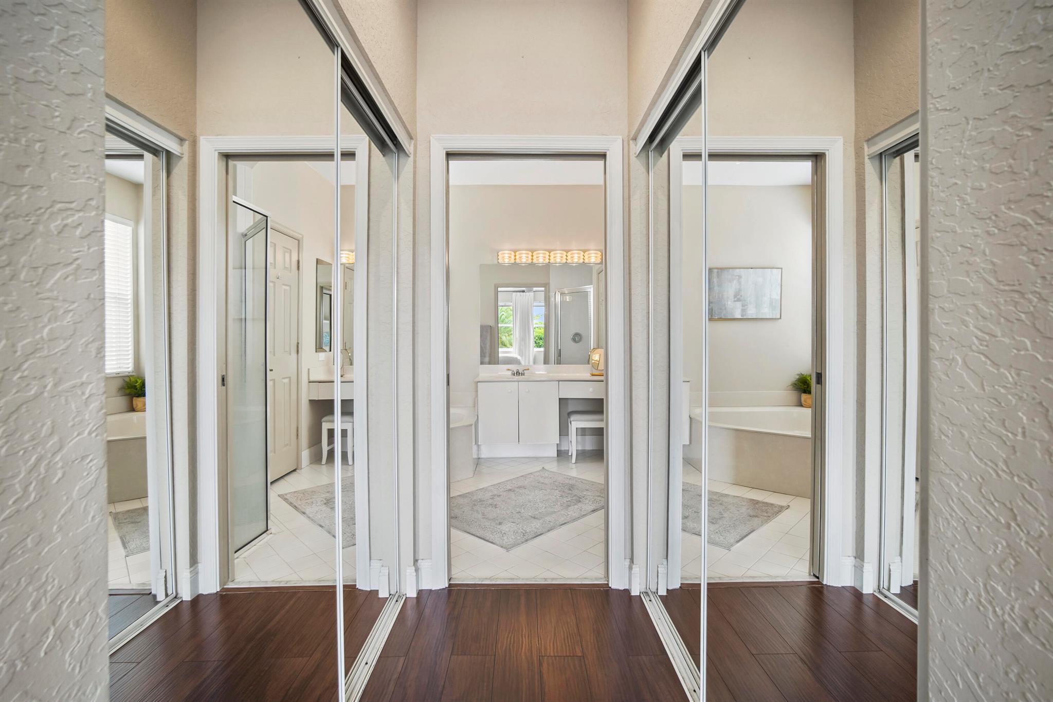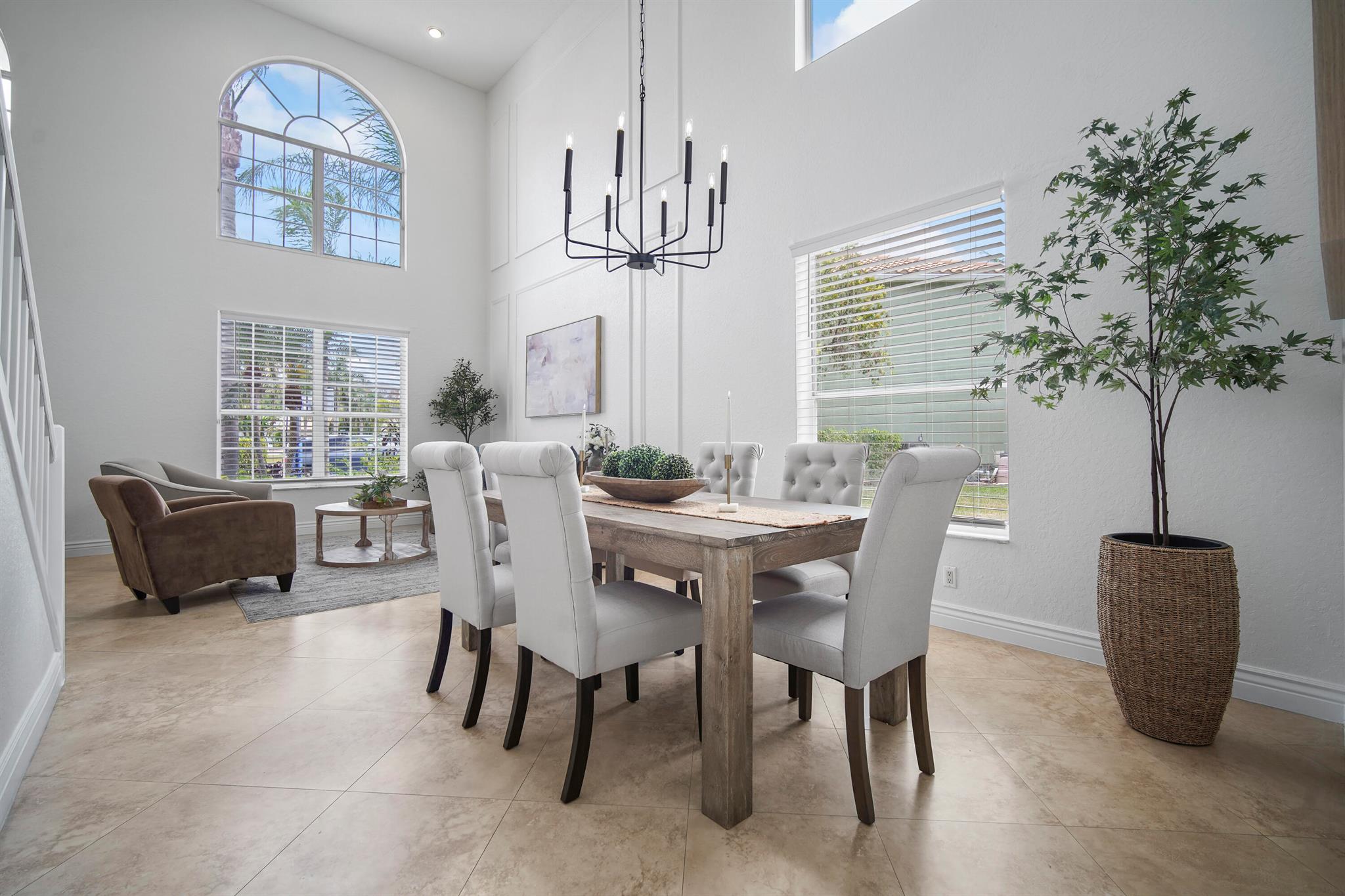 Extraordinary Home on best cul de sac waterfront lots in Boca Falls. This particular model boast of 5 bedrooms and 4 Baths, 3 car garage is perfect for family and ideal for entertaining. Master Bedroom and Bath on main floor and 4 bedrooms 2 baths plus large loft upstairs, double staircases, open concept kitchen with island, laundry room on main floor, impressive 19ft ceilings in living room, foyer and dining room. Brand New roof 2025, Screened Lanai overlooks oversized back yard with a serene water view Excellent A rated schools within 5 minutes walking distance. State of the art fitness center locker room with showers. New Pickleball courts, 6 tennis courts, basketball courts, heated adult pool and kiddie pool 24 hr security and 2 manned guard gated entrances.