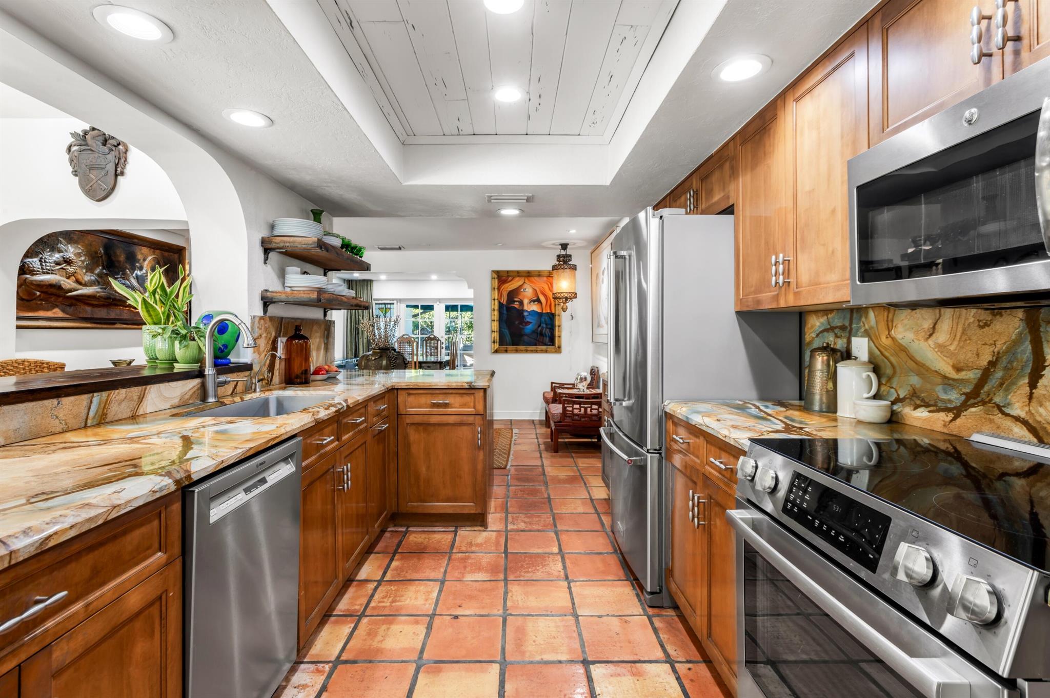 Welcome to 898 Azalea Street, in Boca Raton's historic Old Floresta enclave. Sited on a prime corner lot with canopy trees and lush tropical foliage, this Spanish Colonial-style property exudes allure with its pecky cypress ceilings, classic arches, niches, and decorative columns. The Old Floresta residence features a free-flowing floor plan, a split-bedroom layout, and details such as whitewashed brick and lustrous French clay floors. A convertible VIP suite offers the option for an additional fourth bedroom. The loggia opens to a custom saltwater pool (2020) and a private oasis. Showings are by appointment only.