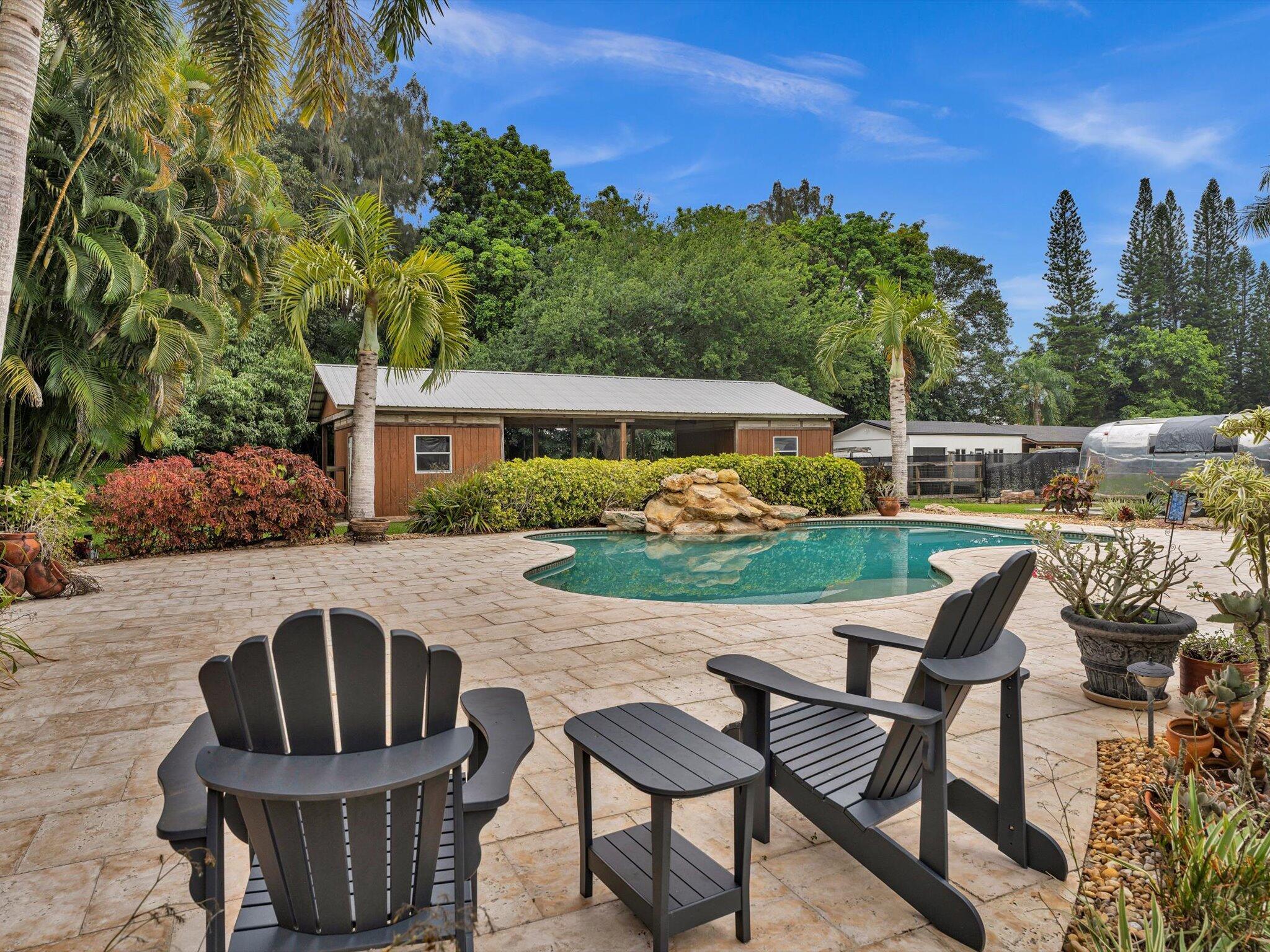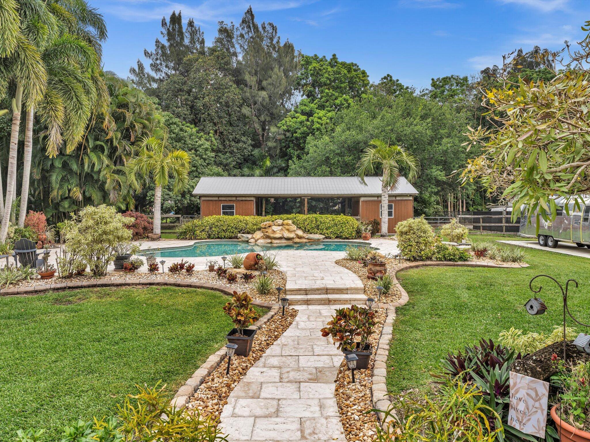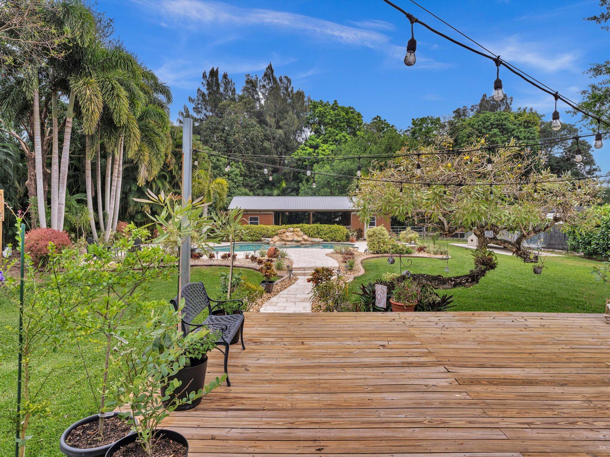 Nestled on nearly a full acre of lush, private land, this 3-bedroom, 2-bathroom ranch-style home is a rare find in the heart of Southwest Ranches. Designed for both relaxation and entertainment, the expansive backyard boasts a sparkling pool with a tranquil water feature, a spacious wood deck perfect for gatherings, and even a charming treehouse for added fun.For those with hobbies or animals, the property includes a well-equipped barn with two stalls and ample storage, plus a dedicated concrete pad ideal for parking a boat or RV. With plenty of open space to roam, this home offers the perfect blend of country-style living with modern conveniences. Don't miss your chance to own this one-of-a-kind retreat!