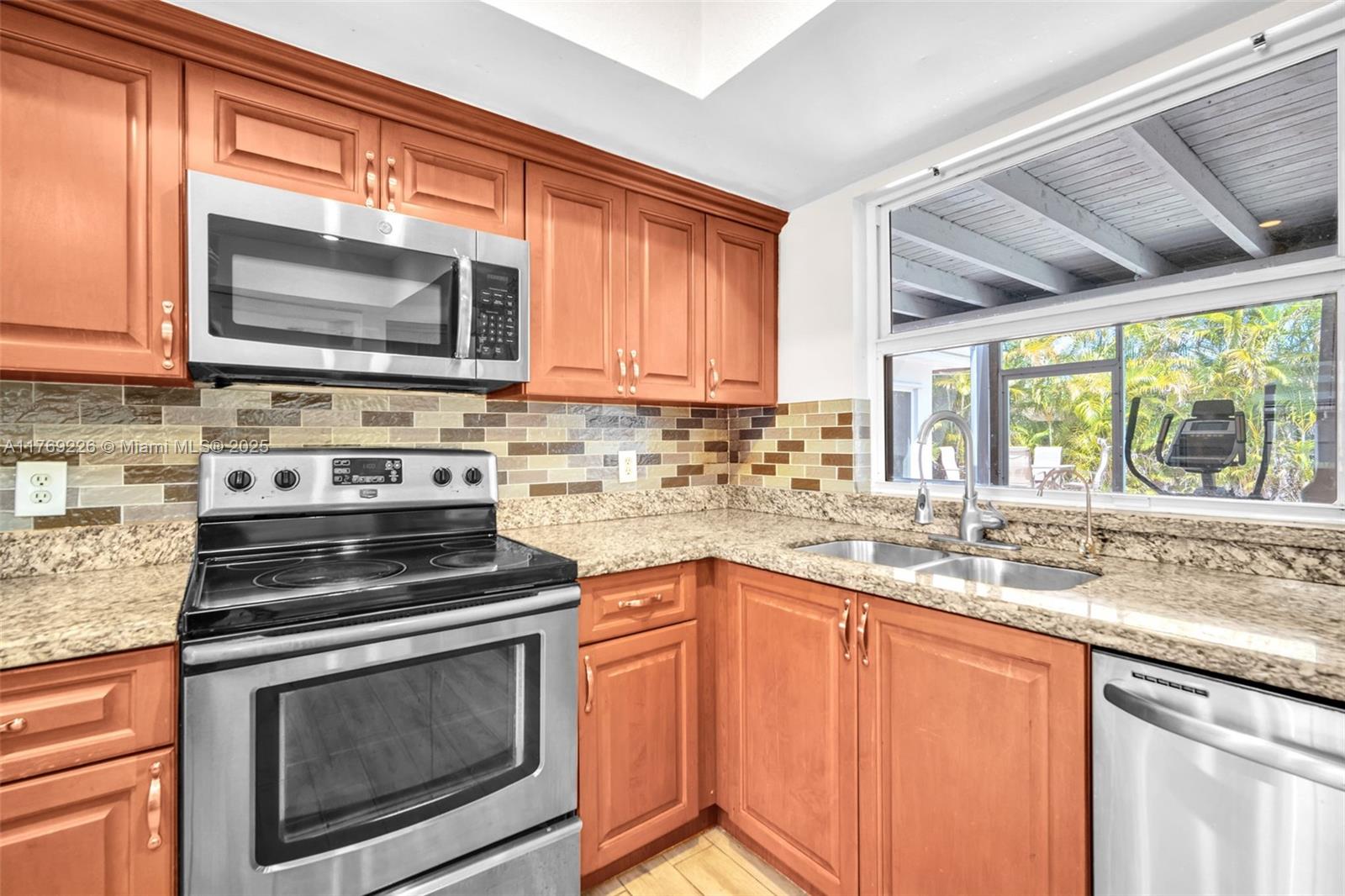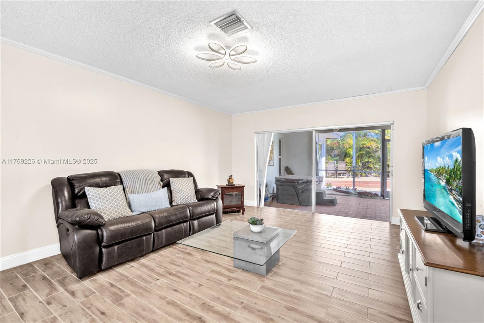 Price to sell!!! Don't miss this opportunity to own a beautiful view of the oversized 15' x 35' pool with jacuzzi from the primary bedroom, kitchen, and family room. This 3-bedroom, 2-bath home features an attached garage, formal dining, a family and Florida room, plus an enclosed porch with impact windows. The kitchen boasts granite counters & stainless steel appliances. The primary suite offers a walk-in closet, upgraded bath & patio access. Tile & wood floors (2020), upgraded baths, fenced patio, & energy-saving LG solar system (10,150W) covering 95-100% of electrical needs, with a $25-$50 monthly bill. Additional features: Bose outdoor speakers (front & back), Aquasana whole-house filtration, new roof (2020), high-efficiency AC, & impact windows, doors & garage door.