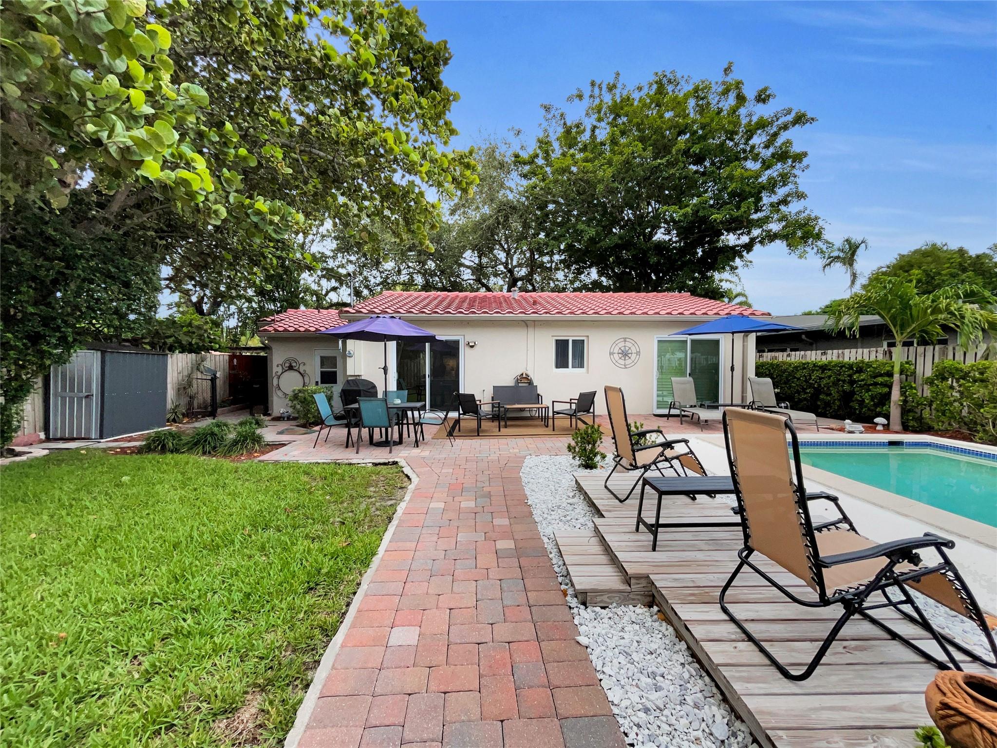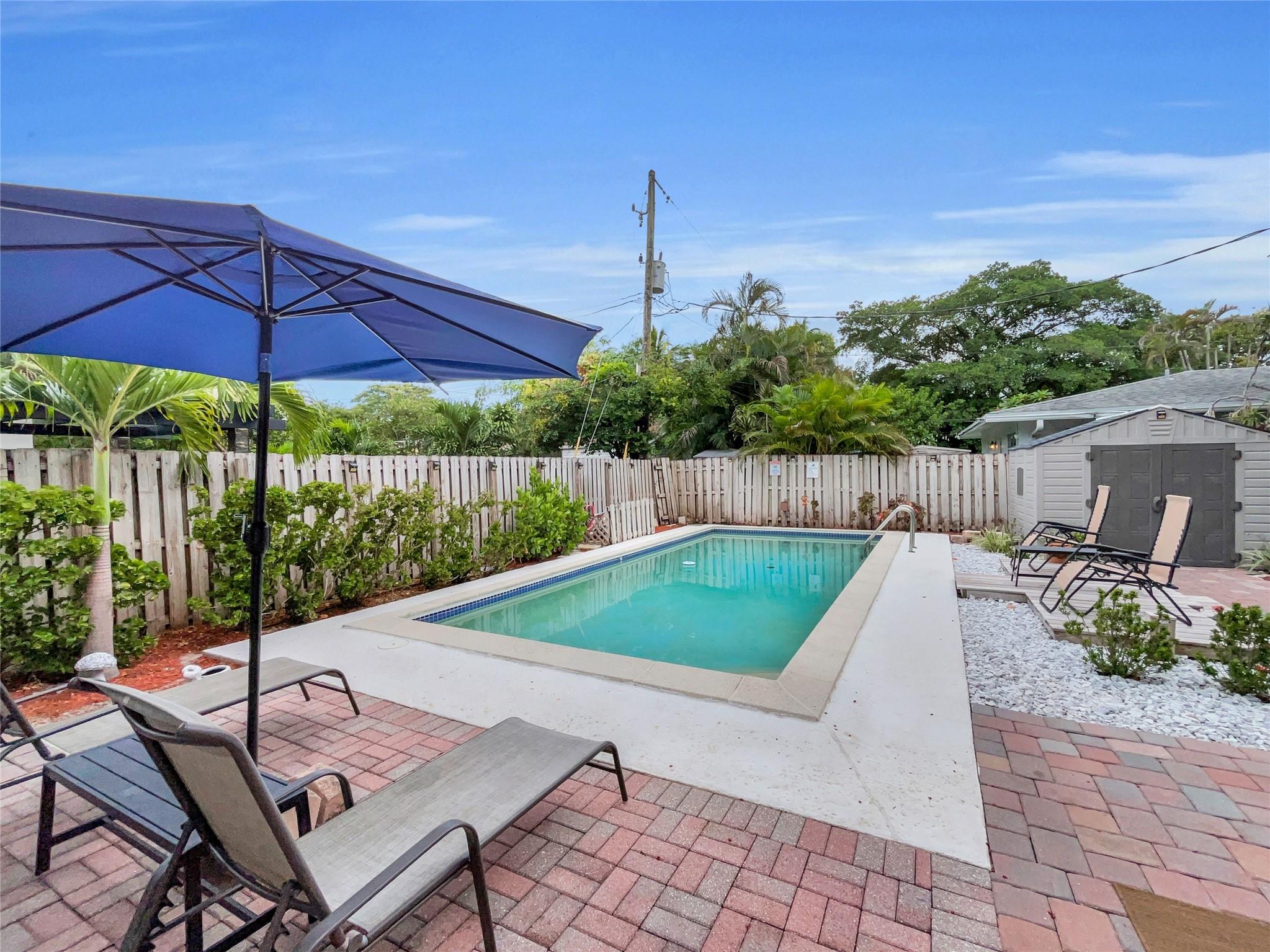 PRICED TO SELL! Move-in ready pool home in Poinsettia Heights! Minutes from the beach, Wilton Dr, Las Olas & more. NO HOA. Bonus room overlooks the PRIVATE POOL, perfect as an office/den or THIRD BEDROOM. Split-floor plan with IMPACT WINDOWS/DOORS, new tankless water heater, newer AC & appliances, updated landscaping, two sheds, tile roof, wood deck & fenced yard with extended paver driveway. Inside: porcelain tile over terrazzo, cedar closets, PLANTATION SHUTTERS/SLIDERS, vaulted ceiling in bedroom, remote fans, crown molding, wood-beam accent, and so much more. Crafted for modern living, merging refined aesthetics with inviting, well-rounded comfort. FURNITURE NEGOTIABLE. Sold as-is. Perfect for homeowners or investors. Amazing value in a prime location!