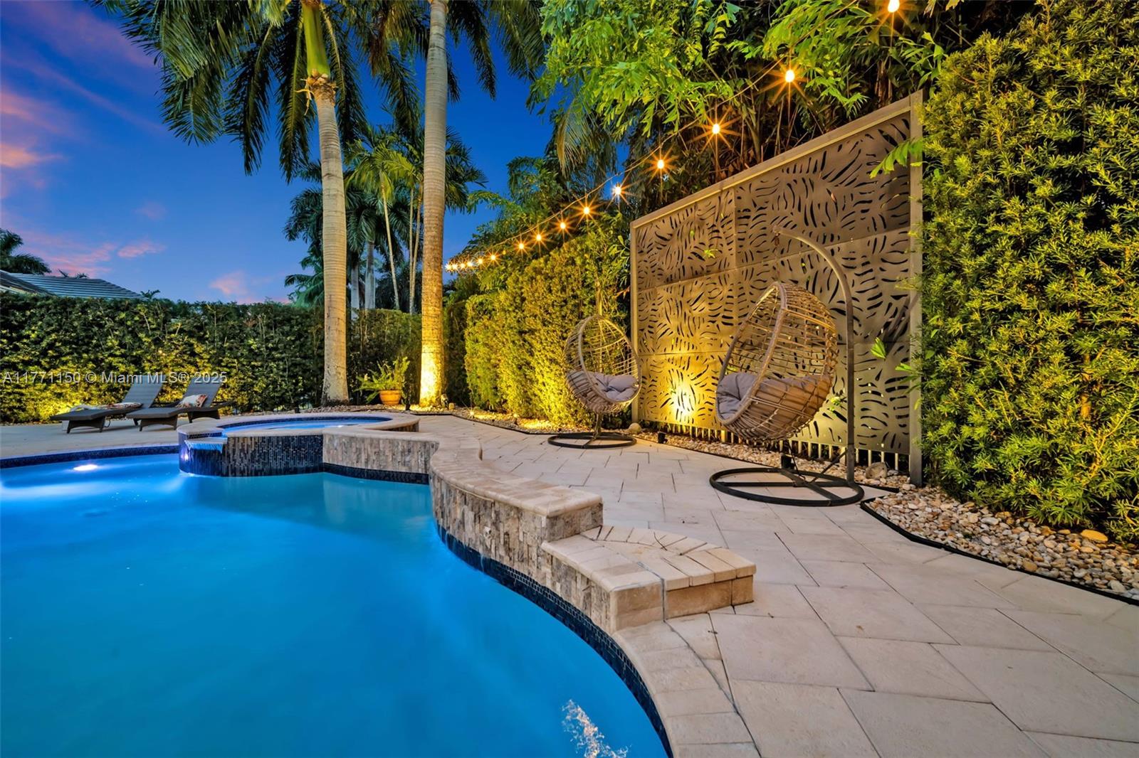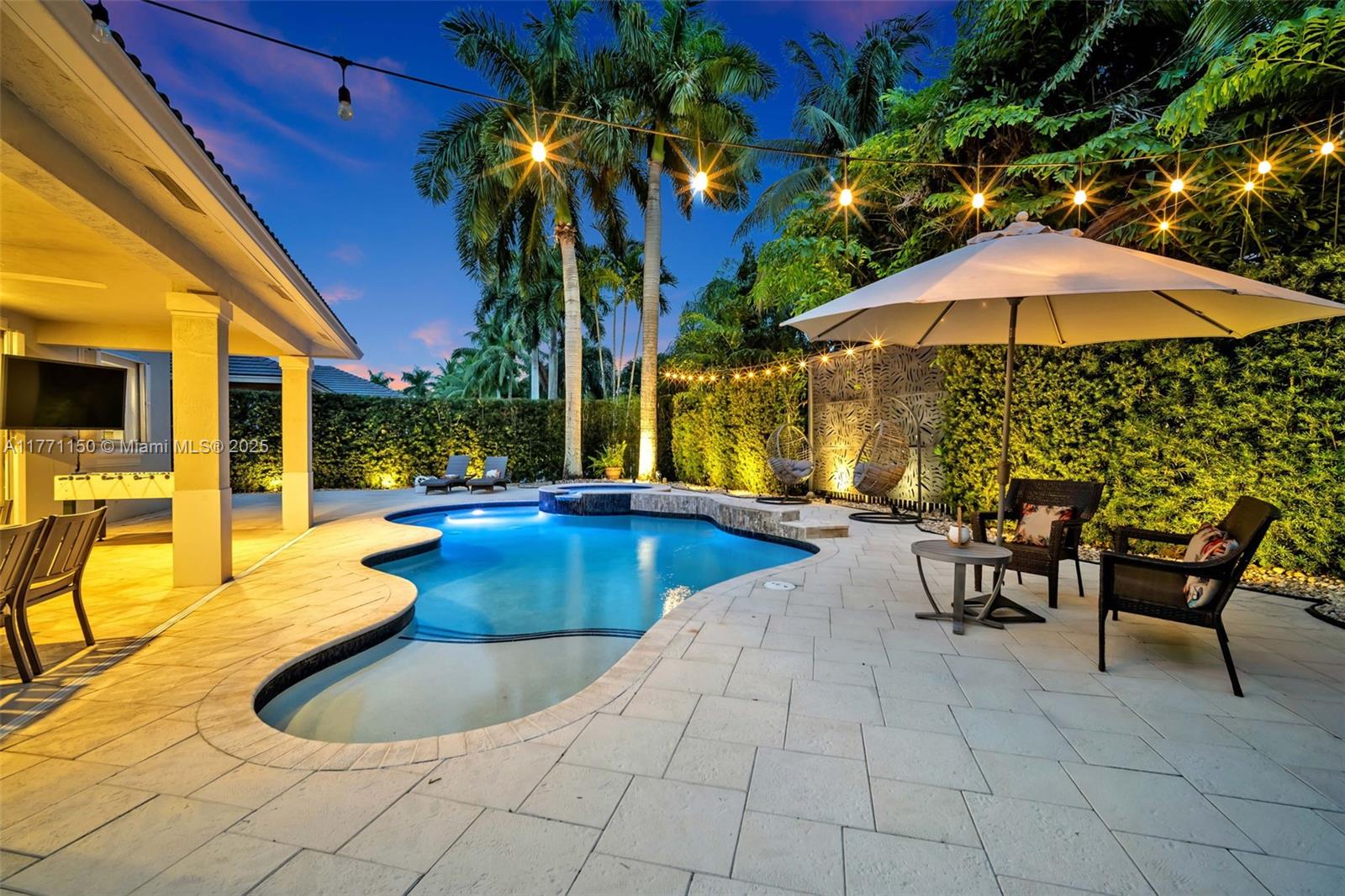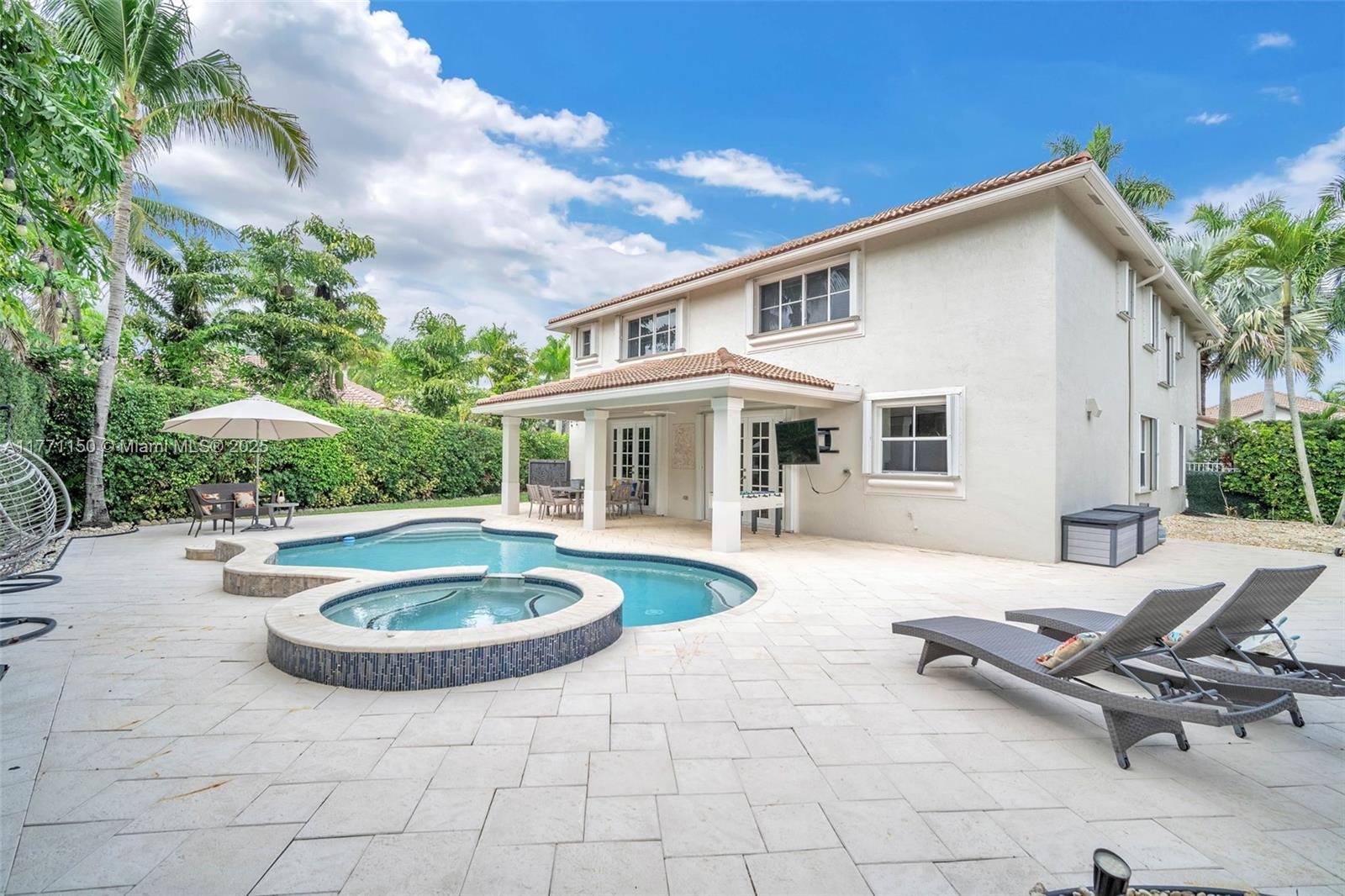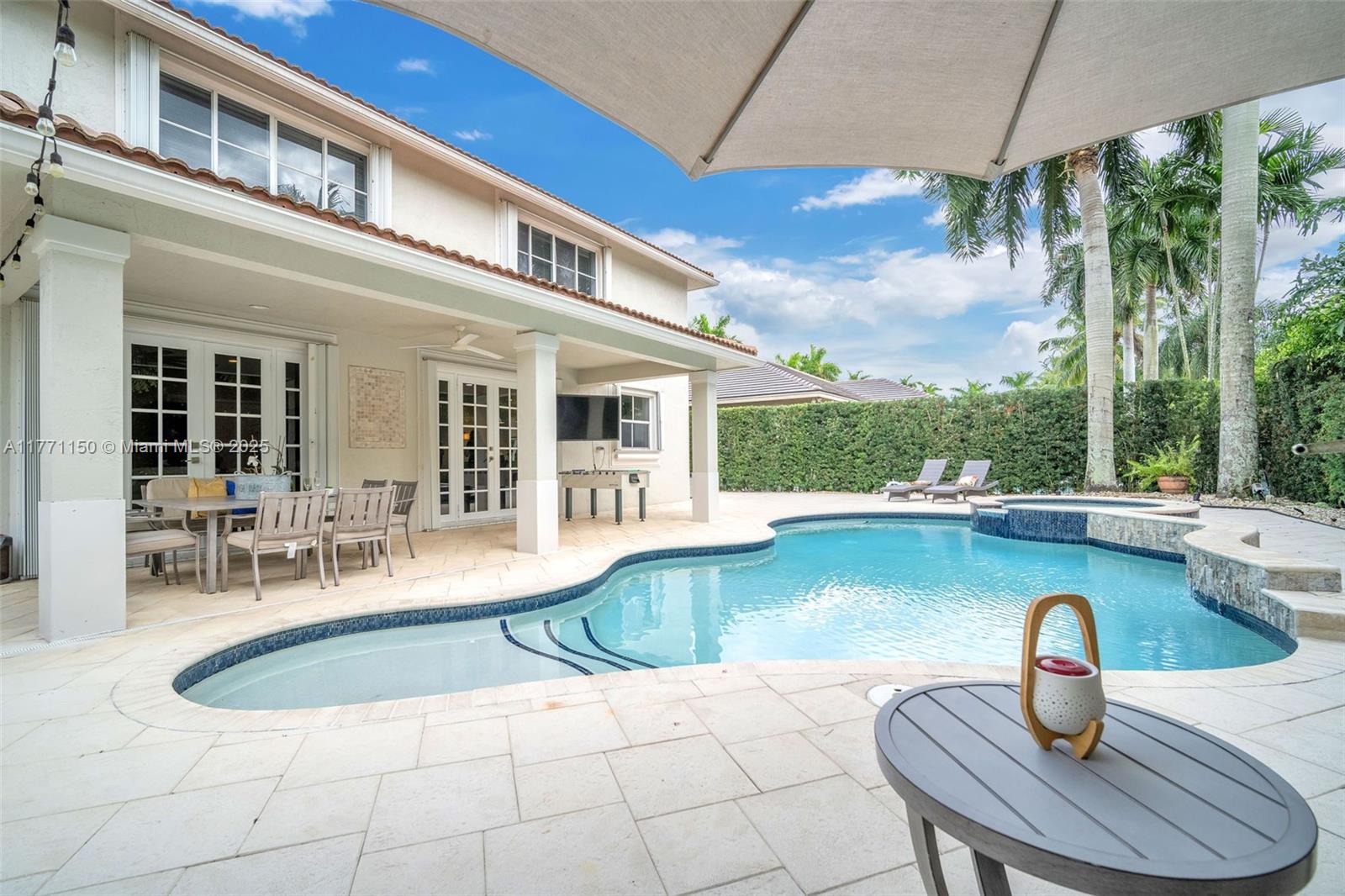 Welcome to this magnificent residence in the prestigious Weston Hills Golf Country Club. This exceptional home sits on a sprawling private lot, offering a perfect blend of luxury and comfort. The standout feature is the oversized backyard, where you'll find a serene private patio that serves as the ideal outdoor living. Enjoy the Modern heated pool and Diamond Brite Jacuzzi, all framed by a picturesque backdrop wall, ensuring privacy and tranquility. This home boasts 6 spacious bedrooms, 5 bathrooms, a private office, offering plenty of space to everyone. The chef-inspired kitchen is a true highlight, with a stunning luxury island and Pompei Quartz countertops, perfect for seamless entertaining. Minutes from Weston town center and top-tier schools, this home is truly a one-of-a-kind gem.