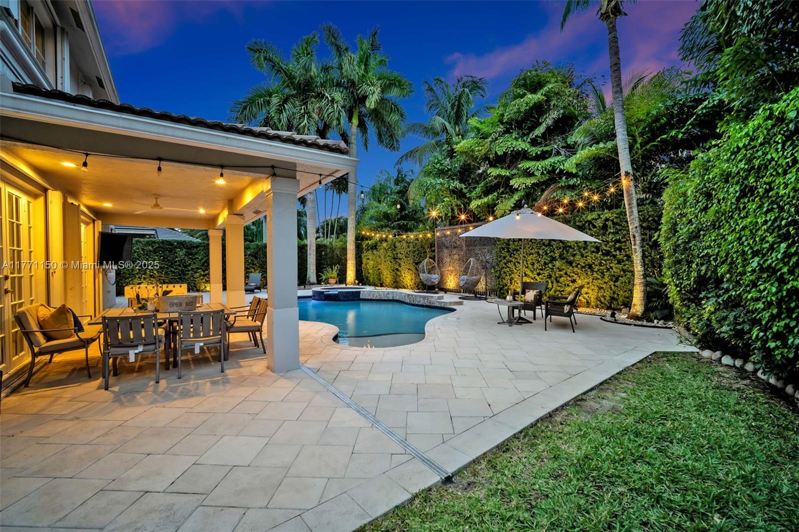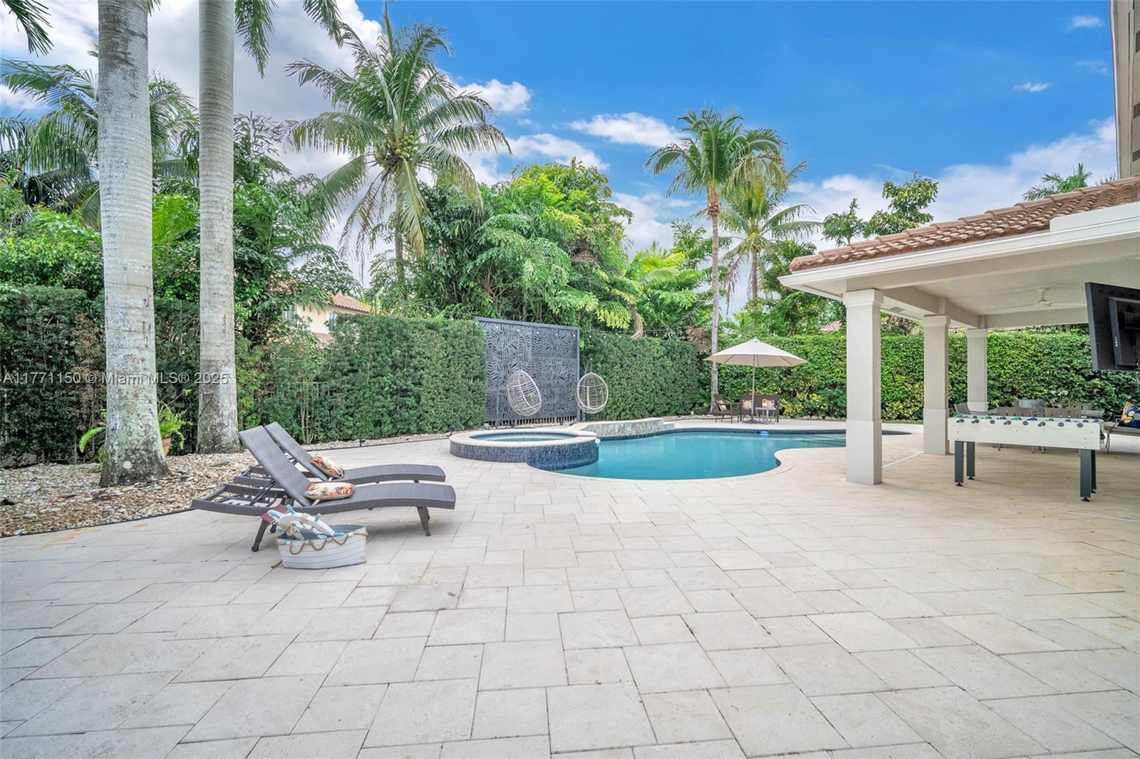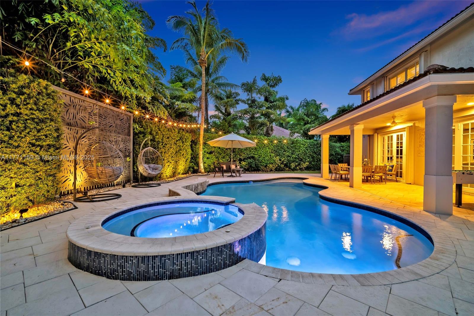Welcome to this magnificent residence in the prestigious Weston Hills Golf Country Club. This exceptional home sits on a sprawling private lot, offering a perfect blend of luxury and comfort. The standout feature is the oversized backyard, where you'll find a serene private patio that serves as the ideal outdoor living. Enjoy the Modern heated pool and Diamond Brite Jacuzzi, all framed by a picturesque backdrop wall, ensuring privacy and tranquility. This home boasts 6 spacious bedrooms, 5 bathrooms, a private office, offering plenty of space to everyone. The chef-inspired kitchen is a true highlight, with a stunning luxury island and Pompei Quartz countertops, perfect for seamless entertaining. Minutes from Weston town center and top-tier schools, this home is truly a one-of-a-kind gem.