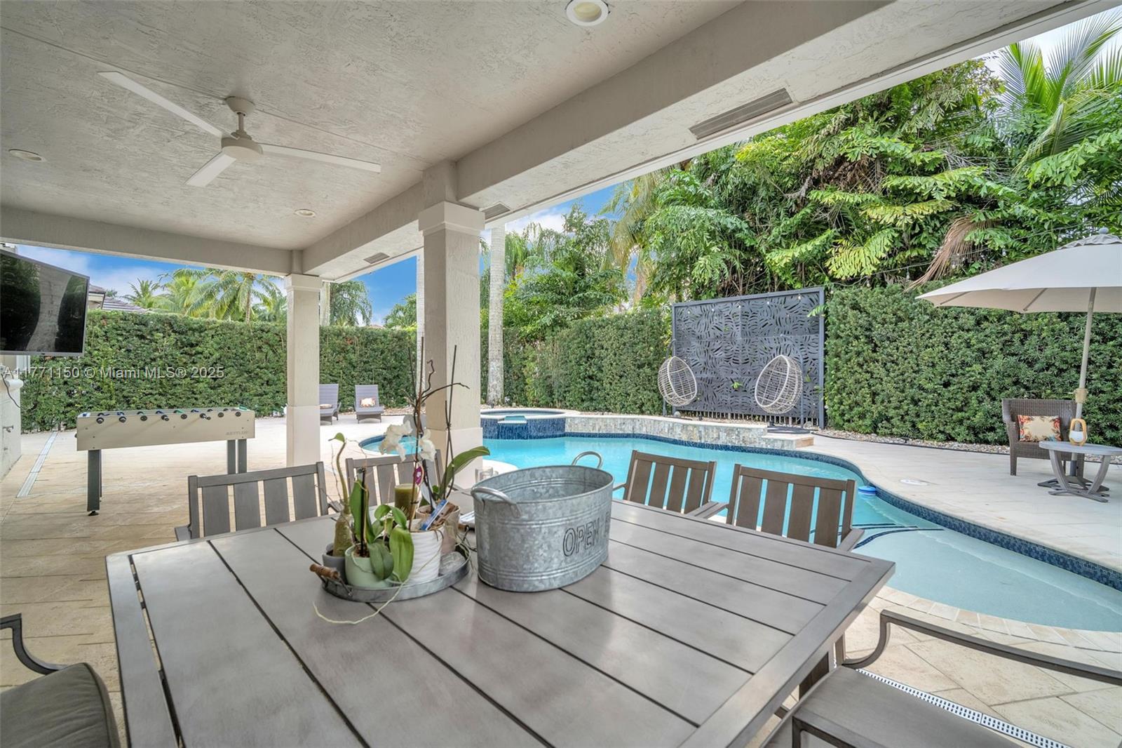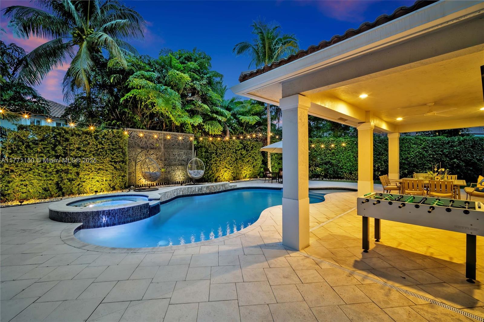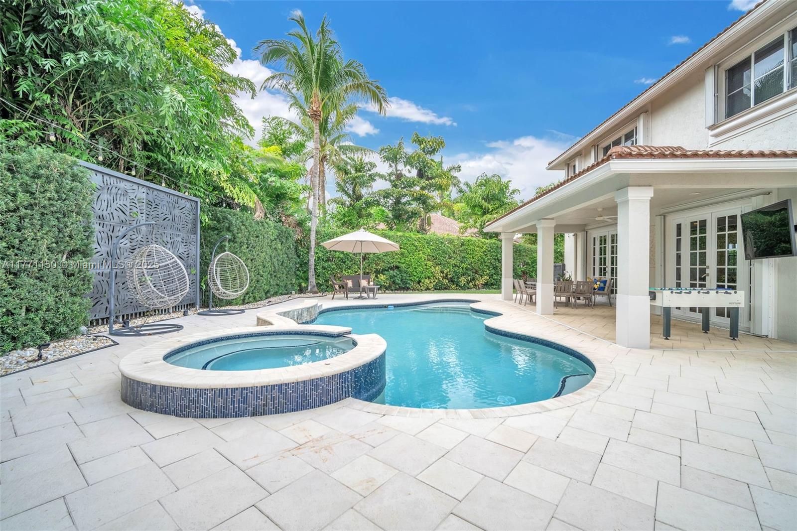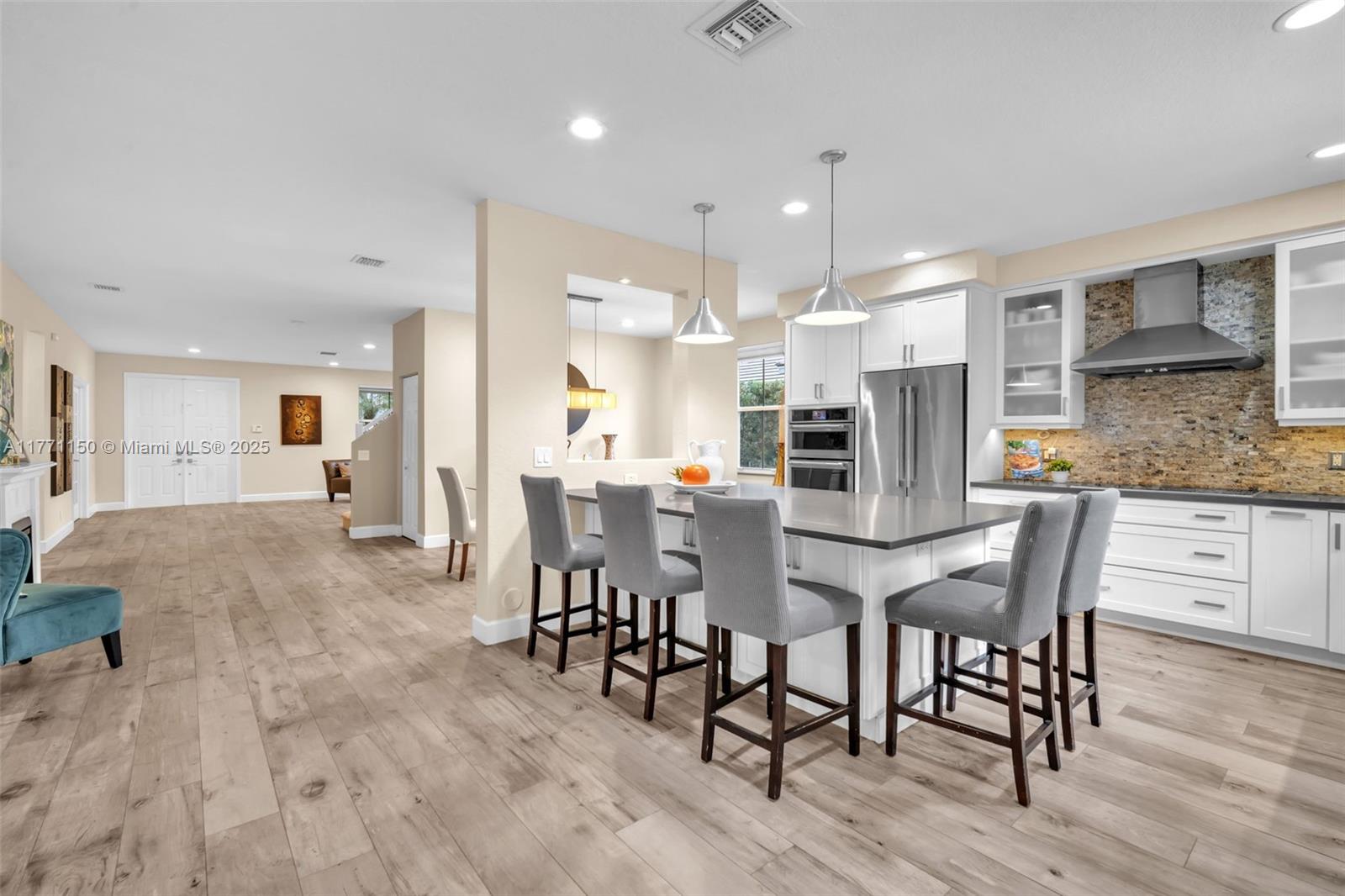 Welcome to this magnificent residence in the prestigious Weston Hills Golf Country Club. This exceptional home sits on a sprawling private lot, offering a perfect blend of luxury and comfort. The standout feature is the oversized backyard, where you'll find a serene private patio that serves as the ideal outdoor living. Enjoy the Modern heated pool and Diamond Brite Jacuzzi, all framed by a picturesque backdrop wall, ensuring privacy and tranquility. This home boasts 6 spacious bedrooms, 5 bathrooms, a private office, offering plenty of space to everyone. The chef-inspired kitchen is a true highlight, with a stunning luxury island and Pompei Quartz countertops, perfect for seamless entertaining. Minutes from Weston town center and top-tier schools, this home is truly a one-of-a-kind gem.