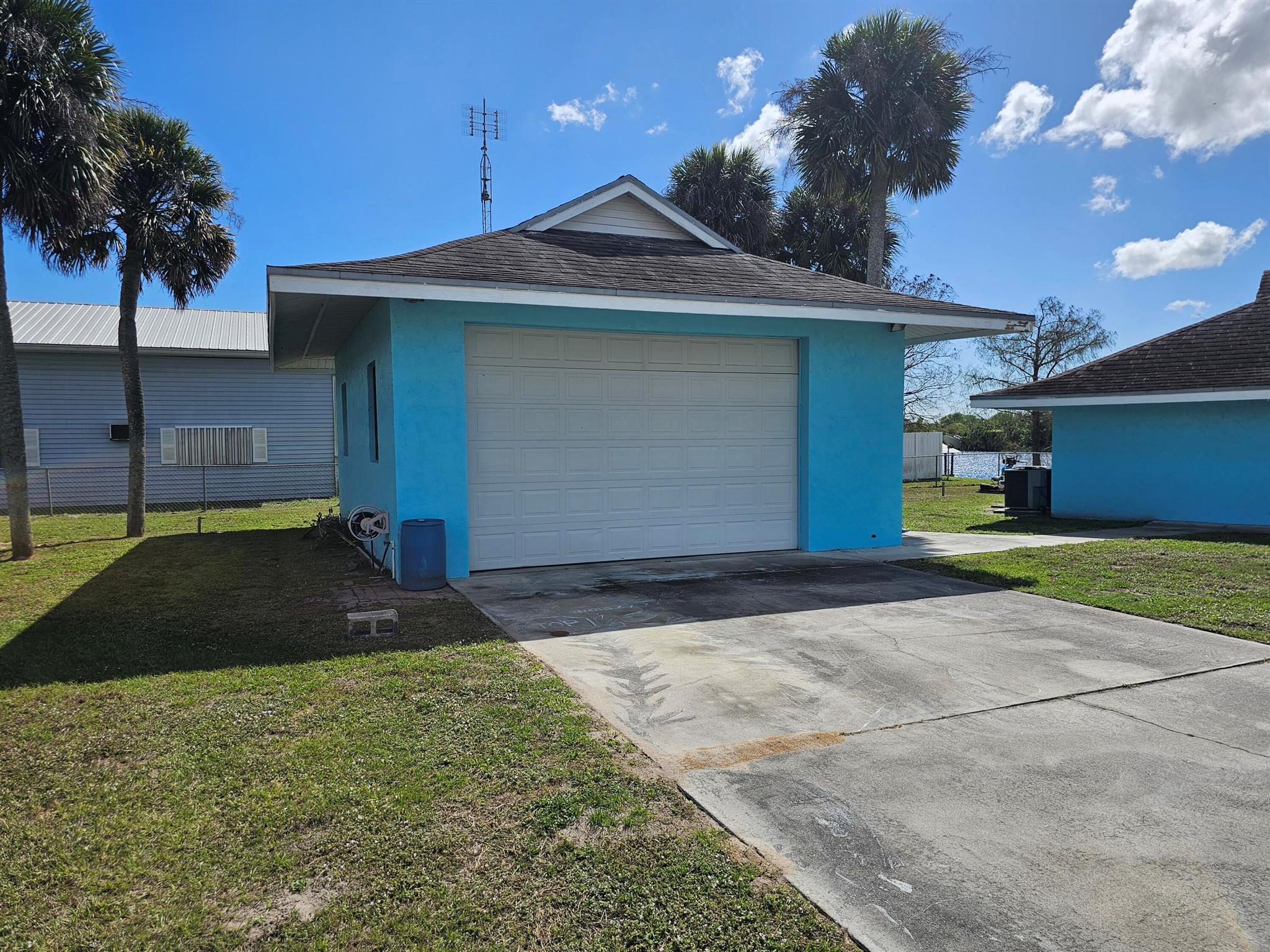 River Oaks! On the wide Kissimmee River.2 bed 2 bath CBS home. 1,620 sq ft under air 2,564 total living area. Boat house w/electric & water, detached 2 car garage, Florida room, Island kitchen & 22KW whole house generator (2024) w 500 gal buried propane tank. New a/c (2024) This unique community offers a well maintained, 4,700' lighted airstrip. HOA $125.00 yr.