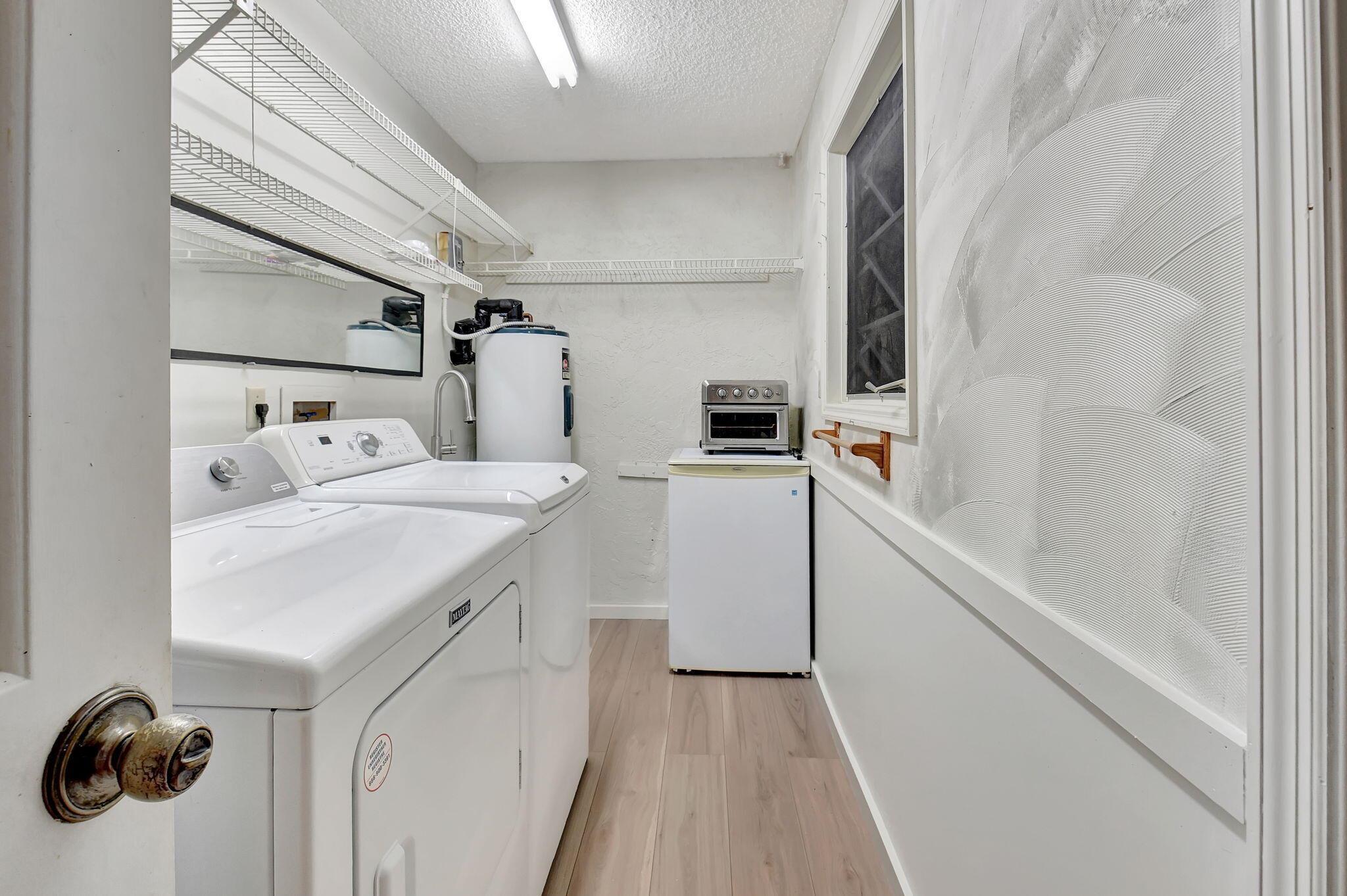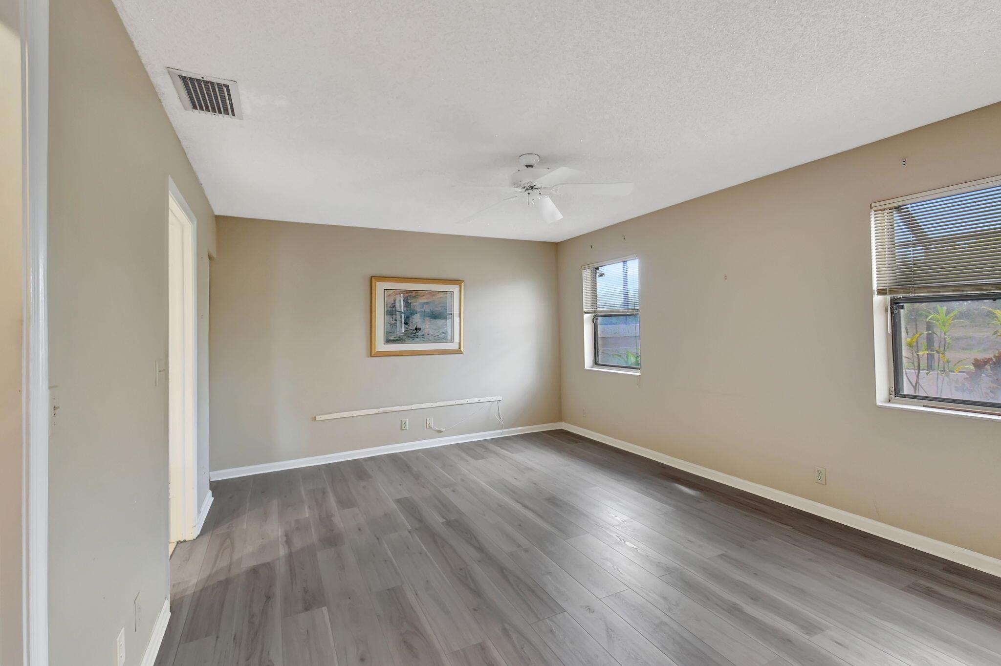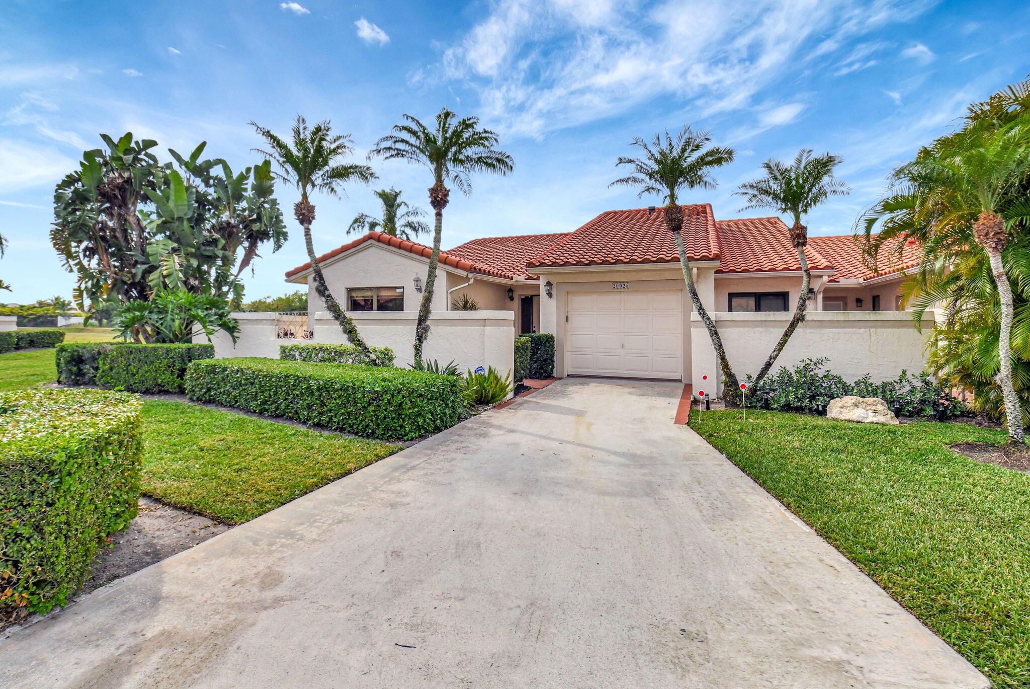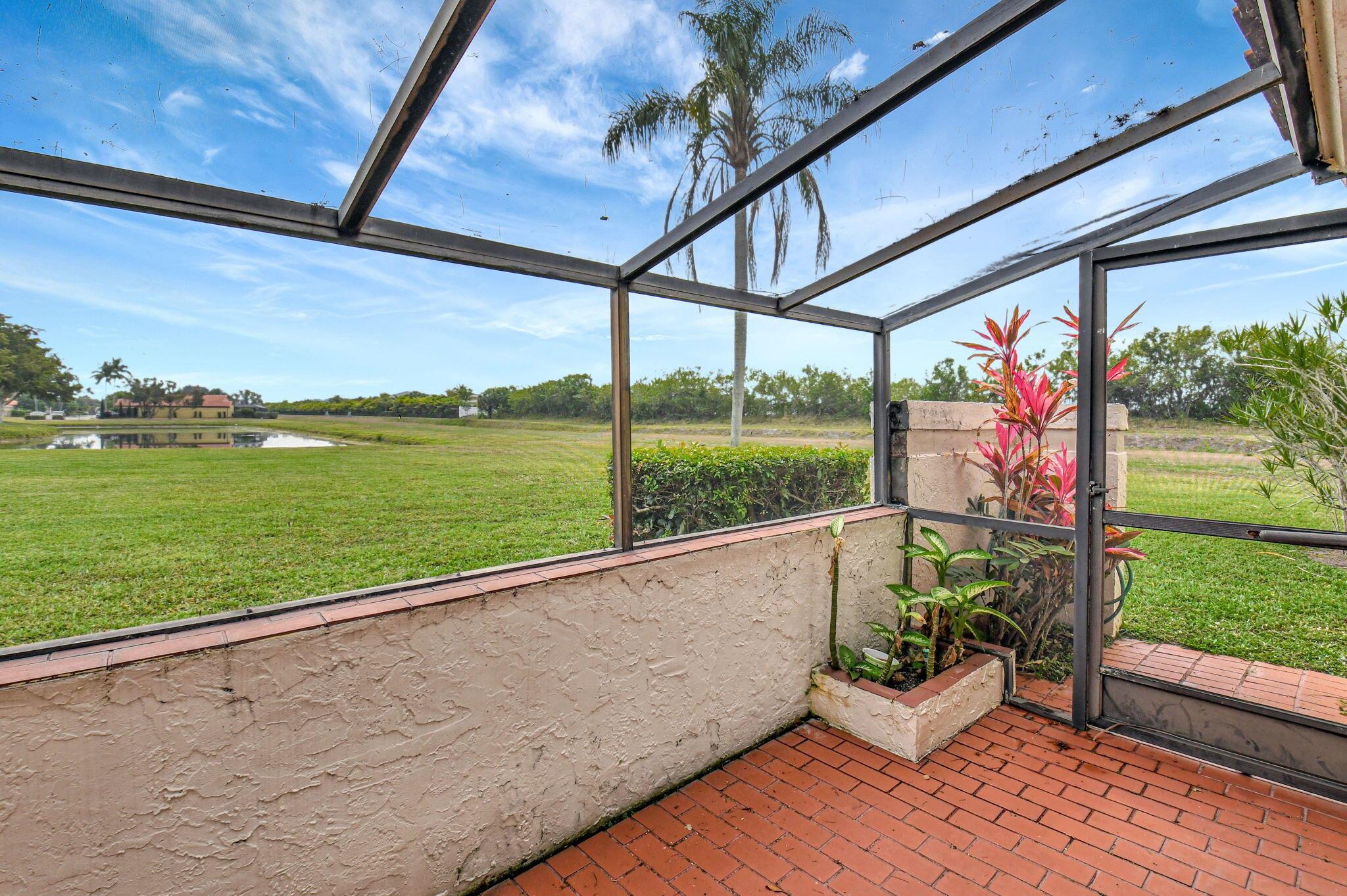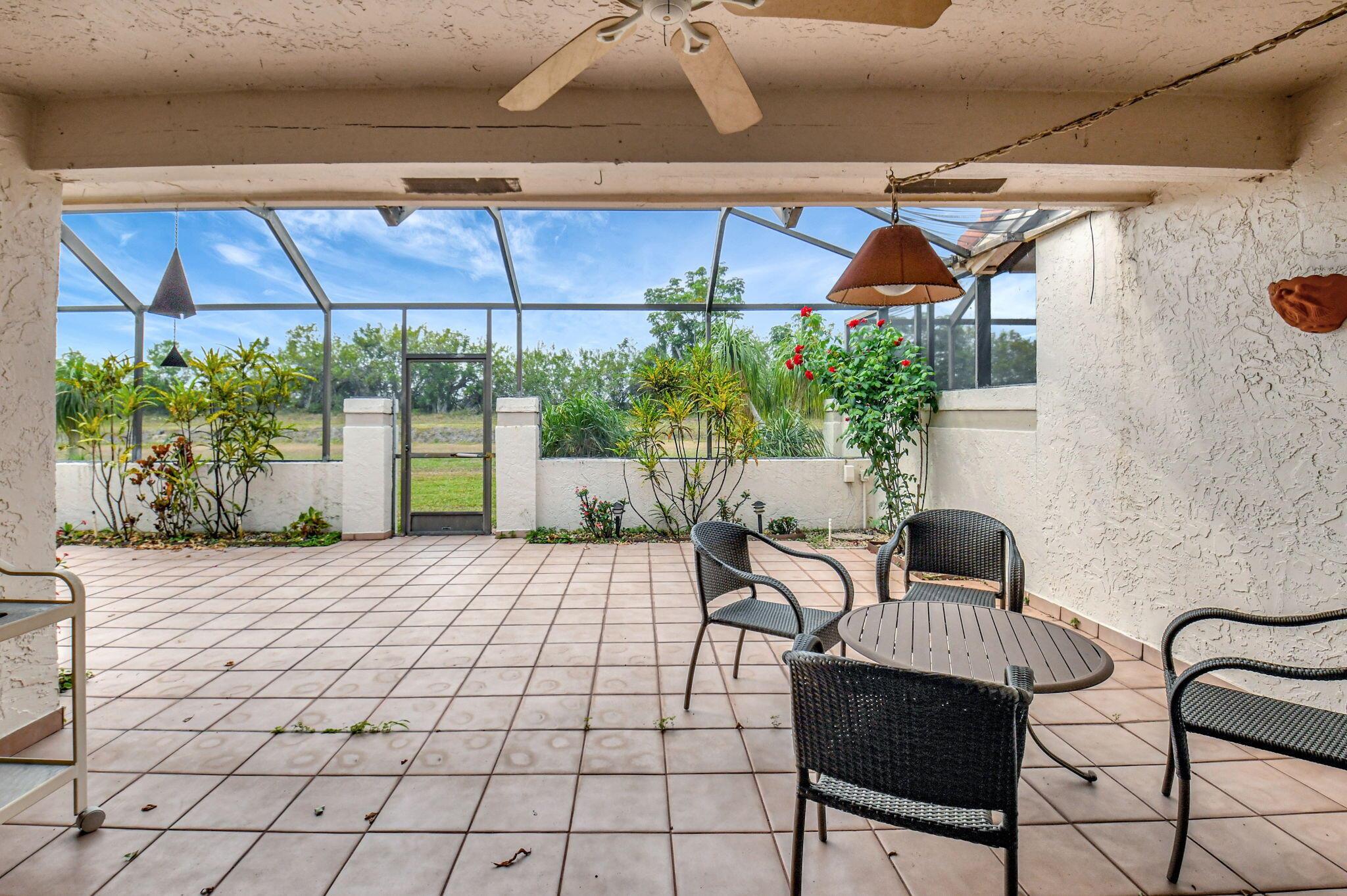Welcome to this sunny, corner villa in the gated '''all ages'' community of Brentwood. Vaulted ceilings and an open flow to a large south facing screened patio with peaceful views. An east facing screened breakfast patio off the kitchen with lake views is a bonus! Second bedroom currently used as a den - can easily be converted. Updated laundry room with newer dryer, new vanity, new floors and fresh paint. Immaculate single garage with room for 2 vehicles in the driveway. Large attic space with drop down ladder for easy access. New waterproof vinyl floors in bedrooms and closets. Newer fridge, new kitchen faucet. A/C installed March 2025, heater 2012. Wonderful family neighborhood with two pools/clubhouse/tennis courts/basketball/biking and jogging paths.